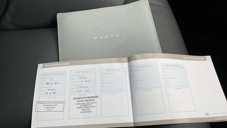 12.3" Progressive Driver Display, 9" centre console touch screen, Adjustable steering wheel force, Apple carplay (wired), Bluetooth handsfree system, Driver alert control with lane keeping aid, Emergency services call system, Front and rear park assist, Google Automotive Services, Intelligent speed assistance, Oncoming Lane Mitigation, PAS, Power tailgate, Service interval indicator, Speed limiter, Speed sensitive steering, Trip computer, Volvo cars services with app, Volvo on call with App, Wireless/Inductive Mobile Phone Charging, 8 speed automatic transmission with start/stop + manual change functions, Dynamic chassis, DAB Digital radio, High performance sound, 2x USB Type C in front and 2x USB Type C in rear, 10 speakers/220W output, Steering wheel remote infotainment controls, Adaptive brake lights with high level LED brake lights, Auto dimming interior + exterior mirrors, Automatic headlight levelling system, Automatic LED Headlights + Active high beam incorporating daytime running lights, Colour co-ordinated door mirrors, Electric adjustable/heated/auto power folding door mirrors, Electric front+rear windows, Front aluminium tread plates, Home safe and approach lighting, Integrated roof rails in black, Piano black front grille with chrome surround, Rain sensor with automatic windscreen wiper activation, Rear side wing doors, Rear wiper, Roof antenna, Roof spoiler, Tinted windscreen, Visible VIN plate, 12V socket in front tunnel console and luggage compartment, 2 zone electronic climate control with Clean zone air quality system and pollen filter, 3 seat bench in 2nd row, 3 Spoke tailored steering wheel with chrome trim, A-pillar parking ticket holder, B Pillar ventilation, Centre console cupholders and storage, Charcoal floor mats, Front and rear courtesy lights, Front cupholder illumination, Front footwell illumination, Front reading lights, Glovebox compartment with illumination, Head restraints for all seats, Heated front seats, Height/reach adjustable steering column, Illuminated luggage compartment, Illuminated vanity mirrors + ticket holder, ISOFIX attachment on outer rear seats, Leather upholstery, Load cover, Load protection net, Power height adjustable drivers seat with lumbar support, Power passenger seat with lumbar support, Rear armrest with cupholder, Rear reading lights, Rear seat concealed storage, Single front passenger seat, Synthetic leather sport gear knob, Underfloor stowage compartment, Versatile split folding rear seat - 60/40, 5 three point seatbelts, City safety with steering support with Pedestrian + cyclist + front collision warning with full auto brake and rear auto brake, Drivers knee airbag, Dual stage driver/passenger airbags, Electronic parking brake with auto hold, First aid kit, Front seats SIPS airbags, Hill descent control - Off-road drive mode, Hill start assist, IC (Inflatable Curtains) - Full Length, Passenger airbag cut-off device, Power child locks on rear doors, Road sign information display, Run off Road Mitigation, Run off Road Protection, Seatbelt reminder and pretensioners, SIPS (Side Impact Protection System), Slippery road and hazard light alert, Stability and Traction Control with Spin control, Engine Drag Control and Corner Traction Control, Tyre pressure monitoring system, Vehicle deceleration control with Anti-lock Brake System, Electronic Brake Distribution and Emergency Brake Assist, Warning triangle, WHIPS whiplash protection system - front, Anti-theft alarm including immobiliser/volume sensor + level sensor, Care key with user defined top speed, Key integrated remote control central locking + fuel flap with deadlocking system and auto open/close power windows, Keyless Start, Locking wheel nuts, Private locking for tailgate,