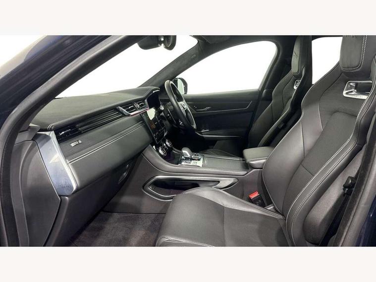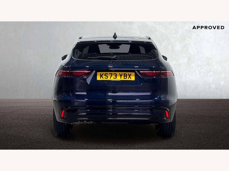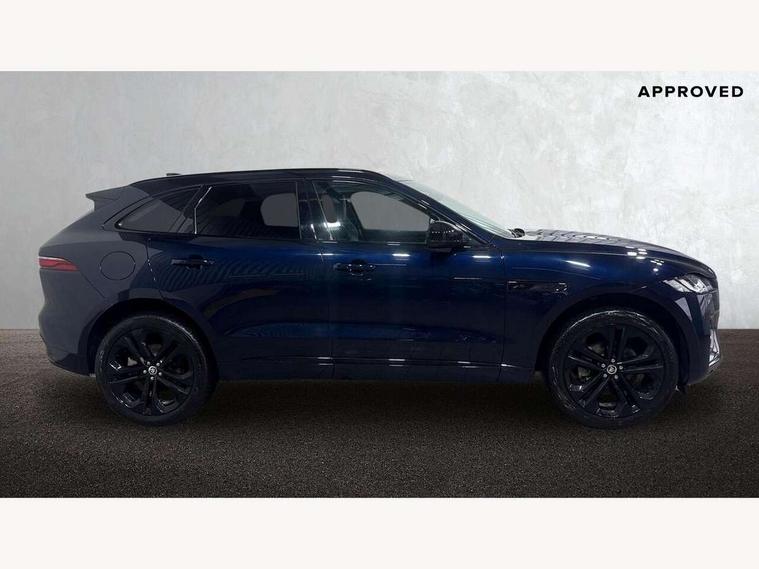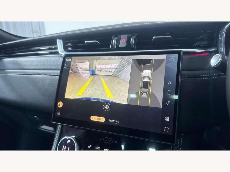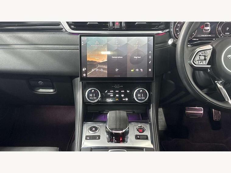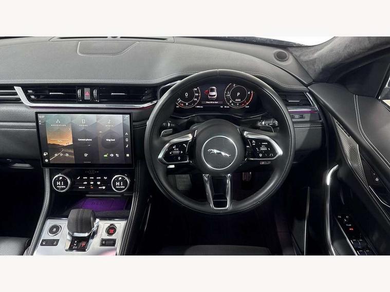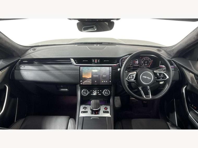 11.4" touchscreen, Adaptive cruise control with steering assist, Android Auto, Apple car play, Blind spot assist, Bluetooth connectivity, Clear exit monitor, Driver alert system, Driver condition monitor, eCall emergency call system, Eco driving style assistant, Electric power assisted steering, InControl remote, Interactive driver display digital with 12" TFT display, Jaguar Toggle shift selector, Lane departure warning system, Lane keep assist, Outside temperature gauge, Personalisation profile management, Pivi pro connected navigation system with app interface and media storage, Pro services and wifi hotspot, Push button starter, Rear collision monitor, Rear traffic monitor, Service interval indicator, Speed proportional steering, Start up sequence with movement in dials and lighting, Traffic sign recognition with adaptive speed limiter, Trip computer, Voice control system, Wireless device charging, 8 speed automatic transmission, Adaptive dynamics, All terrain progress control, All Wheel Drive (AWD), Configurable dynamics, Open differential with torque vectoring by braking, AM/FM radio, Bluetooth streaming, DAB Radio (Digital Audio Broadcasting), Dynamic volume control, InControl apps, InControl protect, iPod integration, 3 flash lane change indicators, Animated directional indicators, Approach Illumination, Auto dimming rear view mirror, Auto high beam assist, Automatic headlights, Electric heated/power fold memory door mirrors with approach lights and auto dimming driver side, Electric windows with one touch open/close and anti trap, F-Pace and R Dynamic badge, Green tinted glass, Heated front windscreen + heated washer jets, Heated rear window with timer, Illuminated metal tread plates with Jaguar script, Jaguar script and leaper, LED High level third brake light, LED tail lights, Metal load space scuff plates, Non acoustic front windscreen, Privacy glass, R Dynamic badge on side door, Rain sensor windscreen wipers, Rear fog lights, Rear metal tread plates, Rear side wing doors, Rear wiper, Trailer stability assist, Variable front intermittent wipers, 12V power point front, 3 rear headrests, 3 seat bench in 2nd row, Additional power sockets - Two additional USB sockets in rear centre console and one 12V socket in trunk, Air distribution speed, Bright metal foot pedals, Centre armrest console, Centre console with side storage, Configurable cabin lighting, Deletion loadspace storage rails, Door sill tread plates, Ebony suede cloth headlining, Electrically adjustable steering column, Fold flat front seats, Front centre armrest with storage compartment, Front door storage space, Glovebox finisher with jaguar script, Heated steering wheel, Hooks in loadspace, Illuminated glovebox, Interior front door handles with separate locking switches, ISOFIX on outer rear seats, Jaguar sense, Leather steering wheel, Luggage tie downs in loadspace, Mist sensing, Multifunction steering wheel, Overhead lighting console, Overhead stowage for sunglasses, Passive front head restraints, Premium carpet mats, Rear air vents, Rear armrest with twin cupholders, Rear centre headrest, Rear door storage space, Reversible boot floor, Satin chrome gearshift paddles, Shopping bag hook, Single front passenger seat, Sunvisors with illuminated vanity mirrors, Twin front cupholders with cover, Online Pack with data plan - F-Pace, 355mm front brakes and 325mm rear brakes, 3x3 point rear seatbelts, ABS, All surface progress control (ASPC), Brake pad warning light, DSC - Dynamic Stability Control, Electric parking brake (EPB), Emergency brake assist, Front airbags with passenger seat occupant detector, Front and rear seatbelt reminder, Front side airbags, Full length side window curtain airbag, Hill launch assist, Power operated child locks, Traction control, Tyre pressure monitoring system, Immobiliser, Keyless entry, Keyless start, Locking wheel nuts, Perimeter alarm, Remote central locking, Valet mode,