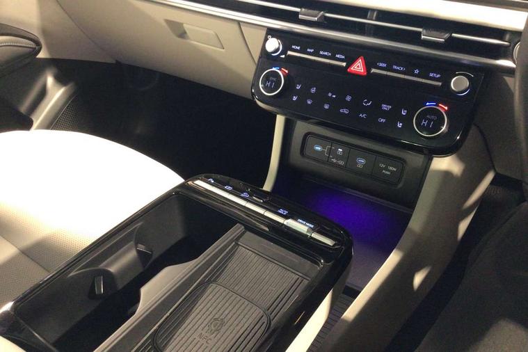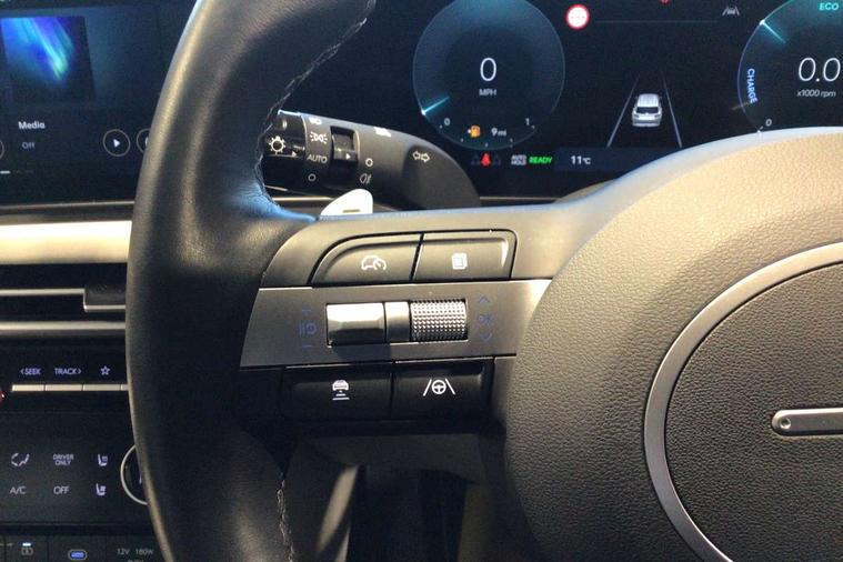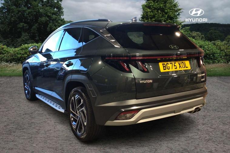 12.3" LCD display with driver's supervision instrument cluster, 12.3" widescreen navigation with bluelink and mapcare, Blind spot view monitor, Bluetooth system, Cruise control - smart adaptive speed control with stop and go function, Digital clock, Drive mode selector, Driver attention warning, E-call, Emergency stop signalling system, Forward Collision Avoidance Assist (FCA) - Car, Pedestrian and Cycle, Forward Collision Avoidance Assist Junction Turning (FCAJX), Front and rear parking sensors, Front, rear and side parking distance warning, Highway Driving Assist (HDA), Hyundai road side assistance, Intelligent speed limit assist, Lane follow assist, Lane keep assist, Over the air updates(OTA), Parking collision avoidance assist (PCA), PAS, Rear camera and guidance parking system, Rev counter, Smart power tailgate, Surround view monitor, Tailgate open warning light, Trip computer, Trip odometer, Voice recognition, Water temperature gauge, Windscreen washer fluid sensor and warning indicator, Wireless Apple CarPlay/Android Auto, Wireless phone charging pad, 2 front and 2 rear USB-C ports, DAB Digital radio, Krell premium audio system with 8 speakers and subwoofer, Steering wheel mounted audio/phone controls, Adjustable intermittent front windscreen wipers with aero wiper blade, Auto dimming rear view mirror, Automatic defog system, Automatic headlights with dusk sensor, Automatic windscreen wipers with rain sensor, Black wheel arches, Body colour bumpers, Body colour door mirrors with integrated indicators, Body colour exterior door handles, Electric tilt/slide panoramic sunroof, Electrically adjustable, heated and power folding door mirrors, Follow me home headlights, Front and rear electric windows with anti-trap mechanism and one touch control, Front fog lights, LED 3rd brake light, LED daytime running lights, LED rear lights, Matrix LED headlights, Positioning Lights - LED, Privacy glass - Rear windows and tailgate, Rear side wing doors, Rear wash/wipe with intermittent wipe setting, Roof rails, Tinted glass with windscreen shade band, Trailer stability assist, 12V power outlets in front console and luggage compartment, 3 seat bench in 2nd row, 40/20/40 split folding rear seat, 64 colours interior ambient lighting, Adjustable head restraints (Up and down), Cupholders in rear armrest, Door courtesy lights, Driver and passenger sunvisors with illuminated LED vanity mirrors, Driver's seat electric adjustments, Driver's seat memory, Front and rear door pockets, Front armrest with storage box, Front centre console and door bottle holders, Front passenger's seat electric adjustments, Heated front seats, Heated rear seats, Heated steering wheel, Height/reach adjustable steering column, Illuminated/air conditioned glove compartment, ISOFIX child seat anchorage points attached on outer rear seats, Leather upholstery, Leather wrapped steering wheel and gear knob, Luggage compartment lighting, Luggage cover, Luggage hooks, Luggage net, Map and reading lights, Rear seat remote folding function, Rear side window sunblind, Reclining rear seats, Retractable load cover, Single front passenger seat, Sunglasses holder, Three zone climate control, Touch sensitive climate controls with temperature dials, TUCSON branded metal door scuff plate, Underfloor boot compartment, Ventilated front seats, Trailer wiring package - Tucson, 3x3 point rear seatbelts, Active bonnet, Airbag - Front, front side, curtain and centre front airbags, Anti-lock brake system (ABS), Brake assist function, Childproof rear door locks, Curtain airbag roll over sensor, Downhill brake control, Electric parking brake, Electronic stability control, Front and rear seatbelt reminder, Front passenger airbag deactivation switch, Front seatbelt pretensioners, Hill start assist control (HAC), Multi-Collision braking, Outer rear seatbelt height adjustment, Seatbelt height adjustment for front seats, Traction control, Tyre pressure monitoring system with individual tyre pressure display - TPMS, Vehicle stability management, Deadlocks, Immobiliser, Locking wheel nuts, Remote control central locking, Smart key with keyless entry and engine start/stop button, Speed sensitive auto door locking, Thatcham category 1 alarm, 19" Alloy wheels, Tyre repair kit,