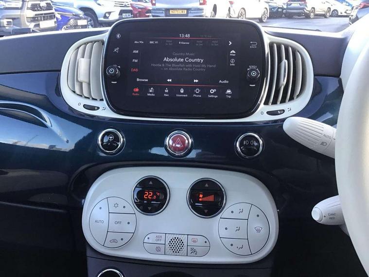 7" HD Touchscreen Radio with 3D Navigation, Bluetooth, USB, and DAB, 7" TFT instrument cluster, Apple car play/Android Auto, Cruise control, E-call, External temperature gauge, Power assist steering, Rear parking sensor, Speed limiter, Stop/start system, Trip computer, 4 speakers, Rear speakers, 3rd brake light, Auto headlights, Body colour bumpers, Body colour electric adjustable heated door mirrors, Chrome plated exterior door handles, Dolcevita badge on fender, Dusk and rain sensors, Electric front windows, Fixed glass sunroof with sunblind, Front fog lights, Halogen headlamps, Heat insulated glass, Heated rear windows with wash wipe, LED daytime running lights, Rear side wing doors, Rear wiper, 1 passenger grab handle, 2 seat bench in second row, 50/50 split folding rear seats with height adjustable rear headrests, Auto climate control, Auxilliary 12V power socket, Chrome kit, Front headrests, Height adjustable drivers seat, Height adjustable steering wheel, Isofix child seat preparation, Single front passenger seat, Techno leather steering wheel with audio controls, 7 airbags - Driver, passenger, side, window and drivers knee airbags, ABS/EBD, ESC + ASR/MSR + HBA + Hill holder, Manual passenger airbag deactivation function, Traction control, Tyre pressure monitoring system, Automatic door locking, Immobiliser, Locking fuel filler cap, Remote central locking, 16" alloy wheels,