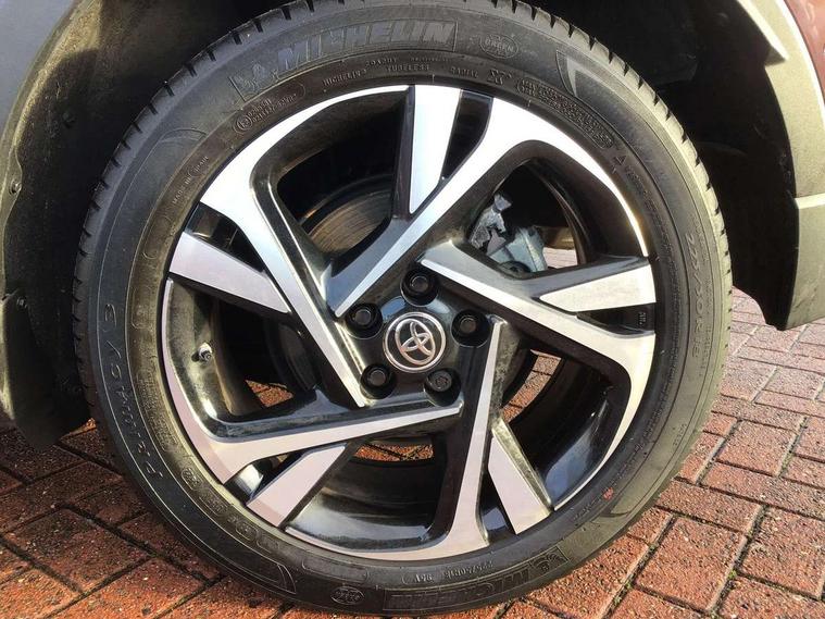 4.2" coloured TFT screen for multi-information display, Adaptive cruise control, Blind spot monitoring with rear cross traffic alert, Bluetooth connectivity, E-call, Electric power steering, Front parking sensors with ICS and auto braking, Hybrid system indicator, Lane departure alert with steering control, Lane trace assist, Push button tailgate release, Rear parking sensors with ICS, Remote boot door release in cabin, Remote boot door release in key, Reversing camera, Road sign assist - RSA, Simple Intelligent parking assist, Smart entry and push button start, Smart voice assist, Touch 2 Go navigation system, Trip computer, Voice recognition, Wireless smartphone integration, Vehicle Stability Control (VSC), 6 speakers, AM/FM radio, DAB Radio (Digital Audio Broadcasting), Toyota touch 2 multimedia system with 8" display, USB connector, Wi-fi connectivity, Anti-jam protection on power windows, Auto dimming rear view mirror, Auto high beam, Auto up and down function on all power windows, Automatic headlights, Automatic headlights cut-off, Automatically retractable door mirrors, Black and body coloured rear bumper, Black lower front grille, Black upper front grille, Body colour door handles, Body colour door mirrors, Body colour front spoiler lip, Body coloured front bumper, Boot door release with push button, Electric heated door mirrors, Follow me home headlights, Front and rear power windows, Front fog lights, Headlight cut off reminder, Honeycomb lower front grille, LED daytime running lights, LED High mounted stop light, LED rear brake lights, LED rear combination lights, Manual headlight levelling, Noise reduction layer on front windows and windscreen, Power adjustable door mirrors, Privacy glass, Rain sensor, Rear side wing doors, Rear spoiler, Rear tailgate, Rear window defogger, Rear window wiper, Reflective LED headlights, Shark fin antenna, UV-filter on driver and passenger windows, UV-filter on rear windows, 12v power outlet - front, 3 rear headrests, 3 seat bench in 2nd row, 3 spoke leather steering wheel, 60/40 split folding rear seat, Adjustable rear headrests, Adjustable speed limiter switch on steering wheel, Assist grips front and centre pillar, Audio and telephone switches on steering wheel, Black front door assist grips, Blue ambient lighting on front cup holders, Blue ambient lighting on front doors, Boot light, Chrome interior door handles, Cloth upholstery, Driver and front passenger personal light, Driver and front passenger Whiplash Injury Lessening seats, Driver and passenger seatback pockets, Dual zone automatic air conditioning, Floor mats, Front cupholders, Front head restraints, Front sports seats, Glovebox with internal light, Hard tonneau cover, Heated driver and front passenger seats, Hooks for luggage holding net, Humidifying Nanoe air purifier, Illuminated entry system, Isofix attachments on outer rear seats, Leather gearshift, Light on driver sun visor, Light on passenger sun visor, Manual telescopic steering wheel, Manual tilt steering wheel, Manually height adjustable driver seat, Manually height adjustable front passenger seat, Manually reclining driver seat, Manually reclining front passenger seat, Manually sliding driver seat, Manually sliding front passenger seat, Microphone on front personal light, Mirror on driver sun visor, Mirror on passenger sun visor, Multimedia switches on steering wheel, Pollen filter, Power adjustable lumbar support on driver seat, Shopping bag hooks, Single front passenger seat, Slow opening on lower glovebox, Voice recognition switch on steering wheel, 16 Disk front wheel brake, 3x3 point rear seatbelts, ABS+EBD+Brake assist, Electronic parking brake, Front and rear seatbelt reminder, Front passenger airbag on/off switch, Hill start assist control (HAC), Pre collision system with pedestrian detection, Pre-tensioners and force limiters, Rear door child safety locks, SRS Airbags - Driver + Front passenger, front side, front and rear curtain and driver's knee airbags, Toyota safety sense, Tyre pressure monitoring system, Tyre pressure warning system, Acoustic vehicle alert system (AVAS), Glass-breaking alarm sensors, Immobiliser, Intrusion alarm, Intrusion sensor, Motion sensor alarm, Power door locks, Power passenger window lock, Remote central locking, Black lower dashboard, Black upper dashboard, Gunmetal deco line on upper dashboard, Piano black console, Tyre repair kit,