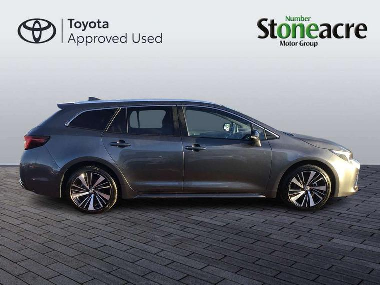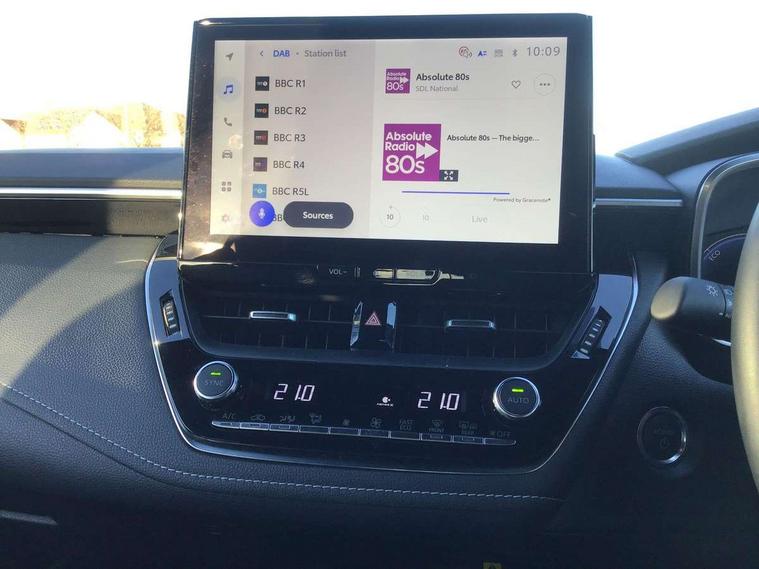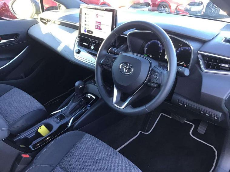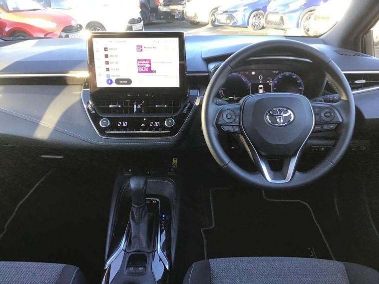 10.5" Multimedia display screen, 12.3" multi information screen, Adjustable speed limiter, Bluetooth telephone connectivity, Colour multi information display with 3D, Connected car functionality upgrade, tracker, remote status and e-care, Drive mode select (Eco, Normal), E-call, Electrically assisted power steering, EV drive indicator, Front and rear parking sensors, Full Digital 12.3" TFT Digital Combimeter, Gear position indicator with meter, Hybrid system indicator, Intelligent parking assist, Key reminder warning, Lane Departure Alert (LDA) switch on steering wheel, Lane departure alert - LDA, Memory on adjustable speed limiter, MyT connected services, Proactive driving assist (PDA), Reversing camera, Smart entry and push button start, Smartphone integration with Apple CarPlay and wired android auto, Speedometer, Toyota remote services, Toyota smart connect multimedia system, Toyota smart connect navigation, Wireless charger, Catalytic converter, Double wishbone rear suspension, Electric accelerator pedal, Front and rear stabilizers, Front differential 2.834, Gasoline particulate filter, MacPherson front suspension, Vehicle Stability Control (VSC), 6 speakers, DAB Digital radio, Smart voice assist/ Voice recognition, USB connector, 20% privacy rear side and quarter glass, A - Pillar garnish, Adaptive automatic high beam system (AHS), Aluminium roof rails, Anti-jam protection on power windows, Auto dimming rear view mirror, Auto headlights, Auto up and down function on all power windows, Automatic folding mirrors, B - Pillar in Black, Black door moulding, Black metallic meshed front grille, Black side air vents, Black toyota logo in front, Body colour rear roof spoiler, Body coloured door mirrors, Body coloured front spoiler, Body coloured outside door handles, Body coloured rear bumpers, Electrochromatic mirror, Ethanol washer fluid, Follow me home headlights, Front and rear fender high liner, Front bumper, Fuel caution label, Gloss black diffuser, Gloss black upper front grille, Height memory opening on power tailgate, LED daytime running lights, LED dual beam projector headlights, LED front fog lights, LED High mounted stop light, LED rear combi lights with LED lightguide, Light remind warning with auto cut off, Lower back and back door plated garnish, Manual headlight levelling system, New grille pattern, Noise reduction layer on front windows, Noise reduction layer on windscreen, Paint protective wrap guard, Power adjustable heated door mirrors, Power front windows, Power rear windows, Power tailgate with kick sensor, Rain sensing wipers, Rear bumper decoration with chrome plated inserts, Rear privacy windows, Rear side wing doors, Rear under guard with chrome ornament, Rear window defogger, Rear window wiper, Remote tailgate release on key, Reverse tilting door mirrors, RHD aimed headlight levelling system, Satin chrome insert on front door assist grips, Satin chrome inserts on rear passenger air vents, Satin chrome surround on lower front grille, Shark fin antenna, Single exhaust tailpipe, Tailgate release with push button, Tailgate remote release in cabin, Time adjustment on intermittent wiper, Turning signal integrated indicators in door mirrors, Unique lower skirt, UV-filter on driver and passenger windows, 12v power outlet - front, 12v power outlet - luggage side, 2 Shopping bag hooks in luggage compartment, 3 rear height adjustable headrests, 3 seat bench in 2nd row, 3 spoke steering wheel with satin insert, 4 tie down hooks in luggage compartment, 60/40 split folding rear seat, Adaptive cruise control (ACC) switch on steering wheel, Adjustable speed limiter switch on steering wheel, Aluminium door scuff plates with corolla batch, Audio, multi-info and telephone switches on steering wheel, Automatic light control system, Black armrest on centre console box, Black out with door sash and wheel house, Boot underfloor storage, Center console cover, Clean air filter, Driver and front passenger personal light, Driver and passenger sun visor with mirror and light, Dual level deckboard, Dual mike in roof, Dual sided boot floor, Dual zone automatic air conditioning with ECO mode switch, Electric lumbar support for passenger, Fabric upholstery, Forward tilting 2nd row seats, Front and rear bottle holders, Front and rear door pockets, Front console box with stitching, Front floor mats, Front head restraints, Front overhead assist grips, Front passenger seat, Front sliding synthetic leather armrest, Gear knob, Gloss black gear shift console, Heated front seats, Illuminated entry system in room lamp, ISOFIX child restraint system, Leather gear shift with satin chrome on gear shift console, LED boot light, Manual height adjustable for driver and front passenger seat, Manual tilt and telescopic steering wheel, Manually sliding driver seat, Manually sliding front passenger seat, Matt black front door assist grip, Nanoe-X air purifier, Passenger seat back pocket, Pollen filter, Power adjustable lumbar support on driver seat, Power window switches with satin chrome inserts, PVC door armrest, Rear air vents, Rear armrest with 2 cupholders, Rear fabric floor mats, Rear overhead assist grips, Rear passenger coat hooks (2), Rear passenger personal lights, Refrigerant correspondent hf01234f, Regulation compliancy wvta label +, Remote air conditioning, Remote controlled Toyota easy flat system, Retractable tonneau cover with luggage partition net, Satin chrome inserts on centre air vents, Satin chrome inside door handles, Satin chrome surround on heater control panel, Satin chrome surround on multimedia, Satin chrome surround on speedometer, Side storage in boot, Slow opening glovebox with lights, Soft touch front and rear door trim, USB charger front, Voice recognition switch on steering wheel, Whiplash Injury Lessening (WIL) feature (active headrest) for seats, White ambient lighting on open tray and front cup holder, Toyota safety sense 3 pack - Corolla, 15" Front brakes, 3x3 point rear seatbe