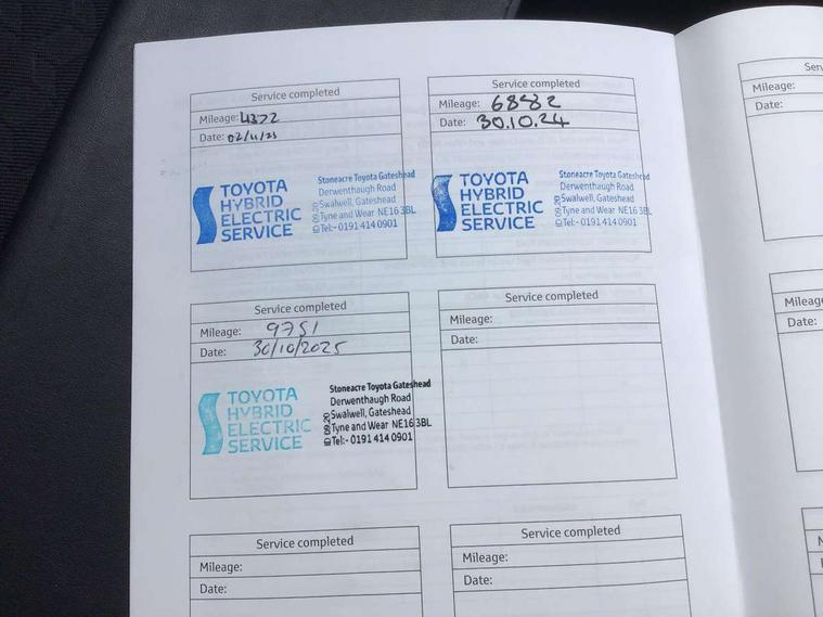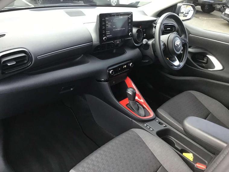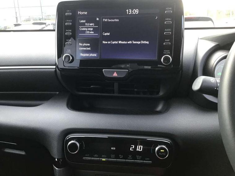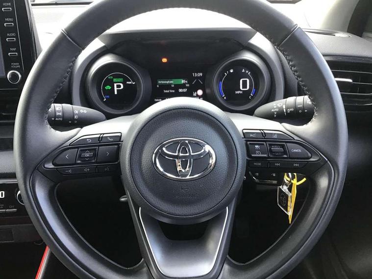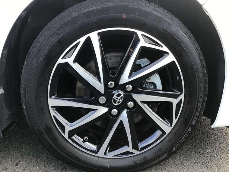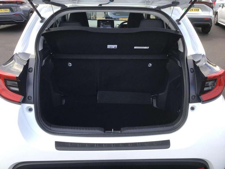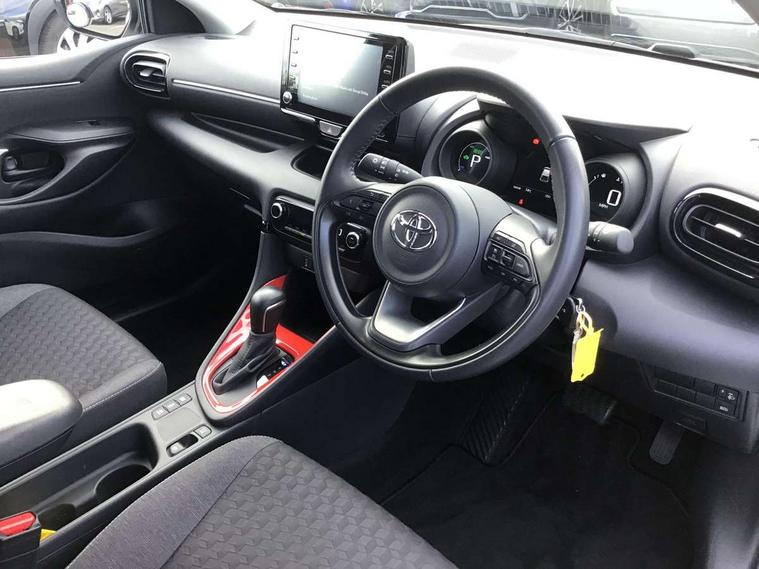 Adaptive cruise control, Adjustable speed limit with speed warning, Bluetooth connectivity, Colour binocular inspired displays with digital speedometer, E-call, Electric power steering, Hybrid energy display, Multi information display switches on steering wheel, Reversing camera, Smartphone integration with Apple CarPlay and Android auto, Tailgate, Voice recognition, Vehicle Stability Control (VSC), 4 speakers, 8" Multimedia display touch screen, USB connection, Acoustic windscreen glass, Auto windscreen wipers, Automatic headlights, Body coloured door mirrors, Electric adjustable heated door mirrors, Follow me home headlights, Front auto power windows with anti jam protection, Full LED rear lights, LED daytime running lights, LED front fog lights, LED front light guide, LED Headlights, LED High mounted stop lamp, LED Indicators, LED rear light guide, Manual headlight levelling, Painted chequered front grille, Rain sensor, Rear auto power windows with anti jam protection, Rear privacy glass, Rear side wing doors, Rear spoiler, Rear wiper, Shark fin antenna, Turning signal integrated indicators in door mirrors, Variable front intermittent wipers, 3 adjustable rear headrests, 3 spoke leather steering wheel, 60/40 split folding rear seat, Active headrests, Adjustable boot height, Auto air conditioning, Coat hooks in rear grab handles, Cup holders (2 front & door), Data Communication Module (DCM) connected services, Fabric upholstery, Front armrest, Glovebox, Grey roof lining, Height adjustable driver's seat, Isofix seat fixing, Leather gearshift, Pollen filter, Shopping bag hooks, Single front passenger seat, Tilt/telescopic steering column, 3 point seatbelts on all rear seats, ABS+EBD+Brake assist, Electronic parking brake, Emergency brake light system (EBS), Front passenger airbag on/off switch, Front seatbelt reminder, Hill start assist control (HAC), Rear child proof door locks, Rear seat belt reminder, Supplemental Restraint System (SRS) 8 airbags: Driver & passenger's airbags, dual side curtain airbags, side impact airbags, front centre airbag, Toyota Safety Sense 2, Precollison + Night time Pedestrian & Cyclist Detection, Lane Trace Assist, Auto High Beam, Intelligent ACC & Road Sign Assist, Tyre pressure warning system, 2x Master key, Alarm/immobiliser, Remote powered central double locking doors, Soft touch instrument panel, Space saver spare wheel,