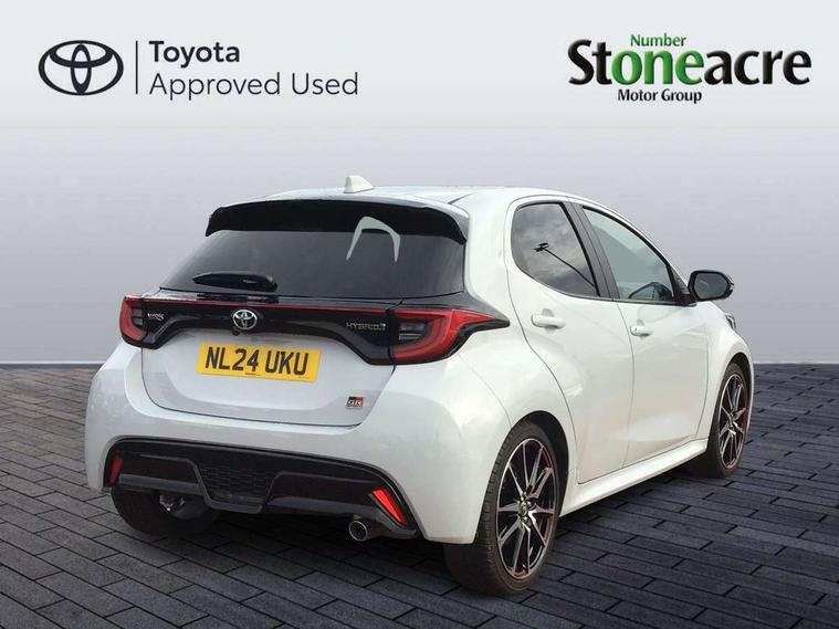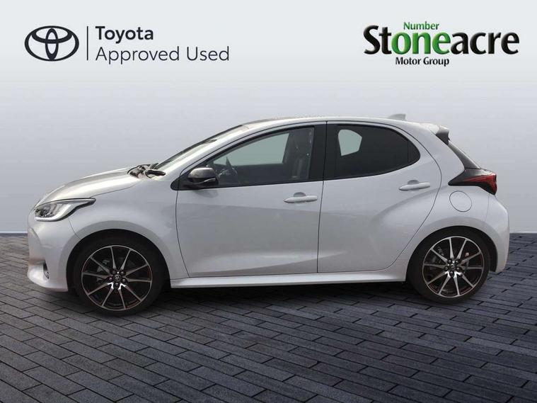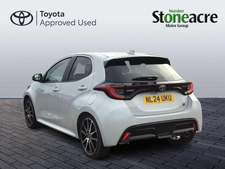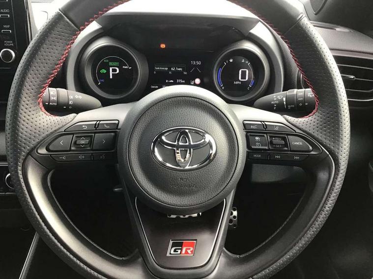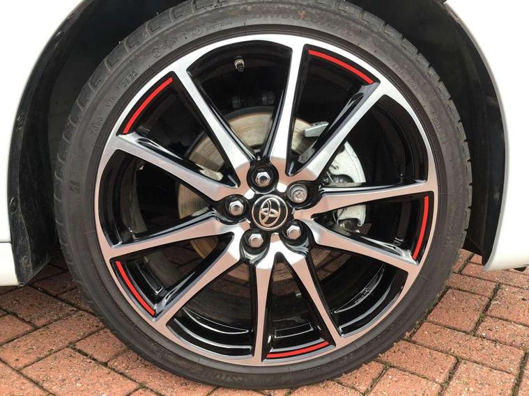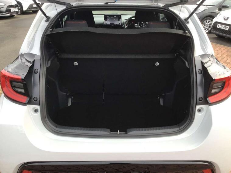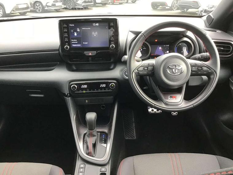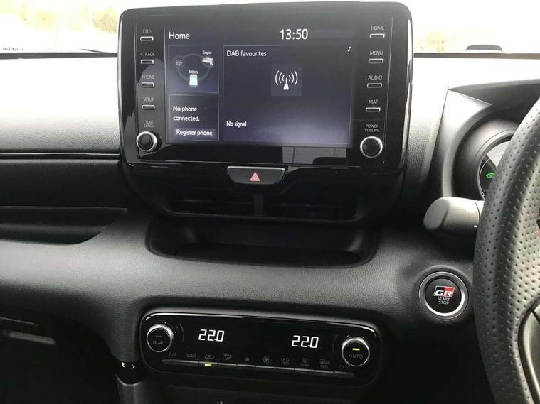 Adaptive cruise control, Adjustable speed limit with speed warning, Bluetooth connectivity, Colour binocular inspired displays with digital speedometer, E-call, Electric power steering, Hybrid energy display, Multi information display switches on steering wheel, Reversing camera, Smartphone integration with Apple CarPlay and Android auto, Tailgate, Voice recognition, Vehicle Stability Control (VSC), 6 speakers, 8" Multimedia display touch screen, Toyota Touch 2 with DAB, USB connection, Acoustic windscreen glass, Auto windscreen wipers, Automatic headlights, Body coloured door mirrors, Dark chrome lower front grille, Electric adjustable heated door mirrors, Follow me home headlights, Front auto power windows with anti jam protection, Full LED rear lights, LED daytime running lights, LED front fog lights, LED front light guide, LED Headlights, LED High mounted stop lamp, LED Indicators, LED rear light guide, Manual headlight levelling, Painted chequered front grille with hot stamp in mesh design, Rain sensor, Rear auto power windows with anti jam protection, Rear privacy glass, Rear side wing doors, Rear spoiler, Rear wiper, Shark fin antenna, Turning signal integrated indicators in door mirrors, Variable front intermittent wipers, 3 adjustable rear headrests, 3 seat bench in 2nd row, 3 spoke leather steering wheel, 60/40 split folding rear seat, Active headrests, Adjustable boot height, Black roof lining, Coat hooks in rear grab handles, Cup holders (2 front & door), Data Communication Module (DCM) connected services, Dual zone automatic air conditioning, Fabric upholstery with red stitching, Front armrest, Front sport seats, Glovebox, Height adjustable driver's seat, Height adjustable passenger seat, Isofix seat fixing, Leather gearshift, Map pockets on the backs of the front seats, Pollen filter, Shopping bag hooks, Single front passenger seat, Tilt/telescopic steering column, 3 point seatbelts on all rear seats, ABS+EBD+Brake assist, Electronic parking brake, Emergency brake light system (EBS), Front passenger airbag on/off switch, Front seatbelt reminder, Hill start assist control (HAC), Rear child proof door locks, Rear seat belt reminder, Supplemental Restraint System (SRS) 8 airbags: Driver & passenger's airbags, dual side curtain airbags, side impact airbags, front centre airbag, Toyota Safety Sense 2, Precollison + Night time Pedestrian & Cyclist Detection, Lane Trace Assist, Auto High Beam, Intelligent ACC & Road Sign Assist, Tyre pressure warning system, 2x Master key, Alarm/immobiliser, Keyless smart entry with push button start, Remote AC via MyT, Remote locking via MyT, Remote powered central double locking doors, GR Sport interior styling with accents and exterior styling, Piano black interior trim, Soft touch instrument panel, 18" machined face alloy wheels with GR Sport red deco lines, Space saver spare wheel,