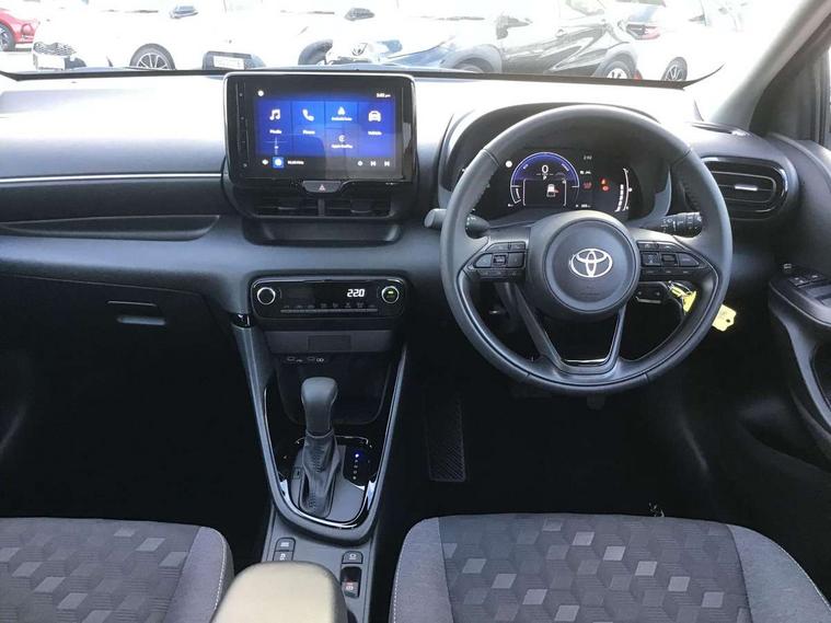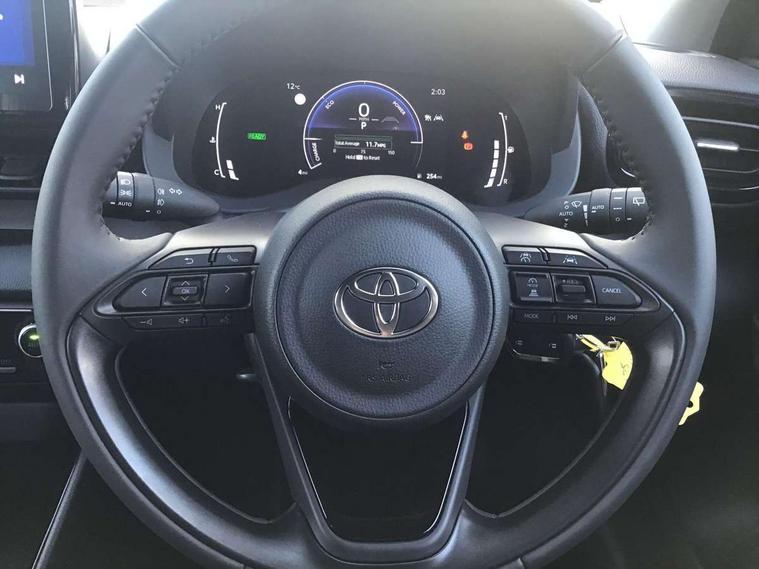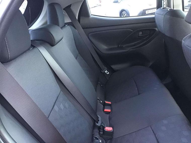 7" Digital Combimeter, Adaptive cruise control, Adjustable speed limit with speed warning, Bluetooth connectivity, Colour binocular inspired displays with digital speedometer, E-call, Electric power steering, Hybrid energy display, Lane trace assist, Multi information display switches on steering wheel, Pre-collision system (PCS), Reversing camera, Smartphone integration with Apple CarPlay and Android auto, Tailgate, Voice recognition, Vehicle Stability Control (VSC), 4 speakers, 9" Multimedia touch display, Toyota Touch 3 system with DAB radio, USB connection, Acoustic windscreen glass, Auto high beam assist, Auto windscreen wipers, Automatic headlights, Body coloured door mirrors, Electric adjustable heated door mirrors, Follow me home headlights, Front auto power windows with anti jam protection, LED daytime running lights, LED front fog lights, LED front light guide, LED Headlights, LED High mounted stop lamp, LED Indicators, LED rear light guide, Manual headlight levelling, Painted chequered front grille, Rain sensor, Rear auto power windows with anti jam protection, Rear privacy glass, Rear roof spoiler, Rear side wing doors, Rear wiper, Shark fin antenna, Turning signal integrated indicators in door mirrors, Variable front intermittent wipers, 3 adjustable rear headrests, 3 seat bench in 2nd row, 3 spoke leather steering wheel, 60/40 split folding rear seat, Active headrests, Adjustable boot height, Auto air conditioning, Coat hooks in rear grab handles, Cup holders (2 front & door), Data Communication Module (DCM) connected services, Fabric upholstery, Front armrest, Glovebox, Grey roof lining, Height adjustable driver's seat, Isofix seat fixing, Leather gearshift, Pollen filter, Shopping bag hooks, Single front passenger seat, Tilt/telescopic steering column, 3 point seatbelts on all rear seats, ABS+EBD+Brake assist, Electronic parking brake, Emergency brake light system (EBS), Front passenger airbag on/off switch, Front seatbelt reminder, Hill start assist control (HAC), Rear child proof door locks, Rear seat belt reminder, Supplemental Restraint System (SRS) 8 airbags: Driver & passenger's airbags, dual side curtain airbags, side impact airbags, front centre airbag, Toyota Safety Sense 3 with over the air updates, Tyre pressure warning system, 2x Master key, Alarm/immobiliser, Remote powered central double locking doors, Soft touch instrument panel, Space saver spare wheel,