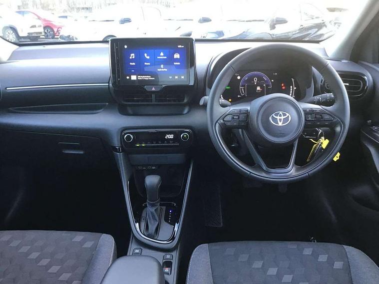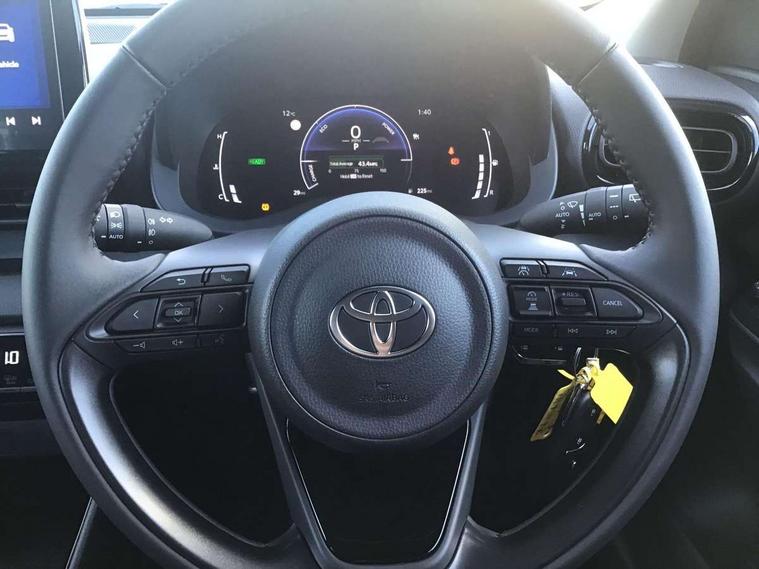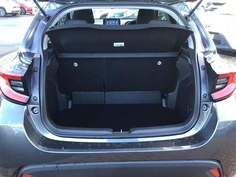 7" Digital Combimeter, Adaptive cruise control, Adjustable speed limit with speed warning, Bluetooth connectivity, Colour binocular inspired displays with digital speedometer, E-call, Electric power steering, Hybrid energy display, Lane trace assist, Multi information display switches on steering wheel, Pre-collision system (PCS), Reversing camera, Smartphone integration with Apple CarPlay and Android auto, Tailgate, Voice recognition, Vehicle Stability Control (VSC), 4 speakers, 9" Multimedia touch display, Toyota Touch 3 system with DAB radio, USB connection, Acoustic windscreen glass, Auto high beam assist, Auto windscreen wipers, Automatic headlights, Body coloured door mirrors, Electric adjustable heated door mirrors, Follow me home headlights, Front auto power windows with anti jam protection, LED daytime running lights, LED front fog lights, LED front light guide, LED Headlights, LED High mounted stop lamp, LED Indicators, LED rear light guide, Manual headlight levelling, Painted chequered front grille, Rain sensor, Rear auto power windows with anti jam protection, Rear privacy glass, Rear roof spoiler, Rear side wing doors, Rear wiper, Shark fin antenna, Turning signal integrated indicators in door mirrors, Variable front intermittent wipers, 3 adjustable rear headrests, 3 seat bench in 2nd row, 3 spoke leather steering wheel, 60/40 split folding rear seat, Active headrests, Adjustable boot height, Auto air conditioning, Coat hooks in rear grab handles, Cup holders (2 front & door), Data Communication Module (DCM) connected services, Fabric upholstery, Front armrest, Glovebox, Grey roof lining, Height adjustable driver's seat, Isofix seat fixing, Leather gearshift, Pollen filter, Shopping bag hooks, Single front passenger seat, Tilt/telescopic steering column, 3 point seatbelts on all rear seats, ABS+EBD+Brake assist, Electronic parking brake, Emergency brake light system (EBS), Front passenger airbag on/off switch, Front seatbelt reminder, Hill start assist control (HAC), Rear child proof door locks, Rear seat belt reminder, Supplemental Restraint System (SRS) 8 airbags: Driver & passenger's airbags, dual side curtain airbags, side impact airbags, front centre airbag, Toyota Safety Sense 3 with over the air updates, Tyre pressure warning system, 2x Master key, Alarm/immobiliser, Remote powered central double locking doors, Soft touch instrument panel, Space saver spare wheel,
