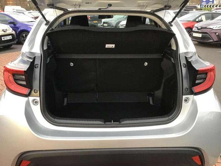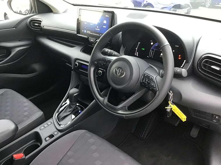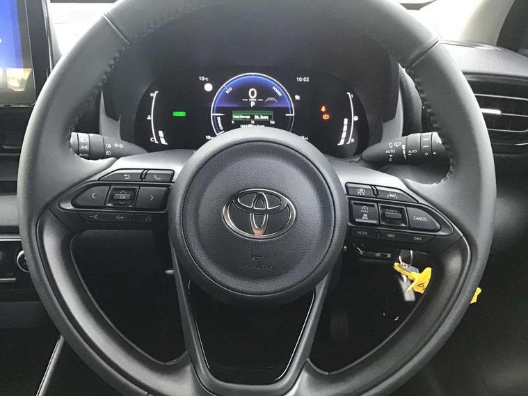 7" Digital Combimeter, Adaptive cruise control, Adjustable speed limit with speed warning, Bluetooth connectivity, Colour binocular inspired displays with digital speedometer, E-call, Electric power steering, Hybrid energy display, Lane trace assist, Multi information display switches on steering wheel, Pre-collision system (PCS), Reversing camera, Smartphone integration with Apple CarPlay and Android auto, Tailgate, Voice recognition, Vehicle Stability Control (VSC), 4 speakers, 9" Multimedia touch display, Toyota Touch 3 system with DAB radio, USB connection, Acoustic windscreen glass, Auto high beam assist, Auto windscreen wipers, Automatic headlights, Body coloured door mirrors, Electric adjustable heated door mirrors, Follow me home headlights, Front auto power windows with anti jam protection, LED daytime running lights, LED front fog lights, LED front light guide, LED Headlights, LED High mounted stop lamp, LED Indicators, LED rear light guide, Manual headlight levelling, Painted chequered front grille, Rain sensor, Rear auto power windows with anti jam protection, Rear privacy glass, Rear roof spoiler, Rear side wing doors, Rear wiper, Shark fin antenna, Turning signal integrated indicators in door mirrors, Variable front intermittent wipers, 3 adjustable rear headrests, 3 seat bench in 2nd row, 3 spoke leather steering wheel, 60/40 split folding rear seat, Active headrests, Adjustable boot height, Auto air conditioning, Coat hooks in rear grab handles, Cup holders (2 front & door), Data Communication Module (DCM) connected services, Fabric upholstery, Front armrest, Glovebox, Grey roof lining, Height adjustable driver's seat, Isofix seat fixing, Leather gearshift, Pollen filter, Shopping bag hooks, Single front passenger seat, Tilt/telescopic steering column, 3 point seatbelts on all rear seats, ABS+EBD+Brake assist, Electronic parking brake, Emergency brake light system (EBS), Front passenger airbag on/off switch, Front seatbelt reminder, Hill start assist control (HAC), Rear child proof door locks, Rear seat belt reminder, Supplemental Restraint System (SRS) 8 airbags: Driver & passenger's airbags, dual side curtain airbags, side impact airbags, front centre airbag, Toyota Safety Sense 3 with over the air updates, Tyre pressure warning system, 2x Master key, Alarm/immobiliser, Remote powered central double locking doors, Soft touch instrument panel, Space saver spare wheel,