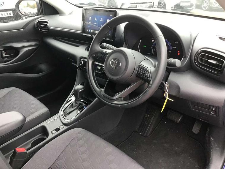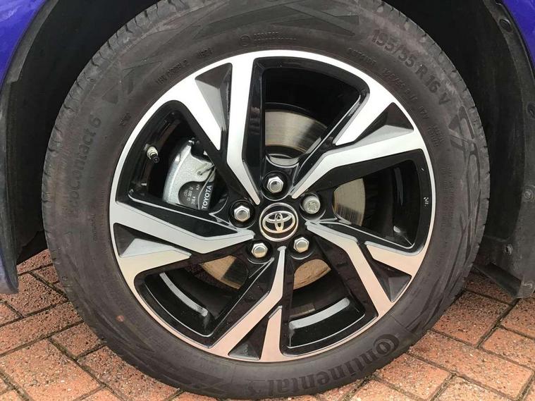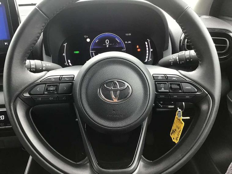 7" Digital Combimeter, Adaptive cruise control, Adjustable speed limit with speed warning, Bluetooth connectivity, Colour binocular inspired displays with digital speedometer, E-call, Electric power steering, Hybrid energy display, Lane trace assist, Multi information display switches on steering wheel, Pre-collision system (PCS), Reversing camera, Smartphone integration with Apple CarPlay and Android auto, Tailgate, Voice recognition, Vehicle Stability Control (VSC), 4 speakers, 9" Multimedia touch display, Toyota Touch 3 system with DAB radio, USB connection, Acoustic windscreen glass, Auto high beam assist, Auto windscreen wipers, Automatic headlights, Body coloured door mirrors, Electric adjustable heated door mirrors, Follow me home headlights, Front auto power windows with anti jam protection, LED daytime running lights, LED front fog lights, LED front light guide, LED Headlights, LED High mounted stop lamp, LED Indicators, LED rear light guide, Manual headlight levelling, Painted chequered front grille, Rain sensor, Rear auto power windows with anti jam protection, Rear privacy glass, Rear roof spoiler, Rear side wing doors, Rear wiper, Shark fin antenna, Turning signal integrated indicators in door mirrors, Variable front intermittent wipers, 3 adjustable rear headrests, 3 seat bench in 2nd row, 3 spoke leather steering wheel, 60/40 split folding rear seat, Active headrests, Adjustable boot height, Auto air conditioning, Coat hooks in rear grab handles, Cup holders (2 front & door), Data Communication Module (DCM) connected services, Fabric upholstery, Front armrest, Glovebox, Grey roof lining, Height adjustable driver's seat, Isofix seat fixing, Leather gearshift, Pollen filter, Shopping bag hooks, Single front passenger seat, Tilt/telescopic steering column, 3 point seatbelts on all rear seats, ABS+EBD+Brake assist, Electronic parking brake, Emergency brake light system (EBS), Front passenger airbag on/off switch, Front seatbelt reminder, Hill start assist control (HAC), Rear child proof door locks, Rear seat belt reminder, Supplemental Restraint System (SRS) 8 airbags: Driver & passenger's airbags, dual side curtain airbags, side impact airbags, front centre airbag, Toyota Safety Sense 3 with over the air updates, Tyre pressure warning system, 2x Master key, Alarm/immobiliser, Remote powered central double locking doors, Soft touch instrument panel, Space saver spare wheel,