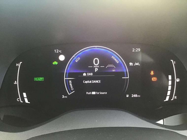 7" Digital Combimeter, Adaptive cruise control, Adjustable speed limit with speed warning, Bluetooth connectivity, Colour binocular inspired displays with digital speedometer, E-call, Electric power steering, Hybrid energy display, Lane trace assist, Multi information display switches on steering wheel, Pre-collision system (PCS), Reversing camera, Smartphone integration with Apple CarPlay and Android auto, Tailgate, Voice recognition, Vehicle Stability Control (VSC), 4 speakers, 9" Multimedia touch display, Toyota Touch 3 system with DAB radio, USB connection, Acoustic windscreen glass, Auto high beam assist, Auto windscreen wipers, Automatic headlights, Body coloured door mirrors, Electric adjustable heated door mirrors, Follow me home headlights, Front auto power windows with anti jam protection, LED daytime running lights, LED front fog lights, LED front light guide, LED Headlights, LED High mounted stop lamp, LED Indicators, LED rear light guide, Manual headlight levelling, Painted chequered front grille, Rain sensor, Rear auto power windows with anti jam protection, Rear privacy glass, Rear roof spoiler, Rear side wing doors, Rear wiper, Shark fin antenna, Turning signal integrated indicators in door mirrors, Variable front intermittent wipers, 3 adjustable rear headrests, 3 seat bench in 2nd row, 3 spoke leather steering wheel, 60/40 split folding rear seat, Active headrests, Adjustable boot height, Auto air conditioning, Coat hooks in rear grab handles, Cup holders (2 front & door), Data Communication Module (DCM) connected services, Fabric upholstery, Front armrest, Glovebox, Grey roof lining, Height adjustable driver's seat, Isofix seat fixing, Leather gearshift, Pollen filter, Shopping bag hooks, Single front passenger seat, Tilt/telescopic steering column, 3 point seatbelts on all rear seats, ABS+EBD+Brake assist, Electronic parking brake, Emergency brake light system (EBS), Front passenger airbag on/off switch, Front seatbelt reminder, Hill start assist control (HAC), Rear child proof door locks, Rear seat belt reminder, Supplemental Restraint System (SRS) 8 airbags: Driver & passenger's airbags, dual side curtain airbags, side impact airbags, front centre airbag, Toyota Safety Sense 3 with over the air updates, Tyre pressure warning system, 2x Master key, Alarm/immobiliser, Remote powered central double locking doors, Soft touch instrument panel, Space saver spare wheel,