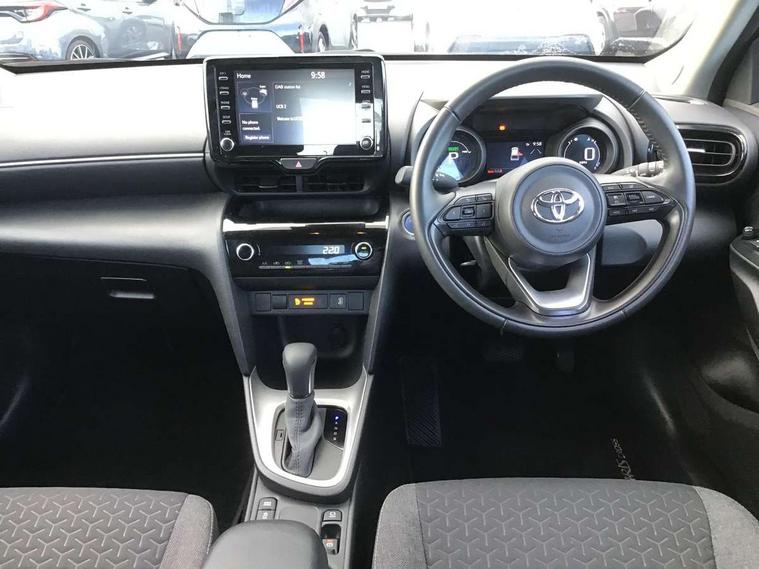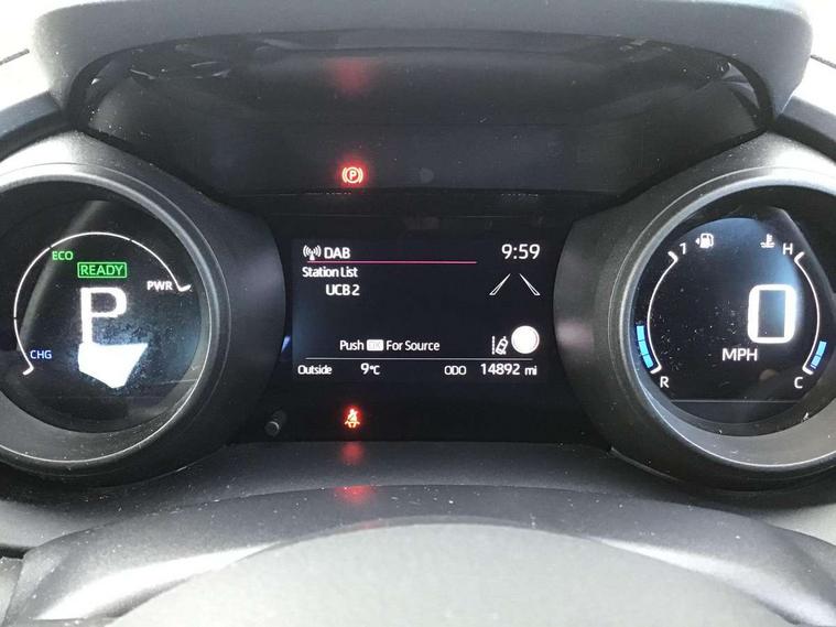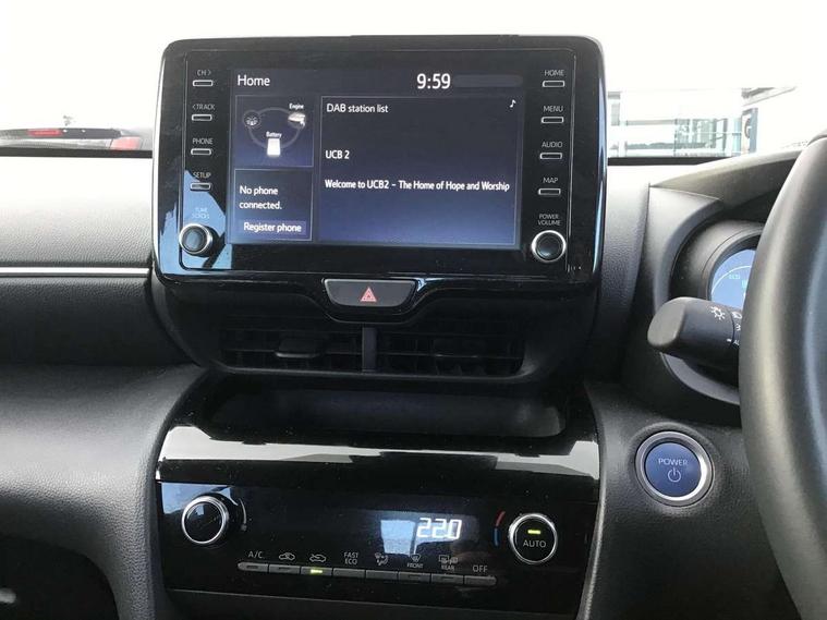 4.2" multi information display, 8" Toyota touch 2 multimedia system with Smartphone integration with Apple CarPlay and Android auto, Adjustable speed limiter, Bluetooth connectivity, Digital speedometer, Driver attention alert system, eCall emergency system, Electric power steering, Full range intelligent adaptive cruise control, Hybrid system indicator, Key reminder warning, Lane trace assist, Multimedia, audio, telephone and voice recognition switches on steering wheel, My T Connected services, Pre-collision system enhanced with emergency steering assist, Reversing camera, Road sign assist - RSA, Steering assisted vehicle stability control, 6 speakers, DAB Digital radio, USB connection, 3rd brake light, Acoustic windscreen glass, Anti-jam protection on power windows, Auto high beam [AHB] with on/off switch, Automatic headlights, Black lower front grille, Black Shark-fin antenna, Black upper front grille, Black wheel arch mouldings, Body colour door handles, Body colour front bumper, Body colour rear bumper, Electric adjustable heated door mirrors, Follow me home headlights, Front and rear electric windows with auto up/down function, Front intermittent wipers, Halogen projector headlights, Headlight cut off reminder, Indicators integrated on door mirrors, Intermittent rear wiper, LED daytime running lights, LED Indicators, Manual headlight levelling, Manually retractable door mirrors, Noise reduction layer on windscreen, Rain sensor, Rear side wing doors, Rear spoiler, Rear window defogger, 12v power outlet - front, 2x Rear coat hooks, 3 seat bench in 2nd row, 3 spoke leather steering wheel, 60/40 split folding rear seat, Adjustable speed limiter switch on steering wheel, Auto air conditioning, Boot light, Central armrest, Driver and front passenger personal lights, Fabric door trim, Fabric upholstery, Front console box, Front cup holders, Front head restraints, Glovebox, Grey roof lining, Height adjustable driver's seat, Height adjustable front passenger seat, ISOFIX child restraint system, Lane departure alert switch on steering control, Leather gearshift, Manual telescopic and tilting steering wheel, Mirror on driver and passenger sun visor, Pollen air filter, Rear head restraints, Single front passenger seat, Soft tonneau cover, 3x3 point rear seat belts, ABS+EBD+Brake assist, Driver and passenger central airbags, Driver and passenger front airbags, Driver and passenger side airbags, Electronic parking brake, Emergency brake light system (EBS), Front seat belt reminder, Hill start assist control (HAC), Passenger airbag on/off switch, Pre-collision system with pedestrian and cyclist detection, Rear door child safety locks, Rear passenger side airbags, Rear seat belt reminder, Traction control, Tyre pressure warning system, Immobiliser, Intrusion alarm, Keyless smart entry with push button start, Power door locks, Power passenger window lock, Remote door lock, 16" 10 spoke alloy wheels, Tyre repair kit,