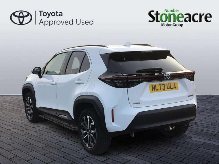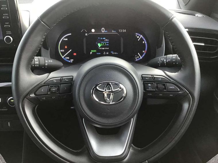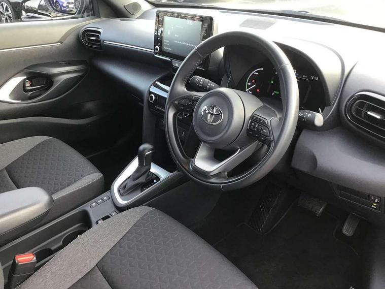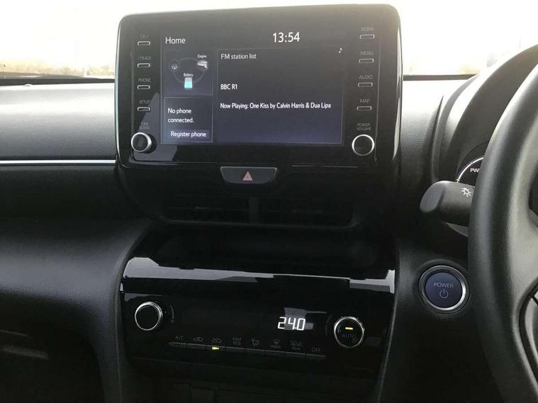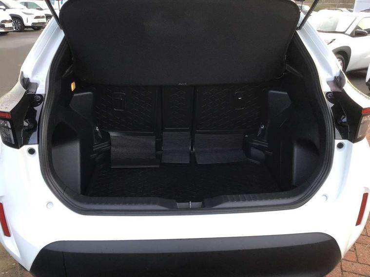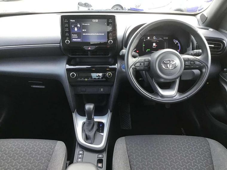7" Multi information display screen, 8" Toyota touch 2 multimedia system with Smartphone integration with Apple CarPlay and Android auto, Adjustable speed limiter, Bluetooth connectivity, Driver attention alert system, eCall emergency system, Electric power steering, Full range intelligent adaptive cruise control, Hybrid system indicator, Key reminder warning, Lane trace assist, Multimedia, audio, telephone and voice recognition switches on steering wheel, My T Connected services, Pre-collision system enhanced with emergency steering assist, Reversing camera, Road sign assist - RSA, Steering assisted vehicle stability control, 6 speakers, DAB Digital radio, USB connection, 3rd brake light, Acoustic windscreen glass, Aluminium roof rails, Anti-jam protection on power windows, Auto high beam [AHB] with on/off switch, Automatic headlights, Black lower front grille, Black Shark-fin antenna, Black upper front grille, Black wheel arch mouldings, Body colour door handles, Body colour front bumper, Body colour rear bumper, Electric adjustable heated door mirrors, Follow me home headlights, Front and rear electric windows with auto up/down function, Front intermittent wipers, Headlight cut off reminder, Indicators integrated on door mirrors, Intermittent rear wiper, LED daytime running lights guide, LED front fog lights, LED front light guide, LED Indicators, LED projector headlights, LED rear light guide, Manual headlight levelling, Manually retractable door mirrors, Noise reduction layer on windscreen, Privacy glass, Rain sensor, Rear LED lights with sequential indicators, Rear side wing doors, Rear spoiler, Rear window defogger, 12v power outlet - front, 2x Rear coat hooks, 3 seat bench in 2nd row, 3 spoke leather steering wheel, 40:20:40 split folding rear bench seat, Adjustable speed limiter switch on steering wheel, Auto air conditioning, Black roof lining, Boot light, Central armrest, Centre console in light blue ambent lighting, Driver and front passenger personal lights, Fabric door trim, Fabric upholstery, Footwell in light blue ambient lighting, Front console box, Front cup holders, Front head restraints, Glovebox, Height adjustable driver's seat, Height adjustable front passenger seat, Hooks for luggage holding belts, ISOFIX child restraint system, Lane departure alert switch on steering control, Leather gearshift, Light blue ambient lighting on front doors, Manual telescopic and tilting steering wheel, Mirror on driver and passenger sun visor, Pollen air filter, Rear cup holders, Rear head restraints, Single front passenger seat, Soft tonneau cover, 3x3 point rear seat belts, ABS+EBD+Brake assist, Driver and passenger central airbags, Driver and passenger front airbags, Driver and passenger side airbags, Electronic parking brake, Emergency brake light system (EBS), Front seat belt reminder, Hill start assist control (HAC), Passenger airbag on/off switch, Pre-collision system with pedestrian and cyclist detection, Rear door child safety locks, Rear passenger side airbags, Rear seat belt reminder, Traction control, Tyre pressure warning system, Immobiliser, Intrusion alarm, Keyless smart entry with push button start, Power door locks, Power passenger window lock, Remote door lock, Tyre repair kit,