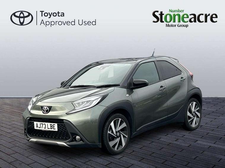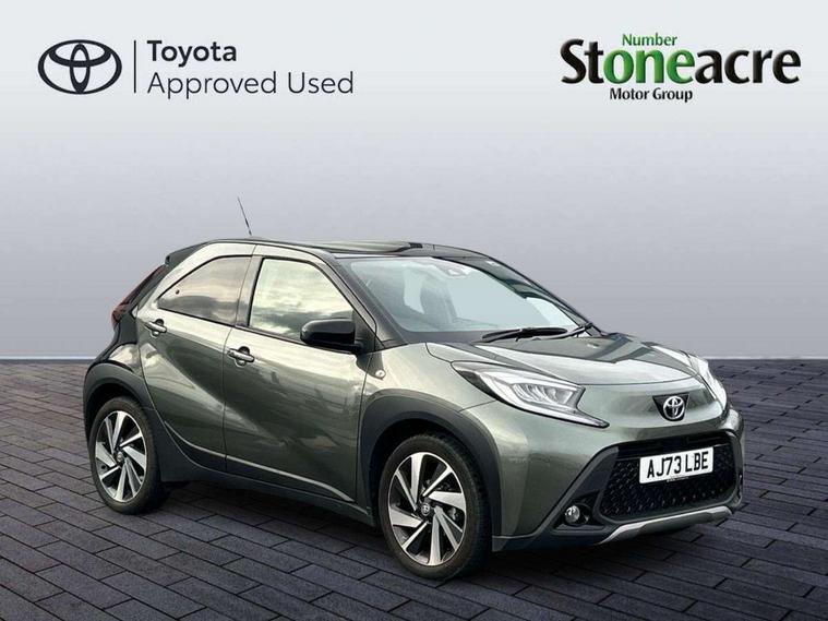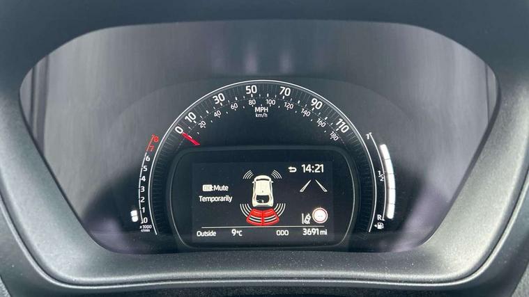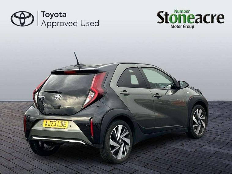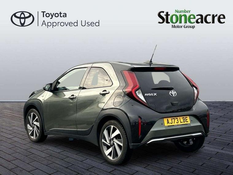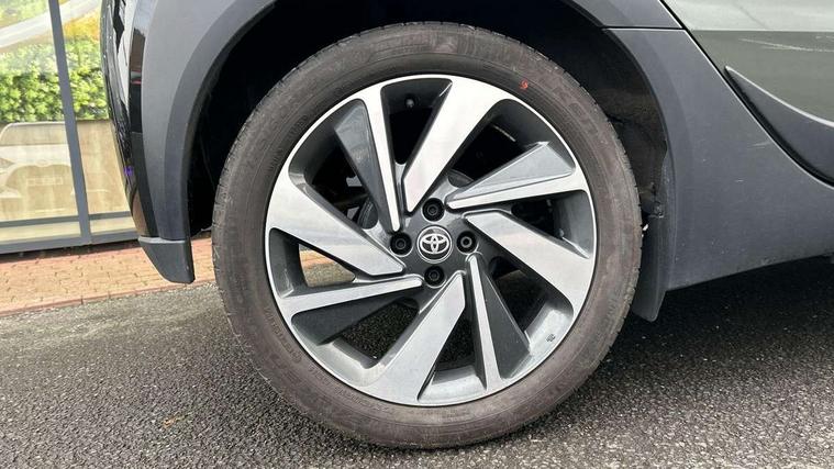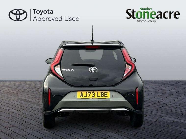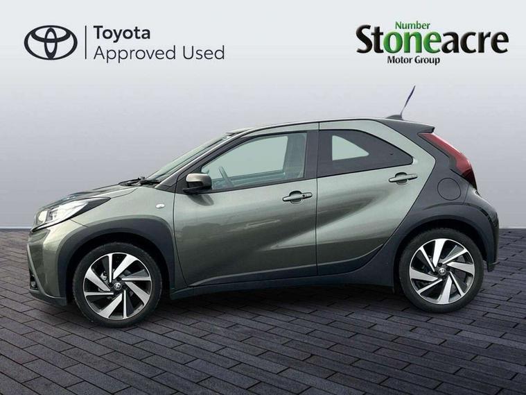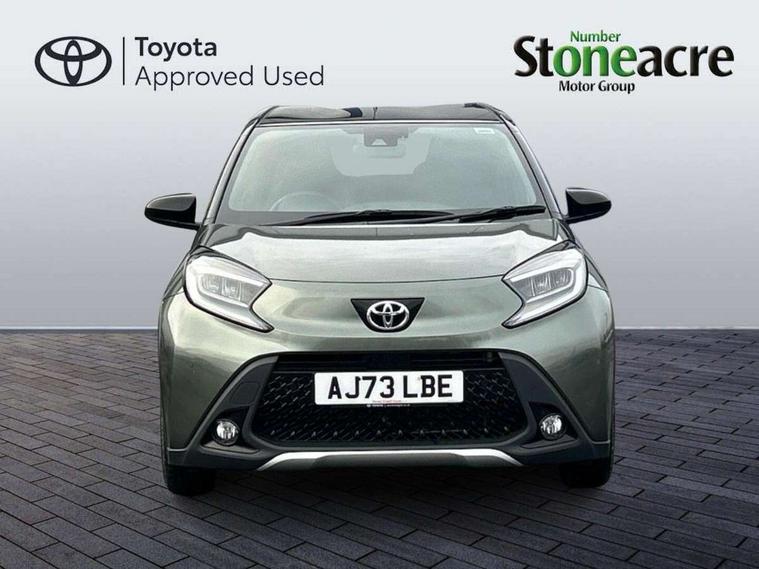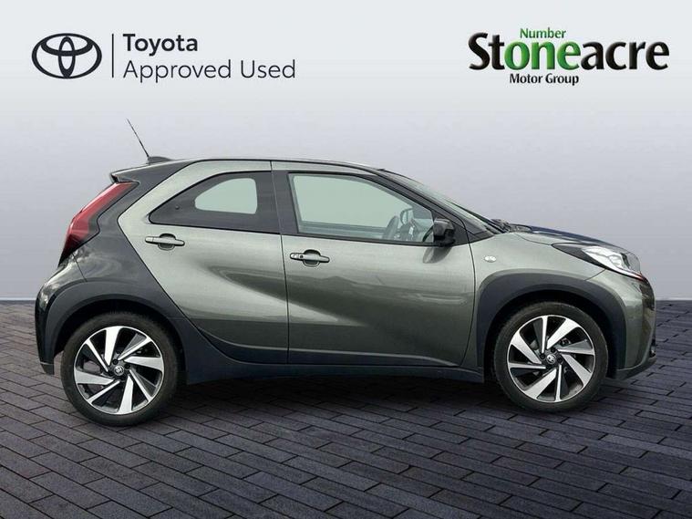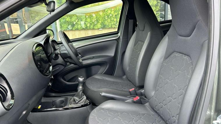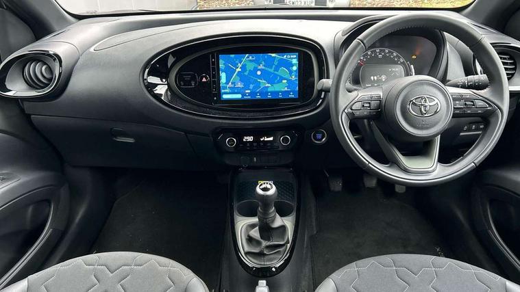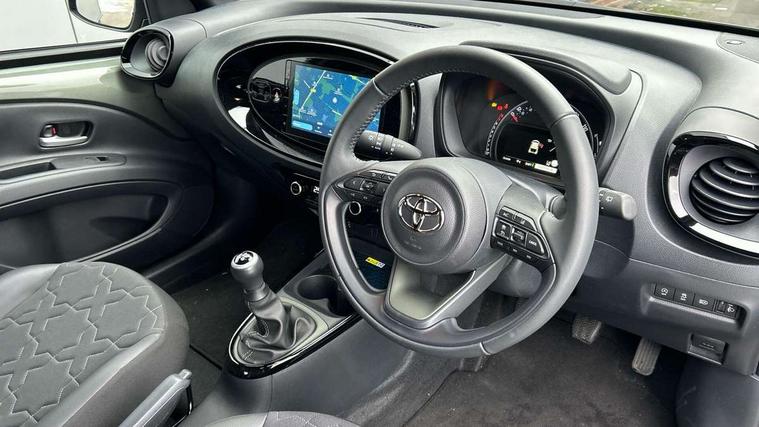 4.2" TFT colour screen, Adjustable speed limiter, Analogue speedometer, Bluetooth connectivity, Digital tachograph, Driver attention alert system, eCall emergency call system, Electric power steering, Front and rear parking sensors with auto brake, Intersection turn assist, Key reminder warning, Noise reduction kit, Pre collision system with emergency steering assist, Remote boot door release on key, Reversing camera with static guide lines, Smart entry and push button start, Smart phone integration with Apple car play/Android Auto, Speed limit display, Start and stop, Wireless charger, Vehicle Stability Control (VSC), 10.5" HD multimedia display touch screen with Toyota smart connect, 4 speakers, DAB digital audio broadcast, USB connector, Auto headlights, Auto wipers, Automatic headlights cut-off, Automatic high beam On/Off switch, Bicycle towing hook, Black contrast roof, Black fog light surrounds, Black side protection mouldings, Black wheel arch mouldings, Body colour door handles, Body coloured front bumper, Boot door scuff plate, Eclipse black rear bumper, Electric heated door mirrors, Follow me home headlights, Front and rear underruns in silver, Front fog lights, Front power windows, Gloss black door mirrors, Gloss black upper front grille, Headlight cut-off reminder, LED daytime running lights guide, LED front light guide, LED High mounted stop lamp, LED projector headlights, Manual day/night rear view mirror, Manual headlight levelling, Pagoda roof, Power adjustable door mirrors, Power back door, Privacy glass, Rain sensor, Rear combination lights LED bulb type, Rear side wing doors, Rear windscreen defogger, Rear windscreen wiper, Remote hazard lights system, Short antenna, Variable intermittent windscreen wipers, 12v power outlet - front, 2 seat bench in 2nd row, 3 spoke leather steering wheel, 50/50 split folding rear seat, Adhesive roof headlining, Adjustable speed limiter switch on steering wheel, Audio and telephone switches on steering wheel, Auto air conditioning, Black roof lining, Body colour satin anodised insert on steering wheel, Boot light, Centre room light, Chrome interior door handles, Chrome surround on air conditioning buttons, Clean air filter, Console box storage, Floor mats, Front and rear cup holders, Front head rest deco art, Front head restraints, Height adjustable driver seat, Intelligent adaptive cruise control switch on steering wheel, ISOFIX child restraint system on rear seats, Lane departure alert switch on steering wheel, Leather gearshift knob, Light blue ambient lighting in centre console, Manual tilt steering wheel, Manually reclining and sliding driver seat, Manually reclining and sliding front passenger seat, Multimedia switches on steering wheel, Partial synthetic leather upholstery, Pollen filter, Rear door pockets, Rear head restraints, Satin silver insert on gear shift knob, Single compartment glovebox with lights, Single front passenger seat, Soft tonneau cover, Sun visors with mirror on driver and passenger side, Voice recognition switch on steering wheel, Toyota safety sense pack - Aygo X, Anti lock braking system + Electronic brake force distribution, Child safety door lock, Emergency brake light signal (EBS), Hill start assist control (HAC), Passenger airbag on/off switch, Seat belt reminder for front and rear seats, Supplement restraints system (SRS) - 6 airbags, Traction control, Tyre pressure warning system, Immobiliser, Remote power door locks, Black wheel centre caps, Tyre repair kit,