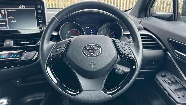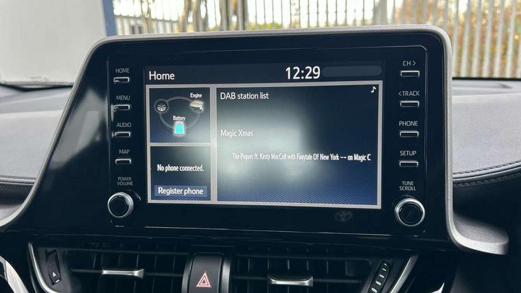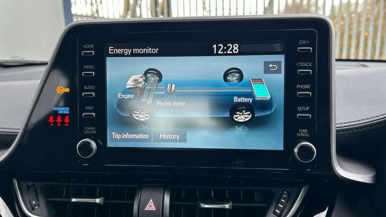 4.2" coloured TFT screen for multi-information display, Adaptive cruise control, Bluetooth connectivity, E-call, Electric power steering, Hybrid system indicator, Lane departure alert with steering control, Lane trace assist, Push button start, Push button tailgate release, Remote boot door release in cabin, Remote boot door release in key, Reversing camera, Road sign assist - RSA, Smart voice assist, Trip computer, Voice recognition, Vehicle Stability Control (VSC), 6 speakers, AM/FM radio, DAB Radio (Digital Audio Broadcasting), Toyota touch 2 multimedia system with 8" display, USB connector, Wi-fi connectivity, Anti-jam protection on power windows, Auto high beam, Auto up and down function on all power windows, Automatic headlights, Automatic headlights cut-off, Black and body coloured rear bumper, Black lower front grille, Black upper front grille, Body colour door handles, Body colour door mirrors, Body colour front spoiler lip, Body coloured front bumper, Boot door release with push button, Electric heated door mirrors, Follow me home headlights, Front and rear power windows, Front fog lights, Headlight cut off reminder, Honeycomb lower front grille, LED daytime running lights, LED High mounted stop light, LED rear brake lights, LED rear combination lights, Manual headlight levelling, Manually retractable door mirrors, Noise reduction layer on front windows and windscreen, Power adjustable door mirrors, Rear side wing doors, Rear spoiler, Rear tailgate, Rear window defogger, Rear window wiper, Reflective LED headlights, Shark fin antenna, UV-filter on driver and passenger windows, UV-filter on rear windows, 12v power outlet - front, 3 rear headrests, 3 seat bench in 2nd row, 3 spoke leather steering wheel, 60/40 split folding rear seat, Adjustable rear headrests, Adjustable speed limiter switch on steering wheel, Assist grips front and centre pillar, Audio and telephone switches on steering wheel, Black front door assist grips, Boot light, Chrome interior door handles, Cloth upholstery, Driver and front passenger personal light, Driver and front passenger Whiplash Injury Lessening seats, Dual zone automatic air conditioning, Floor mats, Front cupholders, Front head restraints, Front sports seats, Glovebox with internal light, Hard tonneau cover, Hooks for luggage holding net, Humidifying Nanoe air purifier, Illuminated entry system, Isofix attachments on outer rear seats, Leather gearshift, Light on driver sun visor, Light on passenger sun visor, Manual telescopic steering wheel, Manual tilt steering wheel, Manually adjustable lumbar support on driver seat, Manually height adjustable driver seat, Manually height adjustable front passenger seat, Manually reclining driver seat, Manually reclining front passenger seat, Manually sliding driver seat, Manually sliding front passenger seat, Microphone on front personal light, Mirror on driver sun visor, Mirror on passenger sun visor, Multimedia switches on steering wheel, Pollen filter, Shopping bag hooks, Single front passenger seat, Slow opening on lower glovebox, Voice recognition switch on steering wheel, 16 Disk front wheel brake, 3x3 point rear seatbelts, ABS+EBD+Brake assist, Electronic parking brake, Front and rear seatbelt reminder, Front passenger airbag on/off switch, Hill start assist control (HAC), Pre collision system with pedestrian detection, Pre-tensioners and force limiters, Rear door child safety locks, SRS Airbags - Driver + Front passenger, front side, front and rear curtain and driver's knee airbags, Toyota safety sense, Tyre pressure monitoring system, Tyre pressure warning system, Acoustic vehicle alert system (AVAS), Glass-breaking alarm sensors, Immobiliser, Intrusion alarm, Intrusion sensor, Motion sensor alarm, Power door locks, Power passenger window lock, Remote central locking, Black lower dashboard, Black upper dashboard, Grey deco line on upper dashboard, Matte black centre console, Tyre repair kit,