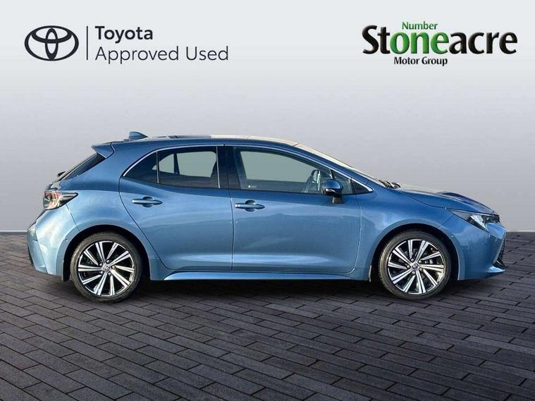 7" Multi information display screen, Bluetooth telephone connectivity, Connected car functionality upgrade, tracker, remote status and e-care, Door trim and centre console material, Dynamic radar cruise control (with RSA) including switch on steering wheel, E-call, Electrically assisted power steering, EV drive indicator, Intelligent park assist, Lane Departure Alert (LDA) switch on steering wheel, Memory on adjustable speed limiter, Push button start, Reversing camera, Smartphone integration with Apple CarPlay and Android auto, Gasoline particulate filter, Vehicle Stability Control (VSC), 6 speakers, 8" Touchscreen with MM19 Multimedia system and voice recognition, AM/FM radio, DAB Digital radio, Toyota touch 2 with go navigation system, USB and Aux in connectors + 12V front outlet, Anti-jam protection on power windows, Auto dimming inside rear view mirror, Auto up and down function on all power windows, Automatic folding mirrors, Automatic headlights with high beam assist, Black metallic surround on lower front grille, Black toyota logo in front, Black window frames, Body colour rear spoiler, Body coloured bumpers, Body coloured door mirrors, Body coloured outside door handles, Follow me home headlights, LED daytime running lights, LED front fog lights, LED Headlights, LED High mounted stop light, LED rear combi lights with LED lightguide, Power adjustable heated door mirrors, Power front windows, Power rear windows, Privacy glass, Rain sensing wipers, Rear side wing doors, Rear window defogger, Rear window wiper, Reverse tilting door mirrors, Shark fin antenna, Time adjustment on intermittent wiper, Turning signal integrated indicators in door mirrors, Unique lower skirt, Unique side rocker with black insert, UV-filter on driver and passenger windows, 3 rear headrests, 3 seat bench in 2nd row, 3 spoke leather steering wheel + gear knob, 60/40 split folding rear seat, Adjustable speed limiter switch on steering wheel, Audio, multimedia and telephone switches on steering wheel, Blue ambient interior illumination to centre tray, front cup holders and front door trim, Boot light, Centre room light, Clean air filter, Driver and front passenger personal light, Driver and passenger assist grip, Driver and passenger sun visor with mirror and light, Dual zone automatic air conditioning with ECO mode switch, Fabric/synthetic leather upholstery, Front and rear cup and bottle holders, Front door pockets, Front head restraints, Front passenger seat, Heated driver and front passenger seats, Illuminated entry system in room lamp, ISOFIX seat fixing (2 fixings on rear outer seats), Leather gear shift with satin chrome on gear shift console, Leather style armrests, Manual height adjustable for driver and front passenger seat, Parcel shelf, Passenger seat back pocket, Pollen filter, Power adjustable lumbar support on driver seat, Power window switches with satin chrome inserts, Rear armrest with 2 cupholders, Rear passenger coat hooks (2), Satin chrome inside door handles, Shopping bag hooks in luggage compartment, Sliding armrest on centre console box, Slow opening glovebox with lights, Tilt/telescopic steering column, Voice recognition switch on steering wheel, Whiplash Injury Lessening (WIL) feature (active headrest) for seats, Parking pack - Corolla, Toyota safety sense 2 pack - Corolla, 3x3 point rear seatbelts, Adjustable driver and front passenger seat belt extender to top anchor point, Anti lock braking system + Electronic brake force distribution, Brake assist function, Child locks on rear doors, Downhill Assist Control (DAC), Electronic parking brake, Emergency brake light signal (EBS), Front passenger airbag on/off switch, Front seatbelt reminder, HAC - Hill start assist control, Rear seat belt reminder, Seatbelt pretensioners and force limiters, Supplemental restraint system (SRS) 7 airbags - dual driver, dual side curtain, side impact and driver knee airbags, Traction control, Tyre pressure warning system, Acoustic vehicle alert system (AVAS), Alarm with motion sensor and immobilizer, Remote central locking + deadlocks, Smart entry, Satin chrome dash trim, Soft touch texture on upper dashboard, Unique wheel finish with red wheel cap,