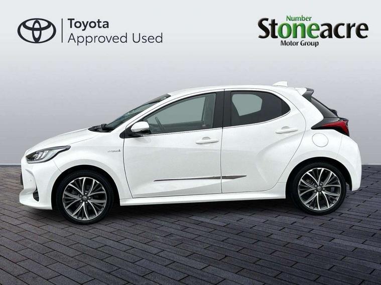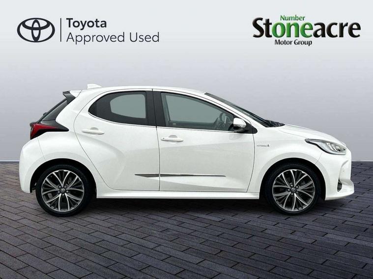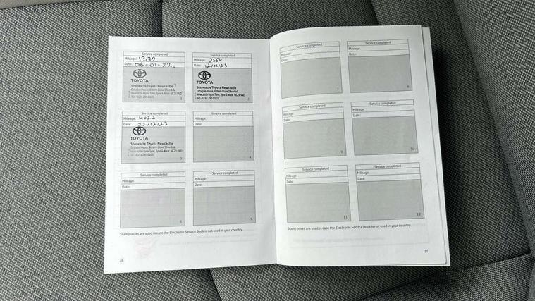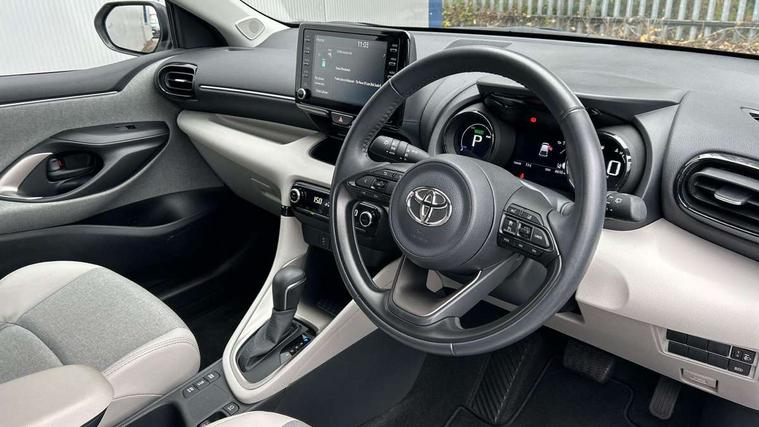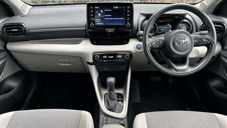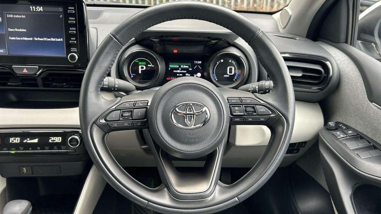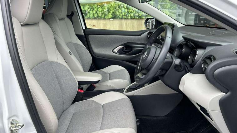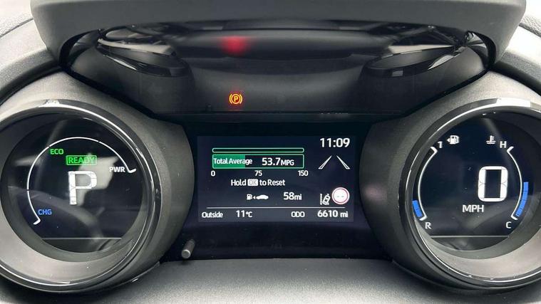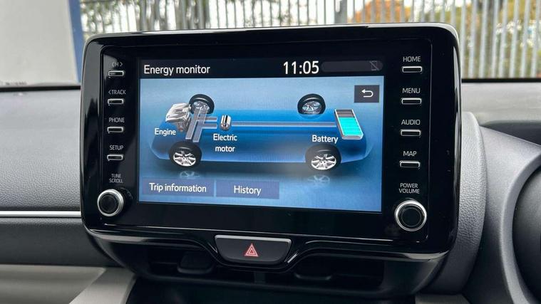 Adaptive cruise control, Adjustable speed limit with speed warning, Blind spot monitoring, Bluetooth connectivity, Colour binocular inspired displays with digital speedometer, E-call, Electric power steering, Front and rear parking sensors with intelligent clearance sonar and automatic braking, Hybrid energy display, Multi information display switches on steering wheel, Reversing camera, Smartphone integration with Apple CarPlay and Android auto, Vehicle Stability Control (VSC), 6 speakers, 8" Multimedia display touch screen, USB connection, Acoustic windscreen glass, Auto windscreen wipers, Automatic headlights, Automatically retractable door mirrors, Body coloured door mirrors, Electric adjustable heated door mirrors, Follow me home headlights, Front auto power windows with anti jam protection, Full LED rear lights, LED daytime running lights, LED front fog lights, LED Headlights, LED High mounted stop lamp, Painted front grille, Rear auto power windows with anti jam protection, Rear privacy glass, Rear spoiler, Satin lower front grille, Shark fin antenna, Turning signal integrated indicators in door mirrors, 3 adjustable rear headrests, 3 spoke leather steering wheel, 60/40 split folding rear seat, Active headrests, Adjustable boot height, Coat hooks in rear grab handles, Cup holders (2 front & door), Data Communication Module (DCM) connected services, Dual zone automatic air conditioning, Fabric seat with partial synthetic leather upholstery, Front armrest, Front sport seats, Glovebox, Height adjustable driver's seat, Height adjustable passenger seat, Isofix seat fixing, Leather gearshift, Map pockets on the backs of the front seats, Pollen filter, Shopping bag hooks, Tilt/telescopic steering column, 3 point seatbelts on all rear seats, ABS+EBD+Brake assist, Electronic parking brake, Emergency brake light system (EBS), Front passenger airbag on/off switch, Front seatbelt reminder, Hill start assist control (HAC), Rear child proof door locks, Rear seat belt reminder, Supplemental Restraint System (SRS) 8 airbags: Driver & passenger's airbags, dual side curtain airbags, side impact airbags, front centre airbag, Toyota Safety Sense 2, Precollison + Night time Pedestrian & Cyclist Detection, Lane Trace Assist, Auto High Beam, Intelligent ACC & Road Sign Assist, Tyre pressure warning system, Alarm/immobiliser, Keyless smart entry with push button start, Remote powered central double locking doors, Satin chrome interior styling, Soft touch instrument panel, Space saver spare wheel,