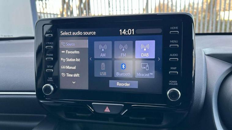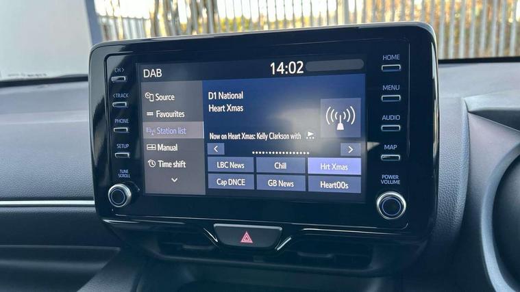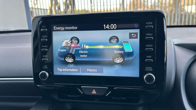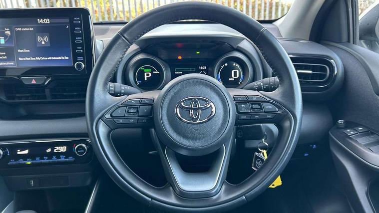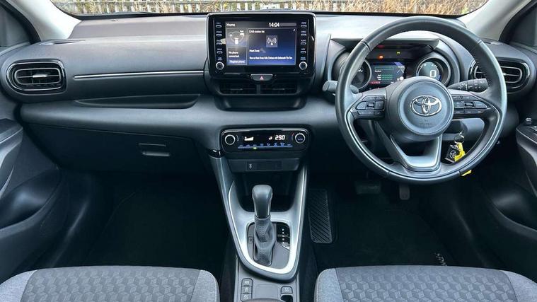7" Digital Combimeter, Adaptive cruise control, Adjustable speed limit with speed warning, Bluetooth connectivity, Colour binocular inspired displays with digital speedometer, E-call, Electric power steering, Hybrid energy display, Multi information display switches on steering wheel, Reversing camera, Smartphone integration with Apple CarPlay and Android auto, Tailgate, Voice recognition, Vehicle Stability Control (VSC), 4 speakers, 9" Multimedia touch display, Toyota Touch 3 system with DAB radio, USB connection, Acoustic windscreen glass, Auto windscreen wipers, Automatic headlights, Body coloured door mirrors, Electric adjustable heated door mirrors, Follow me home headlights, Front auto power windows with anti jam protection, Full LED rear lights, LED daytime running lights, LED front fog lights, LED front light guide, LED Headlights, LED High mounted stop lamp, LED Indicators, LED rear light guide, Manual headlight levelling, Painted chequered front grille, Rain sensor, Rear auto power windows with anti jam protection, Rear privacy glass, Rear side wing doors, Rear spoiler, Rear wiper, Shark fin antenna, Turning signal integrated indicators in door mirrors, Variable front intermittent wipers, 3 adjustable rear headrests, 3 seat bench in 2nd row, 3 spoke leather steering wheel, 60/40 split folding rear seat, Active headrests, Adjustable boot height, Auto air conditioning, Coat hooks in rear grab handles, Cup holders (2 front & door), Data Communication Module (DCM) connected services, Fabric upholstery, Front armrest, Glovebox, Grey roof lining, Height adjustable driver's seat, Isofix seat fixing, Leather gearshift, Pollen filter, Shopping bag hooks, Single front passenger seat, Tilt/telescopic steering column, 3 point seatbelts on all rear seats, ABS+EBD+Brake assist, Electronic parking brake, Emergency brake light system (EBS), Front passenger airbag on/off switch, Front seatbelt reminder, Hill start assist control (HAC), Rear child proof door locks, Rear seat belt reminder, Supplemental Restraint System (SRS) 8 airbags: Driver & passenger's airbags, dual side curtain airbags, side impact airbags, front centre airbag, Toyota Safety Sense 3 with over the air updates, Tyre pressure warning system, 2x Master key, Alarm/immobiliser, Remote powered central double locking doors, Soft touch instrument panel, Space saver spare wheel,