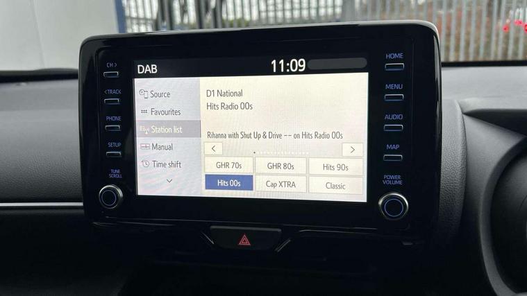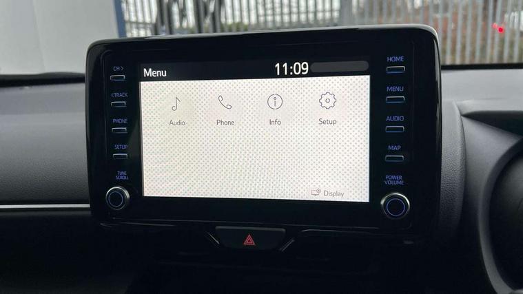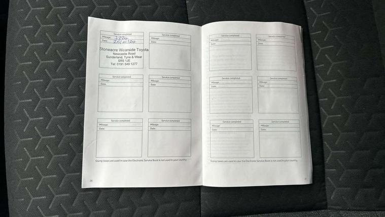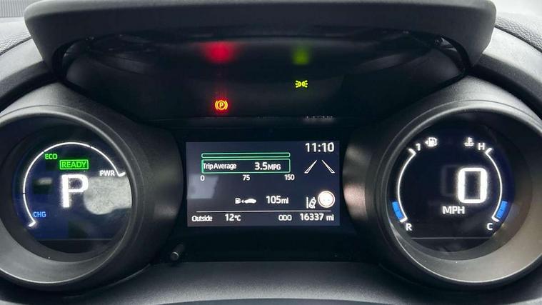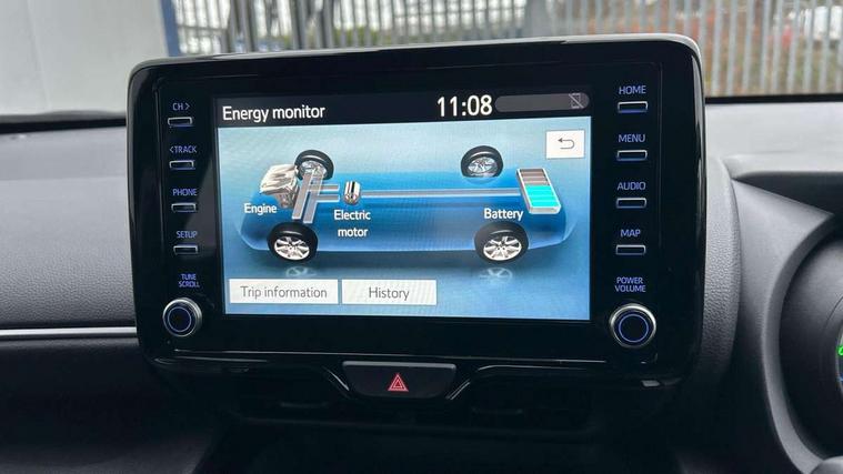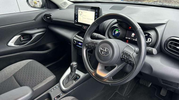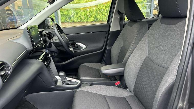4.2" multi information display, 8" Toyota touch 2 multimedia system with Smartphone integration with Apple CarPlay and Android auto, Adjustable speed limiter, Bluetooth connectivity, Digital speedometer, Driver attention alert system, eCall emergency system, Electric power steering, Full range intelligent adaptive cruise control, Hybrid system indicator, Key reminder warning, Lane trace assist, Multimedia, audio, telephone and voice recognition switches on steering wheel, My T Connected services, Pre-collision system enhanced with emergency steering assist, Reversing camera, Road sign assist - RSA, Steering assisted vehicle stability control, 6 speakers, DAB Digital radio, USB connection, 3rd brake light, Acoustic windscreen glass, Anti-jam protection on power windows, Auto high beam [AHB] with on/off switch, Automatic headlights, Black lower front grille, Black Shark-fin antenna, Black upper front grille, Black wheel arch mouldings, Body colour door handles, Body colour front bumper, Body colour rear bumper, Electric adjustable heated door mirrors, Follow me home headlights, Front and rear electric windows with auto up/down function, Front intermittent wipers, Halogen projector headlights, Headlight cut off reminder, Indicators integrated on door mirrors, Intermittent rear wiper, LED daytime running lights, LED Indicators, Manual headlight levelling, Manually retractable door mirrors, Noise reduction layer on windscreen, Rain sensor, Rear side wing doors, Rear spoiler, Rear window defogger, 12v power outlet - front, 2x Rear coat hooks, 3 seat bench in 2nd row, 3 spoke leather steering wheel, 60/40 split folding rear seat, Adjustable speed limiter switch on steering wheel, Auto air conditioning, Boot light, Central armrest, Driver and front passenger personal lights, Fabric door trim, Fabric upholstery, Front console box, Front cup holders, Front head restraints, Glovebox, Grey roof lining, Height adjustable driver's seat, Height adjustable front passenger seat, ISOFIX child restraint system, Lane departure alert switch on steering control, Leather gearshift, Manual telescopic and tilting steering wheel, Mirror on driver and passenger sun visor, Pollen air filter, Rear head restraints, Single front passenger seat, Soft tonneau cover, 3x3 point rear seat belts, ABS+EBD+Brake assist, Driver and passenger central airbags, Driver and passenger front airbags, Driver and passenger side airbags, Electronic parking brake, Emergency brake light system (EBS), Front seat belt reminder, Hill start assist control (HAC), Passenger airbag on/off switch, Pre-collision system with pedestrian and cyclist detection, Rear door child safety locks, Rear passenger side airbags, Rear seat belt reminder, Traction control, Tyre pressure warning system, Immobiliser, Intrusion alarm, Keyless smart entry with push button start, Power door locks, Power passenger window lock, Remote door lock, 16" 10 spoke alloy wheels, Tyre repair kit,