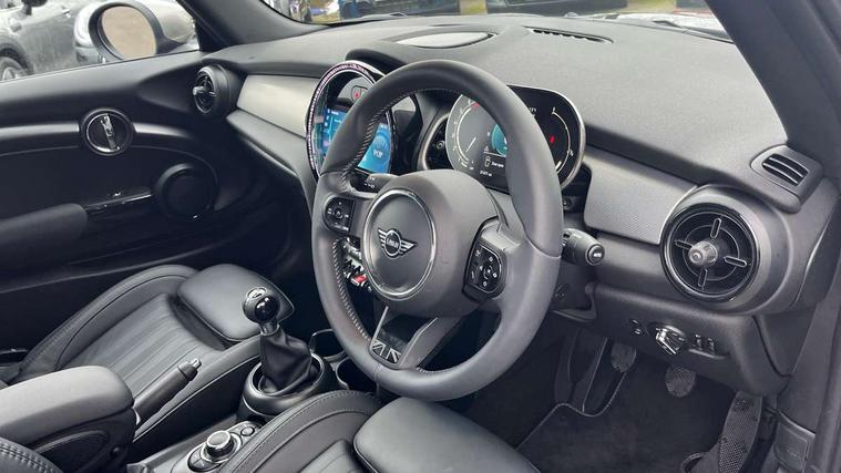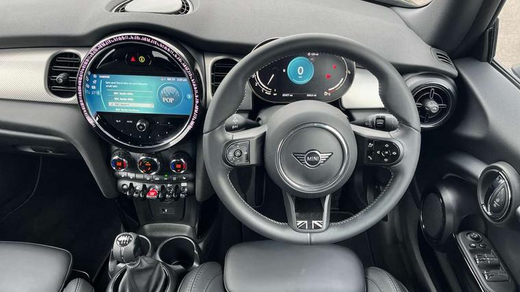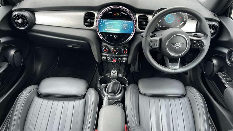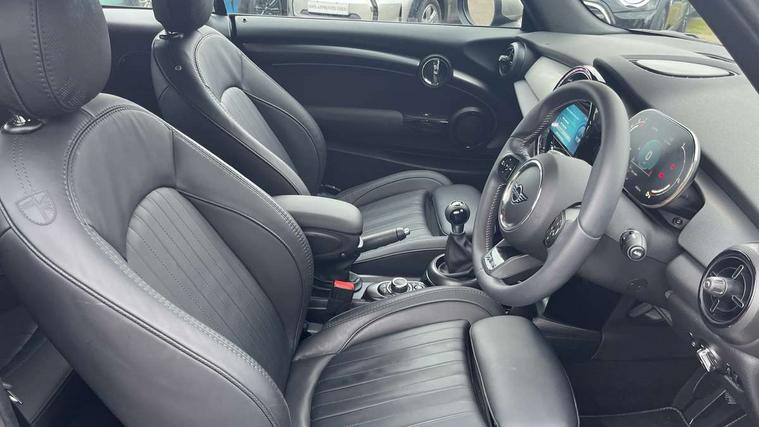 Automatic start/stop function with brake energy recuperation, Compatible mobile phone bluetooth with audio streaming, Electro-mechanical speed dependant steering assistance, Gear change indicator, Instrument cluster, MINI Driving Modes - centre toggle switch to control driving setting (sport, mid and green), Mini E-call, MINI TeleServices, On board computer, Rear park distance control, Service interval indicator, Double Vanos system, Fully variable valve control, High precision injection, Performance Control, FM tuner and DAB digital radio, Automatic headlight activation switch, Bonnet scoop, Chrome plated fuel cap, Dynamic brake lights, Electric windows, Fully electric black softtop with integrated sunroof functionality, Heated rear window, Heated windscreen washer jets, Metal door sill strips with Cooper S imprint, Model logo Cooper S on right of tailgate, Radiator grille bars, tailgate handle, lower front grille grating, rear central fog light in chrome, Rain sensor window wipers, Rear fog lights, Rear LED lights with union jack design, Side scuttle panel with integrated indicator, Sun/heat protection glass, Two central exhaust tailpipes with chrome finisher, White indicator lenses, 12V Accessory socket in centre console, 4 lashing eyes in luggage compartment, 50/50 split folding rear seats, Air vents, gear lever base, speakers in doors, door handles in chrome, Chrome interior highlights, Cupholders, Easy Load boot handles, Front and rear head restraints, Front and rear isofix with front passenger airbag deactivation, Front seatback storage pockets, Glove compartment, Height and length steering column adjustment, Interior lighting with 12 basic colours selectable via toggle switch in roof, Leather gearshift lever and handbrake gaiters, LED reading lights, vanity mirror lights, front foot well light and spotlight on front seats, Mechanical seat adjustment, driver seat height adjust, forward/back and front seats backrest, Mini logo projection on floor from drivers exterior mirror, MINI Yours fine walk nappa leather steering wheel with contrast stitching in silver and MINI Yours badge, Multifunction steering wheel, Storage compartments in doors, Sunvisors with vanity mirrors, Convertible pack with comfort access - Mini Convertible, 3 point seatbelts on all four seats, 6 Airbags - front, side and seat belt tensioners, Active rollover protection, Anti-lock braking system (ABS), DSC - Dynamic Stability Control, Front and rear disc brakes, Hill start assist, Two tone horn, Tyre pressure monitoring system, Alarm system with tilt sensor, monitoring doors, bonnet interior and tailgate, Electronic vehicle immobiliser, Keyless Go, Chrome line interior, Tool kit,