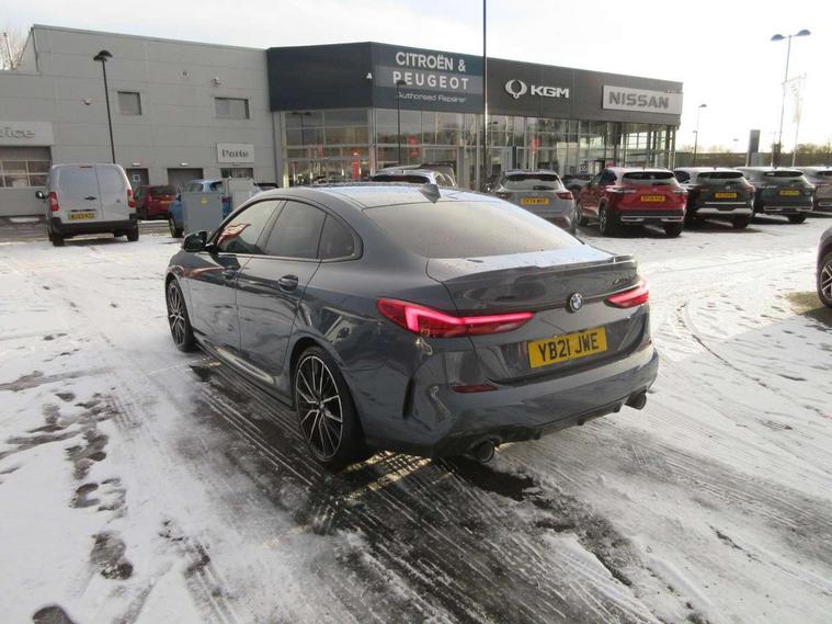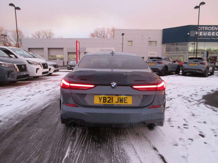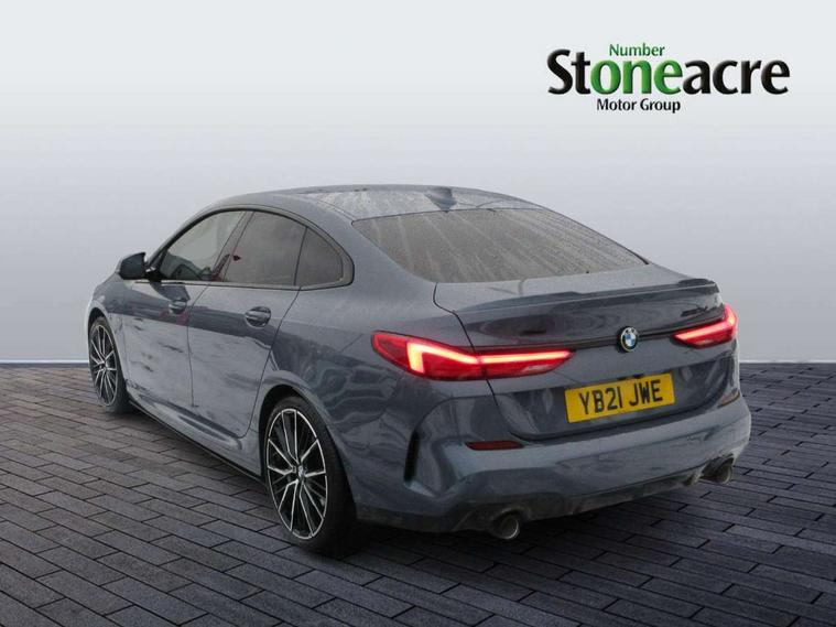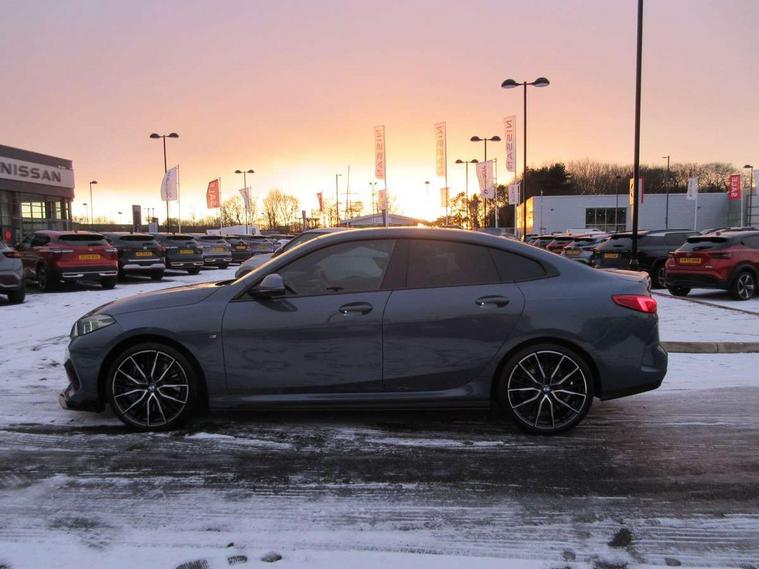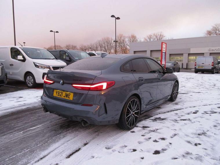 Active guard plus, Attentiveness assist, Auto start-stop, BMW Intelligent Personal Assistant, BMW Live Cockpit Professional with 10.25" high resolution instrument and control display, BMW Online services, BMW operating system with 7.0 mid interface, BMW Teleservices, Check Control warning system for monitoring of lights and door/luggage compartment open warning, iDrive controller with touch function and 7 short cut favourite buttons on centre console, Integrated navigation data with map data via USB +features such as 3D landmarks and micro city models, Integrated owners handbook, Intelligent voice assistant, M Sports steering, On board computer - average speed+fuel consumption, service interval, clock/date, odometer/trip meter, outside temperature display and ice warning, Optimum shift indicator, Personal Profile, Pull away assistant, Speed limiting function, 8 speed sport automatic transmission with electronic selector lever, auto P function, coasting idle, race track, sport, gearchange display manual mode, Aluminium lightweight construction, Balancer shaft, Common rail direct injection, Diesel particulate filter, DOHC valvetrain with two upper camshafts, Drive performance control with ECO PRO comfort + sport mode, Electronic differential lock, Incorrect fuelling protection, Larger fuel tank capacity (50 litres), Launch control, M Sport suspension with stiffer spring/damper set-up and vehicle lowered by 10mm + twin tube gasfilled shock absorbers and Anti roll bars, Performance Control, TwinPower turbocharger with variable vane turbine geometry, 2x USB Type C ports (for charging and data transfer), 4G LTE Connectivity with hard wied 4G network sim card, DAB digital radio, MP3 players and RDS double tuner, Automatically dimming rear view mirror, Body colour door handles, Body colour mirror caps, Chrome 'M' logo side designation, Chrome exhaust single tailpipe, round, Direction indicator side lights integrated exterior mirrors, Electric windows - front and rear, with open/close fingertip control and trap release, Exterior mirrors - electrically folding with anti-dazzle, Fading support, Follow me home headlights, Front and rear bumper system with replaceable deformation elements, Front door sill finishers in black plastic with M designation in metallic look, Heated, electrically adjustable exterior mirror aspheric on driver side, convex on passenger side, High gloss black B pillar finish, High gloss shadow line exterior trim, High level third brake light, LED daytime running lights, LED front fog lights, Lightweight engineering, Model designation on right side of tailgate, Preparation for high beam assistant, Rain sensor with automatic headlight activation, Rear fog lights, Reversing light in rear light cluster, Welcome lighting, 12V power socket in centre console, 2 cupholders in front centre console, 3 rear seat head restraints, 3 spoke M sports design leather steering wheel finished in nappa leather with specific M badge, Anthracite finished floor mats with contrasting surround, Anthracite headlining, Automatic two zone climate control air conditioning, Child seat ISOFIX attachment for two outer rear seats and front passenger seat with anchorage points, Conditioned based service, Dakota leather upholstery with perforation and contrast stitching, Driver and front passenger seat heating, Front and rear door pockets including bottle trays, Front and rear side armrests integrated into door trim, Front Armrest foldable with integrated storage compartment, Front centre interior light over interior mirror and rear centre automatic interior light when door is opened/ignition switched off or via remote key, Front head restraints, Front sports seats with electric side bolster adjustment, Glove compartment, Glovebox with light, Luggage compartment lighting, Manually adjustment steering wheel column, Multi-function controls for steering wheel, Shift-by-wire selector shift, Steering wheel paddles, Sun visors with vanity mirrors and insert tab, Through loading system with 40/20/40 split folding rear seat, Two lashing eyes, Additional interior lighting pack - 2 Series Gran Coupe, Connected pack professional - 2 Series Gran Coupe, Extended storage pack - 2 Series Gran Coupe, M Sport exterior styling aerodynamics pack - 2 Series Gran Coupe, 2 tone horn, Airbag - Front driver and passenger, front and rear head, front side, curtain head protection, manual deactivation of front passenger airbag possible, Anti lock braking system (ABS) with cornering brake control, BMW emergency call, Brake drying, Braking readiness, Crash sensor activating of airbags, Unlocking doors, hazard warning lights, fuel cut off, interior lighting+activation of safety battery terminal clamp, Dynamic stability control + (DSC+), Dynamic Traction Control - DTC, Electrically operated hand brake, Rear brake discs, Rear child proof door locks, Seat belt security check for driver and front passenger, Seatbelt warning, Side impact protection, Three point seat belts on all seats including front belt stopper, pyrotechnic belt tensioners and belt force limiters, Trailer stability control, Tyre pressure monitoring system, Ventilated front disc brakes, Warning triangle and first aid kit, Central locking switch for all doors, fuel filler cap and luggage compartment, Deadlocking function system to all doors, Drive away locking system on all doors and luggage compartment, Locking wheel bolts, Start/Stop button (illuminated) in centre console with keyless engine start and Auto Start-Stop deactivation button, Thatcham Cat.1 alarm and immobiliser, Two remote control key with integrated key - open/close doors/fuel flap/tailgate +1 button for unlock compartment with M design high gloss black inlay, Contrast stitching on instrument panel, 18" Burnished M double spoke bi-colour alloy wheels finished in orbit grey - style 819M, Reduced rolling resistance tyres,