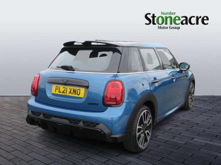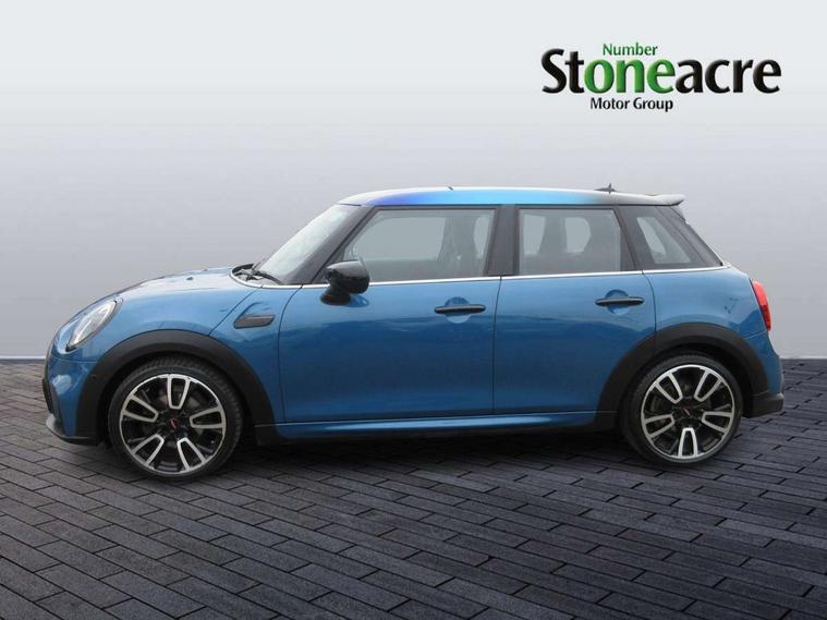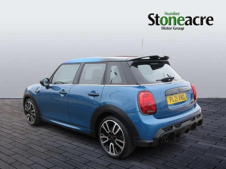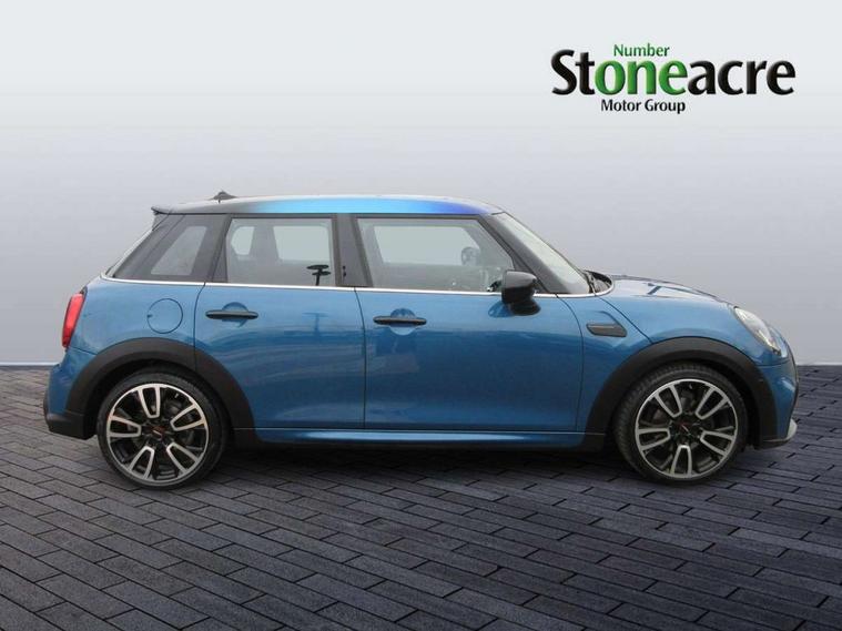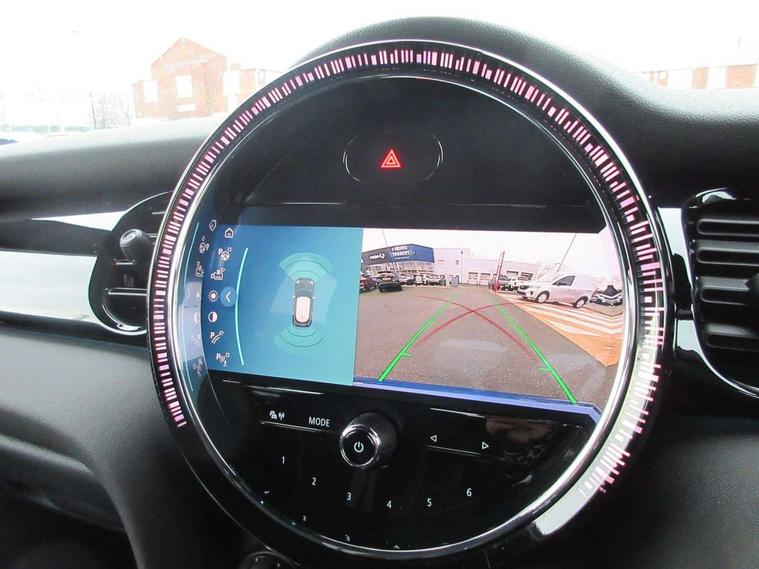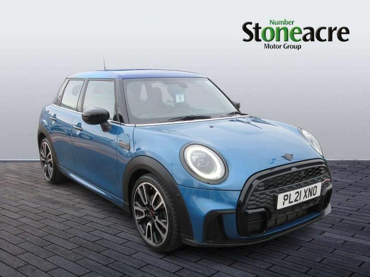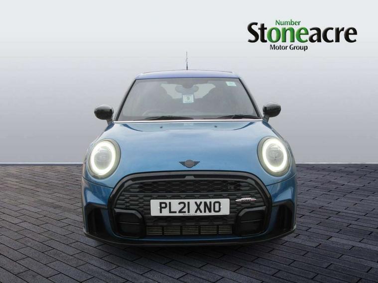 Automatic start/stop function with brake energy recuperation, Compatible mobile phone bluetooth with audio streaming, Cruise control with brake assist, Electro-mechanical speed dependant steering assistance, Flexible car sharing preparation, Instrument cluster, MINI Driving Modes - centre toggle switch to control driving setting (sport, mid and green), Mini E-call, MINI TeleServices, On board computer, Rear park distance control, Service interval indicator, Adaptive suspension, Double Vanos system, Fully variable valve control, Gear change indicator display, High precision injection, Performance Control, Steptronic transmission with double clutch, 6 speakers in front door trims and underneath front seats, 8.8" touchscreen with LED ring, FM tuner and DAB digital radio, Automatic headlight activation switch, Body colour fuel filler cap, Chrome border high gloss black slats radiator grille, Dynamic brake lights, Electric front+rear windows, Exhaust tailpipe on left with chrome finisher, Heated rear window, Heated windscreen washer jets, JCW Aerodynamic kit - Front and rear bumpers with sporty JCW styling and part-painted side sills with MINI John Cooper Works door sill finishers, John Cooper Works rear spoiler, LED headlight with closed ring and daytime driving lights, Metal door sill strips with MINI imprint, Model logo Cooper on right of tailgate, Rain sensor window wipers, Rear fog lights, Rear LED lights with union jack design, Rear window wiper, Side scuttle panel with integrated indicator, Sun/heat protection glass, White indicator lenses, 12V Accessory socket in centre console, 4 lashing eyes in luggage compartment, 60/40 split folding rear seat, Anthracite headliner including grab handles and clothes hooks, Carbon black colour line - Knee roll and door armrest, Chrome interior highlights, Cupholders, Front and rear isofix with front passenger airbag deactivation, Glove compartment, Height and length steering column adjustment, Interior lighting with 12 different colours across the dashboard, underneath door bezel with illuminated laser-engraved design on central display, JCW Sport seats with integrated headrests, adjustable thigh support and John Cooper Works logo, Leatherette gearshift lever and handbrake gaiters, LED reading lights, vanity mirror lights, front foot well light and spotlight on front seats, Manual air conditioning, Mechanical seat adjustment - forward/back & backrest for front seats and driver seat height adjust, Multifunction steering wheel, Storage compartments in doors, Sunvisors with vanity mirrors, Velour floor mats, Walknappa leather steering wheel with grey seam and John Cooper Works badge on Piano Black lower steering wheel spoke, Piano black exterior pack - Mini Hatchback Cooper, 3 point seatbelts on all five seats, 6 Airbags - front, side, head and seat belt tensioners, Anti-lock braking system (ABS), DSC - Dynamic Stability Control, Front and rear disc brakes, Hill start assist, Single tone fanfare horn, Tyre pressure monitoring system, Alarm system with tilt sensor, monitoring doors, bonnet interior and tailgate, Electronic vehicle immobiliser, Start/stop toggle with keyless go, Piano black interior trim, Tool kit,