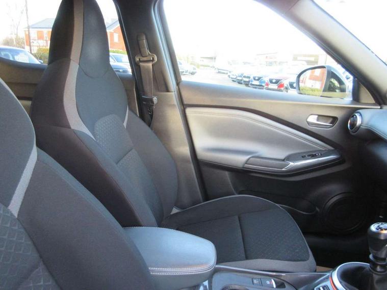 7" full colour TFT screen combimeter, 8" infotainment colour display with touch screen, Apple CarPlay and Google Android auto, Drive modes select (Eco, normal and sport), Emergency and breakdown call, Front parking sensor, Idle start/stop system, Intelligent lane intervention, Lane departure warning system, Nissan connect nav with TomTom traffic, Nissan connect services and Wifi connection, Outside temperature sensor, Power Steering, Rear parking sensor, Traffic sign recognition, Trip computer, Gasoline particulate filter, 6 speakers, Bluetooth system, USB, Aux-in and 12V socket, DAB Digital radio, Rear console USB port, Auto dimming interior rear view mirror, Automatic hazard signal with emergency stop signal, Body colour bumpers, Body colour door handles, Electrically adjustable door mirrors with integrated indicators, Follow me home headlights, Front and rear electric window with one touch driver and passenger window, Heated and auto folding door mirrors, High beam assist, LED daytime running lights, LED front fog lights, LED headlamps, LED rear fog lamp, LED rear lamps, Rain sensor windscreen wipers, Rear privacy glass, Rear spoiler, Rear wiper, Three blink turn signal, 3 height adjustable rear headrests, 60/40 split folding rear seat, Automatic climate control, Card holder on driver sunvisor, Cloth upholstery, Door ambient lighting, Driver and passenger sliding and reclining seats, Driver seat back pocket, Driver side rear coat hanger, Driver/passenger sunvisors and illuminated vanity mirrors, Front and rear cabin lights, Front armrest, Front door pockets with bottle holders, Front head restraints, Front/rear passenger grab handles, Gear console ambient circle lighting, Grey synthetic leather kneepad, Height adjustable driver's seat, Internal chrome door handles, Leather gearshift knob, Leather steering wheel, Luggage board, Luggage space lighting, Monoform sporty seats, Multifunction steering wheel, Passenger seat back pocket, Rear door bottle holders, Telescopic steering wheel adjustment, Two cupholders in front centre console, Two rear isofix child seat anchorage points with top tether, Voice recognition switch on steering wheel, Welcome light and console tray ambient lighting, ABS with EBD and brake assist, Active ride control, Active Trace Control, Driver and passenger airbags, Driver and passenger side airbags, Electric handbrake with auto hold function, Electronic Stability Programme (ESP), Front and rear curtain airbags, Height adjustable seatbelts, Hill start assist, Intelligent emergency braking with pedestrian and cyclist recognition, Seatbelt reminder for driver/front passenger and rear seats, Single tone horn, Three 3 point rear seatbelts, Traction control, Tyre pressure monitoring system, VDC Dynamic Vehicle Control, Ventilated rear brake discs, Alarm, Immobiliser, Intelligent Key with push button starter, Remote central locking,