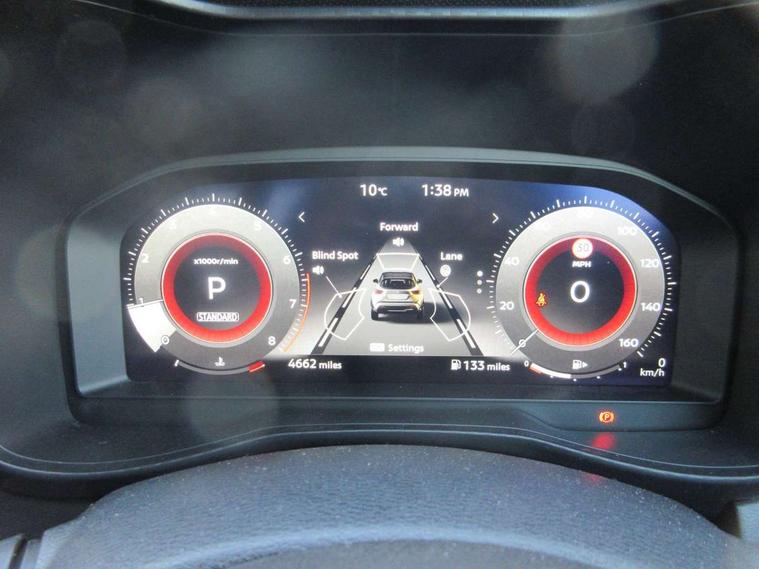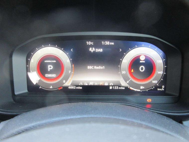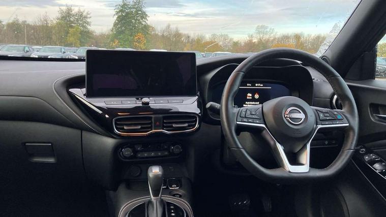12.3" full colour TFT screen combimeter, Drive modes select (Eco, normal and sport), Emergency and breakdown call, Front parking sensor, Idle start/stop system, Intelligent driver alert system, Intelligent lane intervention, Lane departure warning system, Nissan connect 12.3" touch screen entertainment system, Nissan connect nav with TomTom traffic, Nissan connect services, Outside temperature sensor, Power Steering, Rear parking sensor, Stop/start button, Traffic sign recognition, Trip computer, Voice recognition, WiFi connectivity, Wireless Apple CarPlay and Google Android auto, Wireless Smartphone charger, 10 Bose speakers 6 speakers and 2 headrest speakers for driver/passenger seats, 2 X Rear console USB port, Bluetooth system, USB, Aux-in and 12V socket, Bose personal sound stage control, DAB Digital radio, Auto dimming frameless rear view mirror, Automatic hazard signal with emergency stop signal, Body colour door handles, Electrically adjustable door mirrors with integrated indicators, Follow me home headlights, Front and rear electric window with one touch driver window, Heated and auto folding door mirrors, High beam assist, LED 3rd brake light, LED daytime running lights, LED front fog lights, LED headlamps, LED rear fog lamp, LED rear lamps, One touch passenger window, Rain sensor windscreen wipers, Rear privacy glass, Rear side wing doors, Rear wiper, Roof spoiler, Shark fin roof antenna in solid Black, Three blink turn signal, 3 height adjustable rear headrests, 3 seat bench in 2nd row, 60/40 split folding rear seat, Automatic climate control, Card holder on driver sunvisor, Door ambient lighting, Driver seat back pocket, Driver side rear coat hanger, Driver/passenger sunvisors and vanity mirrors, Front and rear cabin lights, Front armrest, Front door pockets with bottle holders, Front head restraints, Front/rear passenger grab handles, Gear console ambient circle lighting, Height adjustable driver's seat, Internal chrome door handles, Leather gearshift knob, Luggage board, Luggage space lighting, Monoform sporty seats, Multifunction steering wheel, Passenger seat back pocket, Rear door bottle holders, Single front passenger seat, Smooth synthetic leather steering wheel, Steering wheel mounted gearshift paddles, Synthetic leather kneepad, Synthetic leather upholstery, Telescopic steering wheel adjustment, Two cupholders in front centre console, Two rear isofix child seat anchorage points with top tether, Welcome light and console tray ambient lighting, Heat pack with height adjustable passenger seats - Juke, ProPilot pack - Juke Auto, ABS with EBD and brake assist, Active ride control, Active Trace Control, Driver and passenger airbags, Driver and passenger side airbags, Electric handbrake with auto hold function, Electronic Stability Programme (ESP), Front and rear curtain airbags, Height adjustable seatbelts, Hill start assist, Intelligent emergency braking with pedestrian and cyclist recognition, Rear door child safety locks, Seatbelt reminder for driver/front passenger and rear seats, Three 3 point rear seatbelts, Traction control, Tyre pressure monitoring system, VDC Dynamic Vehicle Control, Alarm, Immobiliser, Intelligent key and start push button with walk away lock and approach unlock functions, Remote central locking, 19" Alloy wheels, Tyre puncture repair kit,