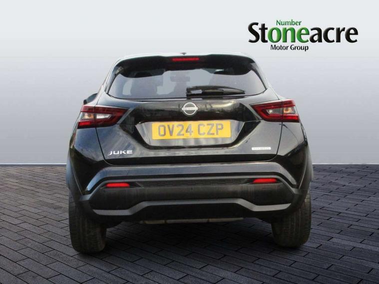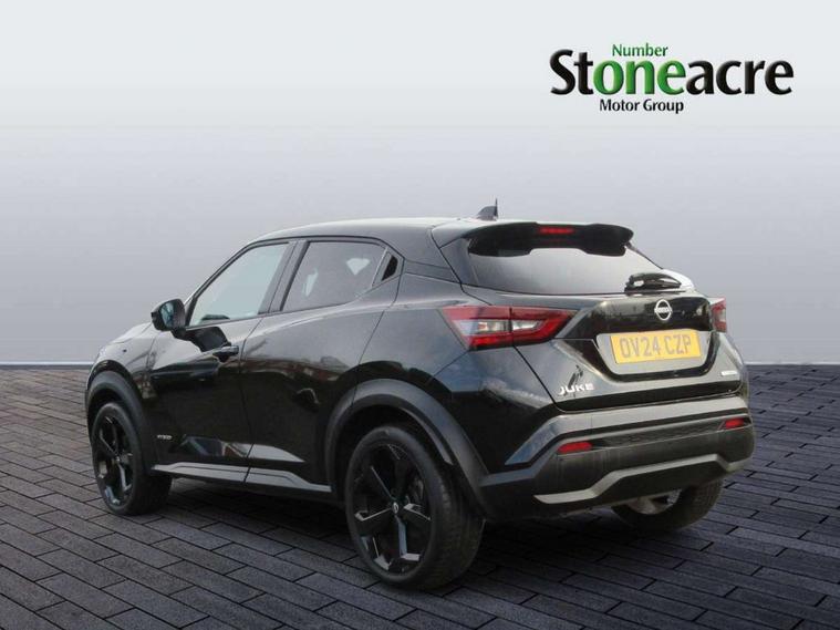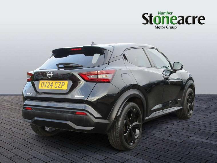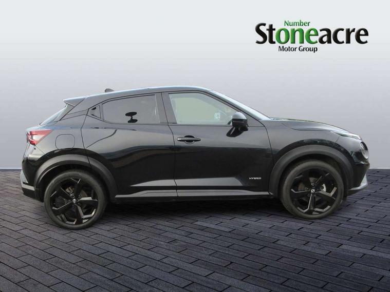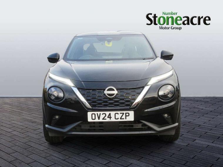 12.3" full colour TFT screen combimeter, Drive modes select (Eco, normal and sport), e-Pedal step, Emergency and breakdown call, EV mode selector, Front parking sensor, Intelligent driver alert system, Intelligent lane intervention, Lane departure warning system, Nissan connect 12.3" touch screen entertainment system, Nissan connect nav with TomTom traffic, Nissan connect services and Wifi connection, Outside temperature sensor, Power Steering, Rear parking sensor, Stop/start button, Traffic sign recognition, Trip computer, Voice recognition, Wireless Apple CarPlay and Google Android auto, Wireless Smartphone charger, 10 Bose speakers 6 speakers and 2 headrest speakers for driver/passenger seats, 2 X Rear console USB port, Bluetooth system, USB, Aux-in and 12V socket, Bose personal sound stage control, DAB Digital radio, Auto dimming frameless rear view mirror, Automatic hazard signal with emergency stop signal, Body colour door handles, Electrically adjustable door mirrors with integrated indicators, Follow me home headlights, Front and rear electric window with one touch driver window, Heated and auto folding door mirrors, High beam assist, LED 3rd brake light, LED daytime running lights, LED front fog lights, LED headlamps, LED rear fog lamp, LED rear lamps, One touch passenger window, Rain sensor windscreen wipers, Rear privacy glass, Rear side wing doors, Rear wiper, Roof spoiler, Shark fin roof antenna in solid Black, Three blink turn signal, 3 height adjustable rear headrests, 3 seat bench in 2nd row, 60/40 split folding rear seat, Automatic climate control, Card holder on driver sunvisor, Door ambient lighting, Driver seat back pocket, Driver side rear coat hanger, Driver/passenger sunvisors and vanity mirrors, Front and rear cabin lights, Front armrest, Front door pockets with bottle holders, Front head restraints, Front/rear passenger grab handles, Gear console ambient circle lighting, Height adjustable driver's seat, Internal chrome door handles, Leather gearshift knob, Leather steering wheel, Luggage space lighting, Monoform sporty seats, Multifunction steering wheel, Passenger seat back pocket, Rear door bottle holders, Single front passenger seat, Synthetic leather kneepad, Synthetic leather upholstery, Telescopic steering wheel adjustment, Two cupholders in front centre console, Two rear isofix child seat anchorage points with top tether, Welcome light and console tray ambient lighting, Heat pack with height adjustable passenger seats - Juke, ProPilot pack - Juke Auto, ABS with EBD and brake assist, Active ride control, Active Trace Control, Driver and passenger airbags, Driver and passenger side airbags, Electric handbrake with auto hold function, Electronic Stability Programme (ESP), Front and rear curtain airbags, Height adjustable seatbelts, Hill start assist, Intelligent emergency braking with pedestrian and cyclist recognition, Rear door child safety locks, Seatbelt reminder for driver/front passenger and rear seats, Three 3 point rear seatbelts, Traction control, Tyre pressure monitoring system, VDC Dynamic Vehicle Control, Alarm, Immobiliser, Intelligent key and start push button with walk away lock and approach unlock functions, Remote central locking, 19" Alloy wheels,