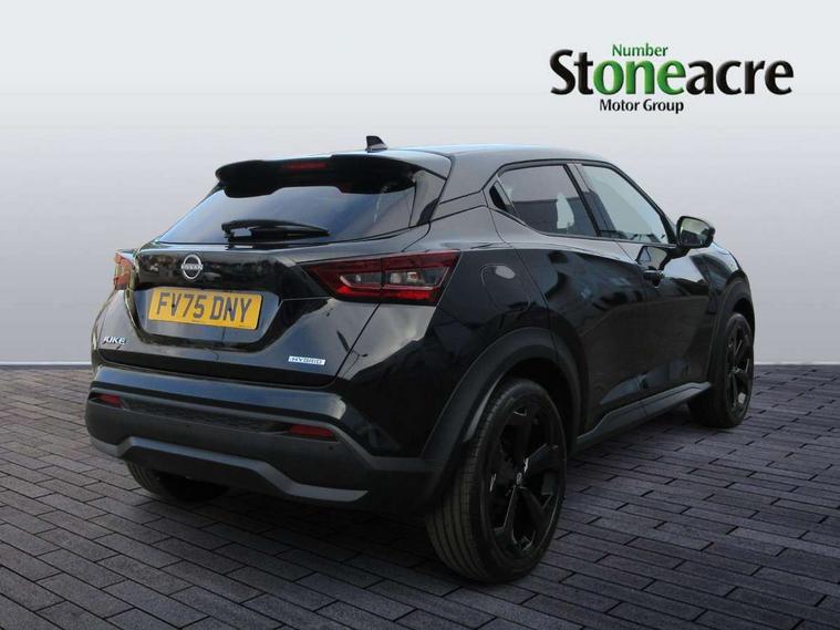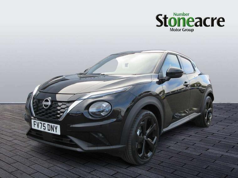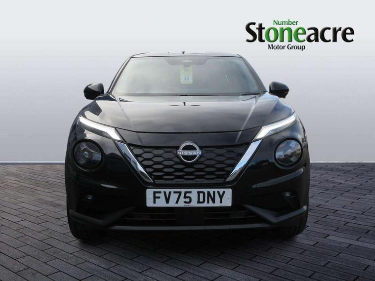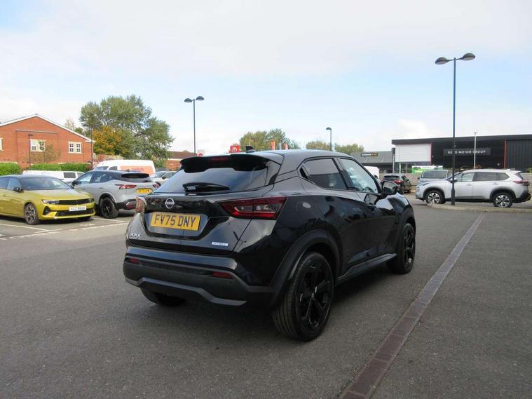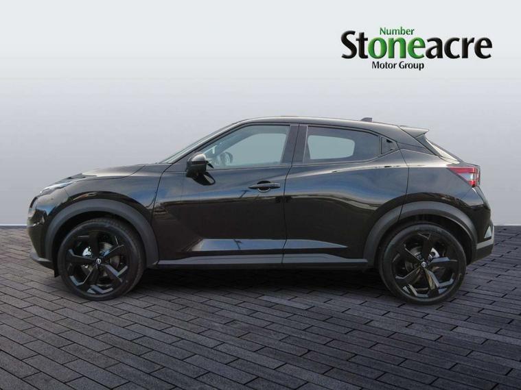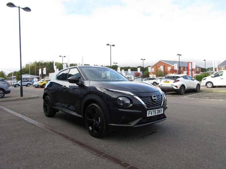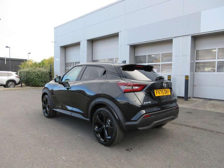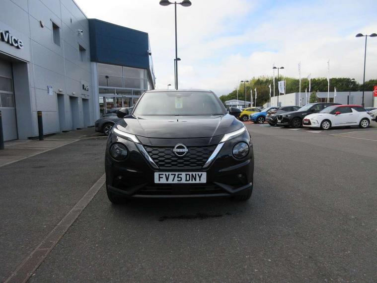 12.3" full colour TFT screen combimeter, Drive modes select (Eco, normal and sport), e-Pedal step, Emergency and breakdown call, EV mode switch, Front parking sensor, Intelligent driver alert system, Intelligent lane intervention, Lane departure warning system, Nissan connect 12.3" touch screen entertainment system, Nissan connect nav with TomTom traffic, Nissan connect services, Outside temperature sensor, Power Steering, Rear parking sensor, Stop/start button, Traffic sign recognition, Trip computer, Voice recognition, WiFi connectivity, Wireless Apple CarPlay and Google Android auto, Wireless Smartphone charger, 10 Bose speakers 8 speakers and 2 headrest speakers for driver/passenger seats, 2 X Rear console USB port, Bluetooth system, USB, Aux-in and 12V socket, Bose personal plus audio system, DAB Digital radio, Auto dimming frameless rear view mirror, Automatic hazard signal with emergency stop signal, Body colour door handles, Electrically adjustable door mirrors with integrated indicators, Follow me home headlights, Front and rear electric window with one touch driver window, High beam assist, LED 3rd brake light, LED daytime running lights, LED front fog lights, LED headlamps, LED rear fog lamp, LED rear lamps, One touch passenger window, Rear privacy glass, Rear side wing doors, Rear wiper, Roof spoiler, Shark fin roof antenna in solid Black, Solid black door mirrors, Three blink turn signal, 3 height adjustable rear headrests, 3 seat bench in 2nd row, 60/40 split folding rear seat, Card holder on driver sunvisor, Door ambient lighting, Driver seat back pocket, Driver side rear coat hanger, Driver/passenger sunvisors and vanity mirrors, Front and rear cabin lights, Front armrest, Front door pockets with bottle holders, Front head restraints, Front/rear passenger grab handles, Gear console ambient circle lighting, Height adjustable driver's seat, Internal chrome door handles, Luggage board, Luggage space lighting, Monoform sporty seats, Multifunction steering wheel, Passenger seat back pocket, Rear door bottle holders, Single front passenger seat, Smooth synthetic leather steering wheel, Synthetic leather kneepad, Synthetic leather shift knob, Synthetic leather upholstery, Telescopic steering wheel adjustment, Two cupholders in front centre console, Two rear isofix child seat anchorage points with top tether, Welcome light and console tray ambient lighting, Comfort pack - Juke, Heat pack with height adjustable passenger seats - Juke, ProPilot pack - Juke Auto, ABS with EBD and brake assist, Active ride control, Active Trace Control, Driver and passenger airbags, Driver and passenger side airbags, Electric handbrake with auto hold function, Electronic Stability Programme (ESP), Front and rear curtain airbags, Height adjustable seatbelts, Hill start assist, Intelligent emergency braking with pedestrian and cyclist recognition, Rear door child safety locks, Seatbelt reminder for driver/front passenger and rear seats, Three 3 point rear seatbelts, Traction control, Tyre pressure monitoring system, VDC Dynamic Vehicle Control, Alarm, Immobiliser, Intelligent key and start push button with walk away lock and approach unlock functions, Remote central locking, 19" Alloy wheels, Tyre puncture repair kit,