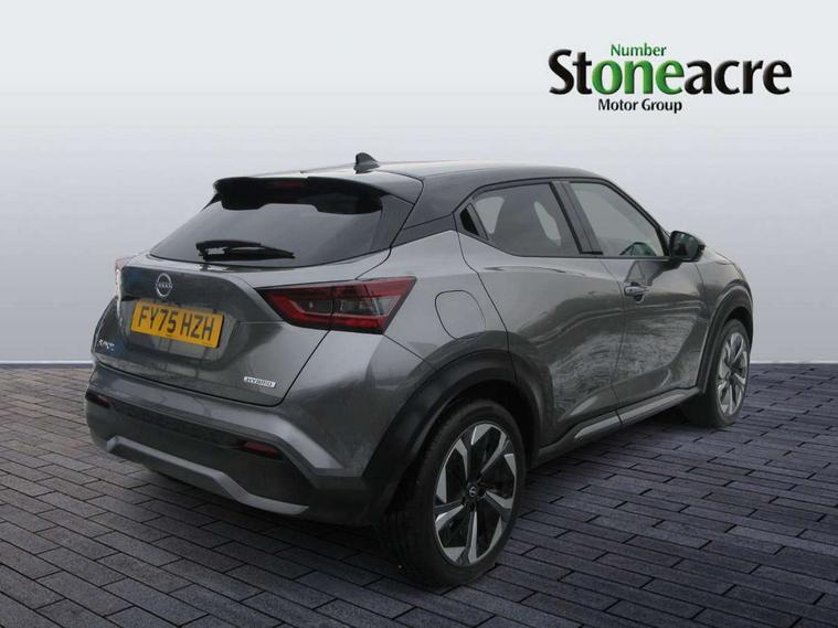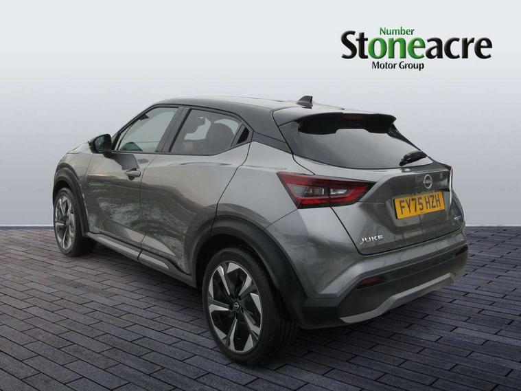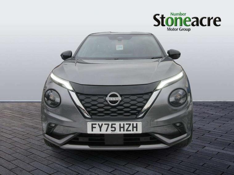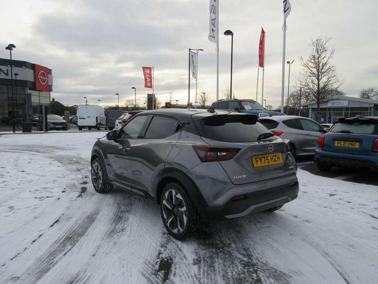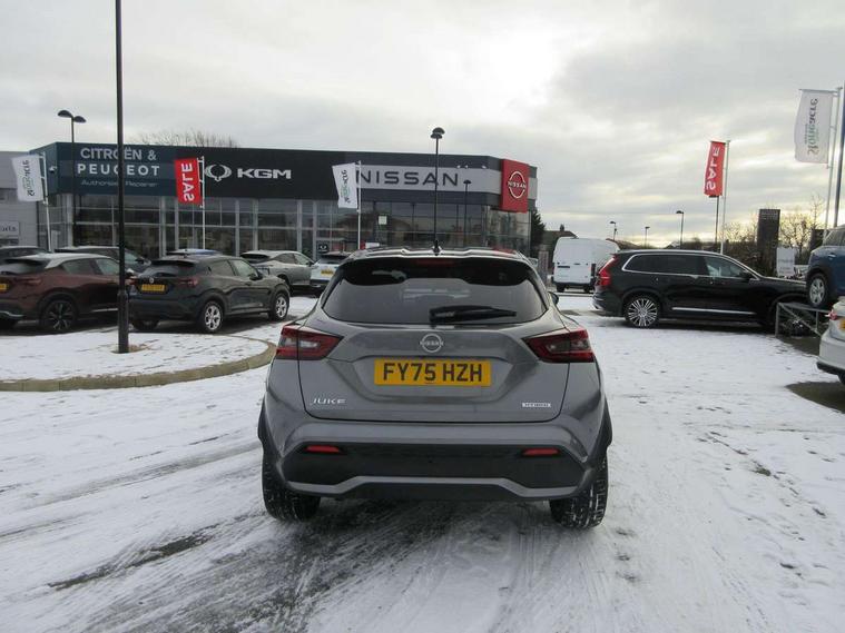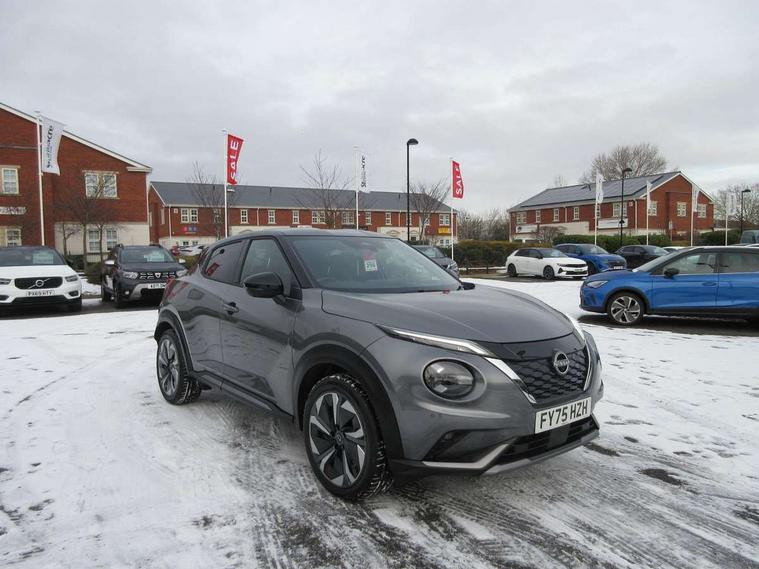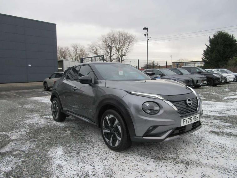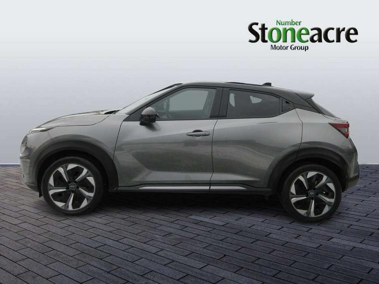 12.3" full colour TFT screen combimeter, Drive modes select (Eco, normal and sport), e-Pedal step, Emergency and breakdown call, EV mode switch, Front parking sensor, Intelligent driver alert system, Intelligent lane intervention, Lane departure warning system, Nissan connect 12.3" touch screen entertainment system, Nissan connect nav with TomTom traffic, Nissan connect services, Outside temperature sensor, Power Steering, Rear parking sensor, Stop/start button, Traffic sign recognition, Trip computer, Voice recognition, WiFi connectivity, Wireless Apple CarPlay and Google Android auto, Wireless Smartphone charger, 10 Bose speakers 8 speakers and 2 headrest speakers for driver/passenger seats, 2 X Rear console USB port, Bluetooth system, USB, Aux-in and 12V socket, Bose personal plus audio system, DAB Digital radio, Auto dimming frameless rear view mirror, Automatic hazard signal with emergency stop signal, Body colour door handles, Electrically adjustable door mirrors with integrated indicators, Follow me home headlights, Front and rear electric window with one touch driver window, High beam assist, LED 3rd brake light, LED daytime running lights, LED front fog lights, LED headlamps, LED rear fog lamp, LED rear lamps, One touch passenger window, Rear privacy glass, Rear side wing doors, Rear wiper, Roof spoiler, Shark fin roof antenna in solid Black, Solid black door mirrors, Solid black front bumper/rear bumper and side skirts inserts, Three blink turn signal, 3 height adjustable rear headrests, 3 seat bench in 2nd row, 60/40 split folding rear seat, Card holder on driver sunvisor, Door ambient lighting, Driver seat back pocket, Driver side rear coat hanger, Driver/passenger sunvisors and vanity mirrors, Front and rear cabin lights, Front armrest, Front door pockets with bottle holders, Front head restraints, Front/rear passenger grab handles, Gear console ambient circle lighting, Height adjustable driver's seat, Internal chrome door handles, Luggage board, Luggage space lighting, Monoform sporty seats, Multifunction steering wheel, Passenger seat back pocket, Rear door bottle holders, Single front passenger seat, Smooth synthetic leather steering wheel, Synthetic leather kneepad, Synthetic leather shift knob, Telescopic steering wheel adjustment, Two cupholders in front centre console, Two rear isofix child seat anchorage points with top tether, Welcome light and console tray ambient lighting, Comfort pack - Juke, Heat pack with height adjustable passenger seats - Juke, Interior personalisation pack - Juke, ProPilot pack - Juke Auto, Satin grey exterior personalisation pack - Juke, ABS with EBD and brake assist, Active ride control, Active Trace Control, Driver and passenger airbags, Driver and passenger side airbags, Electric handbrake with auto hold function, Electronic Stability Programme (ESP), Front and rear curtain airbags, Height adjustable seatbelts, Hill start assist, Intelligent emergency braking with pedestrian and cyclist recognition, Rear door child safety locks, Seatbelt reminder for driver/front passenger and rear seats, Three 3 point rear seatbelts, Traction control, Tyre pressure monitoring system, VDC Dynamic Vehicle Control, Alarm, Immobiliser, Intelligent key and start push button with walk away lock and approach unlock functions, Remote central locking, 19" Aero alloy wheels, Tyre puncture repair kit,