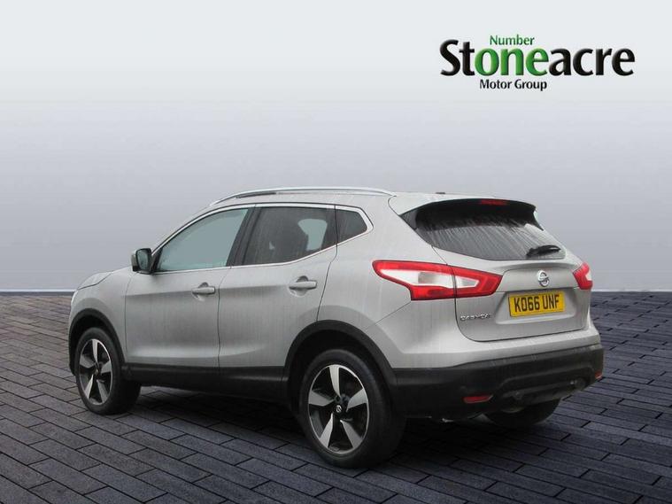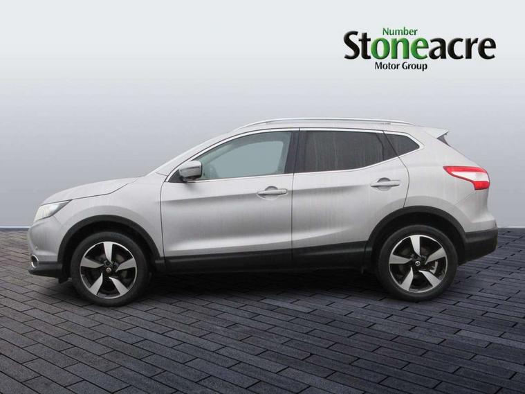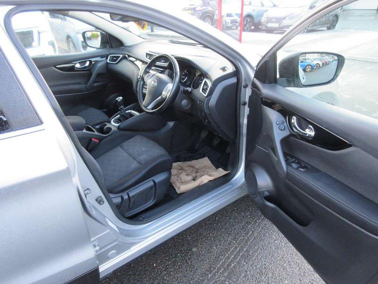 5" TFT driver information centre, 7" touch screen, Around View Monitor, Bluetooth phone integration system, Cruise control, Front and rear parking sensors, Lane departure warning system, Nissan connect sat nav system, Push button starter, Service interval indicator, Speed limiter, Speed sensitive power steering, Traffic sign recognition, Trip computer, 6 speakers, DAB radio/CD player, Steering wheel mounted audio controls, USB/aux input socket, 2 speed wipers+variable intermittent wipe, Automatic headlamp activation, Black honeycomb front grille, Body colour bumpers, Body colour door mirrors and handles, Chrome window surround, Electric folding and heated door mirrors, Electric front/rear windows, Front fog lights with chrome surrounds, High beam assist, Interior mirror with auto anti dazzle, LED daytime running lights, Rain sensor windscreen wipers, Rear privacy glass, Rear wiper, 12V socket, 60/40 split folding rear seat, Ambient interior lighting, Cloth upholstery, Driver's lumbar support, Driver/passenger front seatback pockets, Dual zone climate control, Footwell ambient lighting, Front armrest, Front cupholders x 2, Front headrests, Front seat belt pre-tensioners with load limiters, Height adjustable driver's seat, Height adjustable passenger seat with lumbar support, Illuminated glovebox, Isofix child seat preparation, Leather gearknob, Leather steering wheel, Luggage area divider, Map reading lamp, Pollen filter, Rake/reach adjustable steering wheel, Rear armrest with 2 cupholders, Rear headrests, ABS, brake assist and EBD, Active Trace Control, Child locks on rear doors, Curtain airbags, Driver/front passenger airbag, Electronic parking brake, ESP + traction control, Forward emergency braking, Height adjustable front seatbelts, Hill start assist, Side airbags, Three 3 point rear seatbelts, Tyre pressure monitoring system, Warning triangle and first aid kit, Alarm, Immobiliser, Intelligent Key, Remote central locking, 18" Diamond cut alloy wheels, Tyre puncture repair kit,