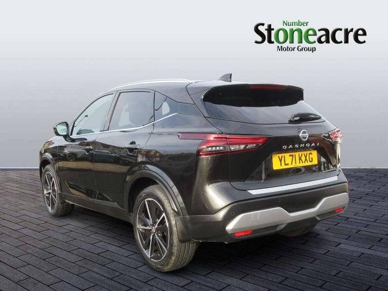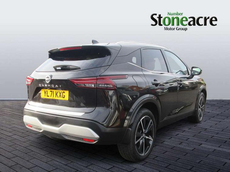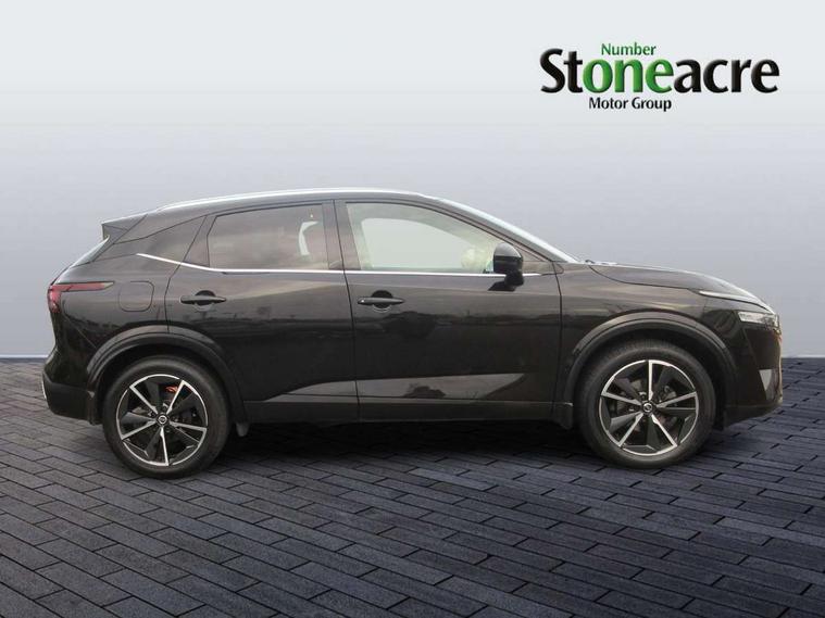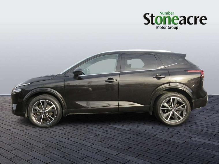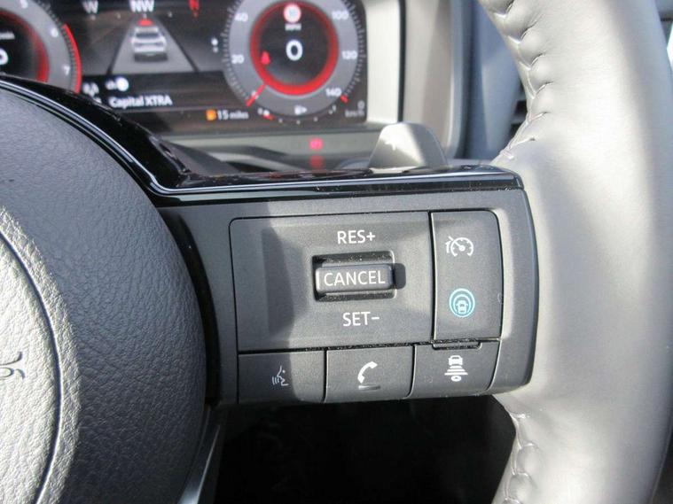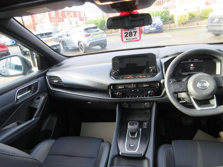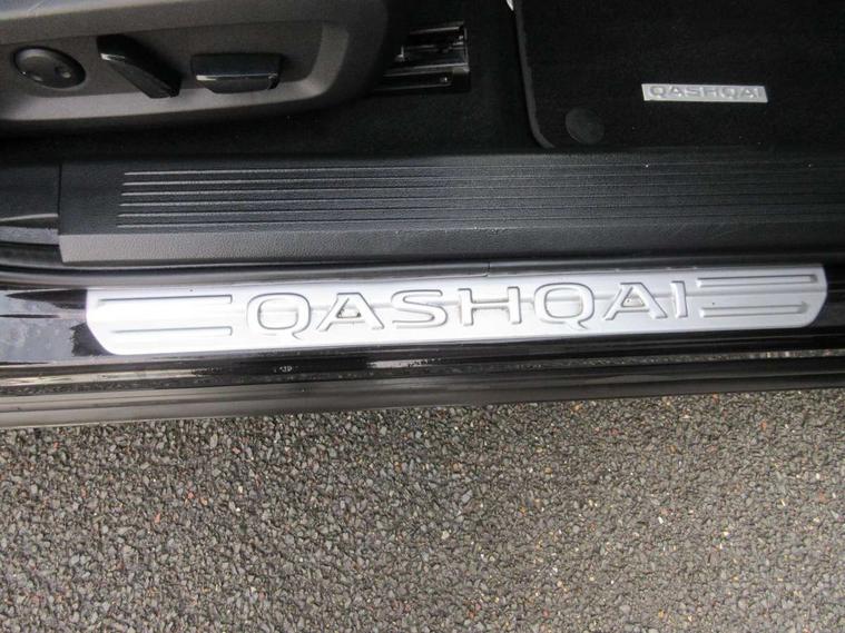 Blind spot warning, Drive modes (sport, normal, eco), Electric speed sensitive power steering, Emergency and breakdown call, Front and rear parking sensors, Full Digital 12.3" TFT Digital Combimeter, Google maps services - search, weather, 3D maps and Google street view, Hands free power tailgate, Idle stop/start system, Intelligent around view monitor, Intelligent Cruise control (ICC), Intelligent driver alert system, Intelligent forward collision warning, Intelligent lane intervention, Lane departure prevention, Lane departure warning system, Moving object detection, Nissan connect 9" touchscreen infotainment system, Nissan connect navigation, Push button starter, Rear cross traffic alert, Remote control services - door locks, lights, horn and car locator, Telematics - notifications and connectivity services, TomTom live traffic services, Traffic sign recognition with legal speed adjustment, Trip computer, Virtual personal assistant and firmware over the air capability, Wireless Apple CarPlay and wired Android Auto, Wireless charging pad, 6 speakers, AM/FM audio system with DAB, Bluetooth audio streaming, Front USB connections (Type-A and Type-C), Rear USB charging only ports (Type-A and Type-C), Auto dimming rear view mirror, Auto rear wiper when reversing, Body colour mirror caps, Body coloured door handles, Bodyside mouldings, Chrome side window finisher, Door handle with button, Dusk sensor, Electric auto folding door mirrors, Electrically adjustable and heated door mirrors with LED turn indicator, Fixed panoramic glass roof with electric sunshade, Follow me home headlights, Front and rear LED turning signals, Intelligent auto headlights, LED daytime running lights, LED rear lights, One touch front and rear electric windows with remote opening and closing, Partially body coloured bumpers, Privacy glass, Rear roof spoiler, Rear side wing doors, Rear styling plate, Roof rails, Shark fin antenna, Splash free rain sensing wipers, Super UV and infrared cut glass, Three blink turn signal, 12v power socket in dashboard and luggage, 2 way electrical driver lumbar adjustment, 2x Rear coat hooks, 3 bench rear seats in 2nd row, 3 rear headrests, 4 folding assist grip, 6 Luggage hooks - 4 on floor, 2 on side, 60/40 split folding rear seat bench, 8 way electric adjustable drivers seat, Ambient lighting around centre console, Ambient lighting in front doors, Centre console storage tray, Chrome interior door handles, Cloth/syntech leather monoform upholstery, Dark headlining, Driver and front passenger sunvisors with illuminated vanity mirrors, Driver seat back pocket, Dual zone automatic climate control with pollen filter, Front and rear door storage, Front cupholders x 2, Front door with bottle holders, Glovebox with light, Hard trunk cover, Height adjustable front headrests, Leather steering wheel, Luggage board system, Luggage space lighting, Manual lumbar support on passenger seat, Manually adjustable passenger (slide recline + lifter), Multifunction steering wheel, Passenger seat back pocket, PVC front centre console and armrest, Rear armrest with 2 cupholders, Rear door bottle holders, Single front passenger seat, Soft PVC kneepad, Steering wheel gearshift paddles, Steering wheel switches, Tilt/telescopic adjustable steering wheel, Two rear isofix child seat anchorage points with top tether, Welcome light and doors with console tray ambient lighting, Heat pack - Qashqai, Tech Pack (ProPILOT + HUD), 3x3 point rear seatbelt pretensioners + load limiters, ABS, ESP, EBD and brake assist, Active brake limited slip, Auto hold function, Child locks on rear doors, Curtain and front side, far side airbags, Driver and passenger airbags, Driver, passenger and 2nd row rear seat belt reminder, Electronic parking brake, Front seatbelt pretensioners + load limiters, Height adjustable front seatbelts, Hill start assist, Intelligent blind spot intervention, Intelligent front emergency braking with pedestrian, cyclist recognition and junction assist, Intelligent rear automatic braking, Tyre pressure monitoring system, Vehicle dynamic control, Capless fuel filler, Engine immobiliser, Nissan i-key, Rear bumper with silver insert, Remote central door locking with deadlocking, Thatcham Cat.1 alarm, 19" Alloy wheels,