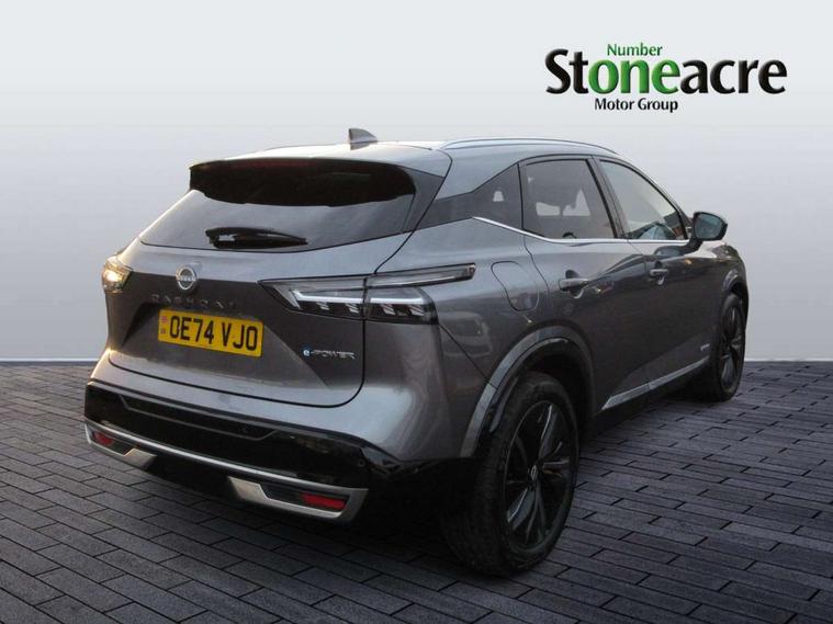 2 front USB-C ports, 2 rear USB-C ports, 360 degree Intelligent around view monitor with moving object detection, Advanced windscreen head up display, Blind spot intervention, Blind spot warning, Drive assist custom mode, Drive modes (sport, normal, eco), Driver drowsiness and attention warning, e-Pedal step, Electric speed sensitive power steering, Emergency and breakdown call, Emergency lane keep assist, Emergency Stop Signal (ESS), Engine start/stop button, EV mode switch, Event data recorder, Front and rear parking sensors, Full Digital 12.3" TFT Digital Combimeter, Google virtual personal assistance, Hands free power tailgate, Idle stop/start system, In-car WIFI hotspot, Intelligent Cruise control (ICC), Intelligent forward collision warning, Intelligent speed assist, Lane departure warning system, Nissan connect 12.3 inch touchscreen infotainment system, Nissan connect navigation with google maps, Nissan connect services 2.0 (Google Automotive System), Outside temperature sensor, Rear cross traffic alert, Reversing detection, Traffic jam pilot, Wireless Apple CarPlay/Android Auto, Wireless charging pad, Limited slip differential, 6 speakers, AM/FM audio system with DAB, Bluetooth audio streaming, Auto dimming frameless rear view mirror, Auto rear wiper when reversing, Body colour mirror caps, Body coloured door handles, Bodyside mouldings, Chrome side window finisher, e-POWER badging, Electric auto folding door mirrors, Electrically adjustable and heated door mirrors with LED turn indicator, Follow me home headlights, High beam assist, Intelligent auto headlights, LED 3rd brake light, LED daytime running lights, LED headlights with adaptive driving beam, LED rear lights, LED sequential turn lights, One touch front and rear electric windows with remote opening and closing, One touch passenger window, Partially body coloured bumpers, Rear privacy glass, Rear roof spoiler, Rear side wing doors, Rear styling plate, Reverse tilting door mirrors, Shark fin antenna, Silver roof rails, Splash free rain sensing wipers, Super RED rear LED lights, Super UV and infrared cut glass, Thermaclear heated windscreen, 3 bench rear seats in 2nd row, 3 rear headrests, 60/40 split folding rear seat bench, Chrome interior door handles, Dark headlining, Driver seat back pocket, Dual zone automatic climate control with pollen filter, e-POWER shifter, Fixed Glass roof with electric sunshade, Front door with bottle holders, Heated front seats, Heated steering wheel, Height adjustable front headrests, Luggage board system, Luggage space lighting, Multifunction steering wheel, Passenger seat back pocket, Quilted/PVC upholstery, Rear door bottle holders, RGB ambient light (Full area coverage), Single front passenger seat, Smooth leather steering wheel, Tilt/telescopic adjustable steering wheel, Two rear isofix child seat anchorage points with top tether, 3x3 point rear seatbelt pretensioners + load limiters, Autonomous emergency braking, Child locks on rear doors, Curtain and front side, far side airbags, Driver and passenger airbags, Driver, passenger and 2nd row rear seat belt reminder, Electric handbrake with auto hold function, Front seatbelt pretensioners + load limiters, Height adjustable front seatbelts, Hill start assist, intelligent front emergency braking, Rear automatic braking, Tyre pressure monitoring system, Vehicle dynamic control, Engine immobiliser, Intelligent key with walk away lock and approach unlock functions, Remote central door locking with deadlocking, Thatcham alarm, 19" Diamond cut alloy wheels, Tyre puncture repair kit,