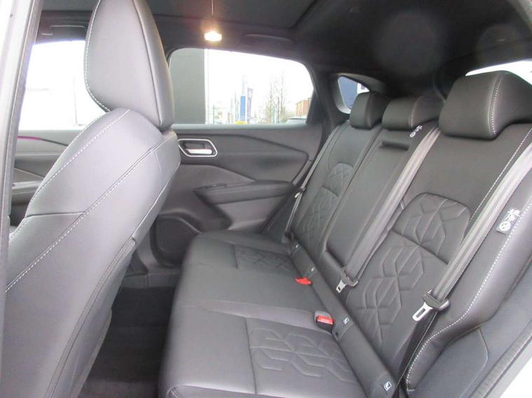 2 front USB-C ports, 2 rear USB-C ports, 360 degree Intelligent around view monitor with moving object detection, Advanced windscreen head up display, Blind spot warning, Drive assist custom mode, Drive modes (sport, normal, eco), Driver drowsiness and attention warning, e-Pedal step, Electric speed sensitive power steering, Emergency and breakdown call, Emergency lane keep assist, Emergency Stop Signal (ESS), Engine start/stop button, EV mode switch, Event data recorder, Front and rear parking sensors, Full Digital 12.3" TFT Digital Combimeter, Google virtual personal assistance, Hands free power tailgate, Idle stop/start system, In-car WIFI hotspot, Intelligent Cruise control (ICC), Intelligent driver alert system, Intelligent forward collision warning, Intelligent lane intervention, Intelligent speed assist, Lane departure warning system, Nissan connect 12.3 inch touchscreen infotainment system, Nissan connect navigation with google maps, Nissan connect services 2.0 (Google Automotive System), Outside temperature sensor, Propilot assist with Navi-Link, ProPilot park, Rear cross traffic alert, Remote control services - door locks, lights, horn and car locator, Reversing detection, Traffic jam pilot, Traffic sign recognition with legal speed adjustment, Trip computer, Wireless Apple CarPlay/Android Auto, Wireless charging pad, Limited slip differential, 6 speakers, AM/FM audio system with DAB, Bluetooth audio streaming, Auto dimming frameless rear view mirror, Auto rear wiper when reversing, Body colour mirror caps, Body coloured door handles, Bodyside mouldings, Chrome side window finisher, e-POWER badging, Electric auto folding door mirrors, Electrically adjustable and heated door mirrors with LED turn indicator, Follow me home headlights, High beam assist, Intelligent auto headlights, LED 3rd brake light, LED daytime running lights, LED headlights with adaptive driving beam, LED rear lights, LED sequential turn lights, One touch front and rear electric windows with remote opening and closing, One touch passenger window, Partially body coloured bumpers, Rain sensing wipers, Rear privacy glass, Rear roof spoiler, Rear side wing doors, Rear styling plate, Reverse tilting door mirrors, Shark fin antenna, Silver roof rails, Splash free rain sensing wipers, Super RED rear LED lights, Super UV and infrared cut glass, Thermaclear heated windscreen, 12v power socket in dashboard and luggage, 3 bench rear seats in 2nd row, 3 rear headrests, 60/40 split folding rear seat bench, Chrome interior door handles, Dark headlining, Driver and passenger sunvisors with illuminated vanity mirrors, Driver seat back pocket, Dual zone automatic climate control with pollen filter, e-POWER shifter, Electrically adjustable driver seat, Electrically adjustable lumbar support for driver, Fixed Glass roof with electric sunshade, Front centre console and armrest, Front cupholders, Front door with bottle holders, Heated front seats, Heated steering wheel, Height adjustable front headrests, Height adjustable passenger seat, Luggage board system, Luggage space lighting, Manual adjustable lumbar support for passenger, Multifunction steering wheel, Passenger seat back pocket, Quilted/PVC upholstery, Rear door bottle holders, Rear seat armrest with 2 cupholders, RGB ambient light (Full area coverage), Single front passenger seat, Smooth leather steering wheel, Tilt/telescopic adjustable steering wheel, Two rear isofix child seat anchorage points with top tether, 3x3 point rear seatbelt pretensioners + load limiters, ABS with EBD and brake assist, Autonomous emergency braking, Child locks on rear doors, Curtain and front side, far side airbags, Driver and passenger airbags, Driver, passenger and 2nd row rear seat belt reminder, Electric handbrake with auto hold function, Front seatbelt pretensioners + load limiters, Height adjustable front seatbelts, Hill start assist, Intelligent blind spot intervention, intelligent front emergency braking, Intelligent rear automatic braking, Tyre pressure monitoring system, Vehicle dynamic control, Engine immobiliser, Intelligent key with walk away lock and approach unlock functions, Remote central door locking with deadlocking, Thatcham alarm, 19" Diamond cut alloy wheels, Tyre puncture repair kit,