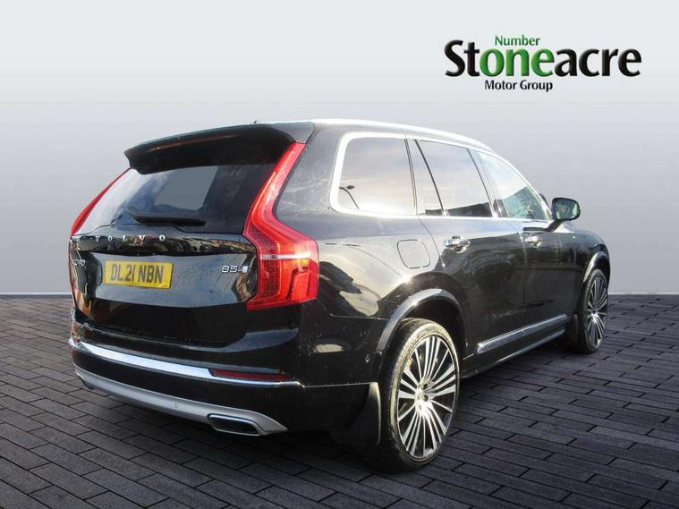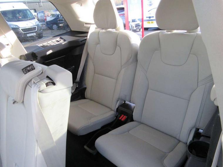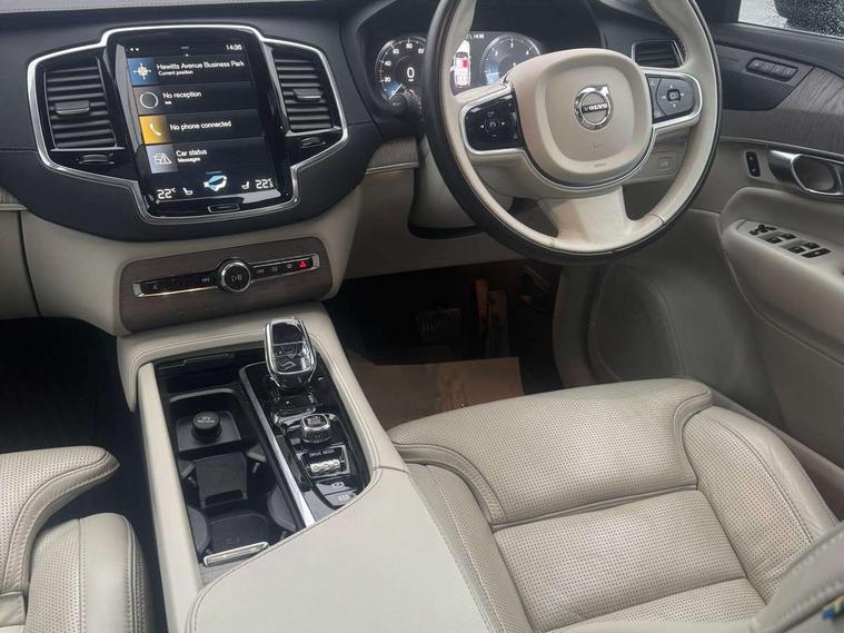 12.3" Active TFT crystal driver's instrument display, 9" centre console portrait touch screen, Adjustable steering wheel force, Bluetooth hands free telephone connection, Drive mode settings, Driver alert control with lane keeping aid, Driver assistance (pilot assist and adaptive cruise control), Driver awareness - Blind spot information system with steer assist, cross traffic alert with autobrake and rear collision warning and mitigation, Front and rear park assist, Handsfree power tailgate opening and closing, Oncoming Lane Mitigation, Remote engine start, Sensus navigation with European mapping and traffic information, Service interval indicator, Smartphone integration with Apple CarPlay and Android auto, Speed limiter, Speed sensitive steering, Trip computer, Voice activated control for key functions, Volvo on call, 8 speed automatic transmission with start/stop + manual change functions, Active four C chassis - four corner adaptive dampers with electronic air suspension, All wheel drive system, DAB Radio (Digital Audio Broadcasting), Steering wheel audio controls, Steering wheel remote infotainment controls, Adaptive brake lights with high level LED brake lights, Auto dimming interior + exterior mirrors, Automatic headlight levelling system, Automatic LED Headlights + Active high beam incorporating daytime running lights, Body colour bumpers, Chrome Front and Rear Bumper plus Lower Side Mouldings, Chrome window surround, Colour coordinated auto folding and heated power door mirrors, Dual integrated exhaust pipes, Front and rear power windows, Heated washer nozzles, Home safe and approach lighting, Integrated roof rails in silver, Matt silver front grille with chrome detailing, Puddle lights, Rain sensor with automatic windscreen wiper activation, Rear wash/wipe with intermittent wipe setting, Roof antenna, Roof spoiler, Visible VIN plate, 12V socket front tunnel console, rear passenger compartment and cargo area, A-pillar parking ticket holder, Ambient door and instrument panel lighting, B Pillar ventilation, Bright metal luggage threshold, Cargo divider with grocery bag holder, Centre console cupholders and storage, Driver's side lower dashboard storage compartment, Front and rear door pocket and front cupholder illumination, Front footwell and side step illumination, Front headrests, Front seat backrest massage, Front seat cushion extension and power adjustable front seats side support, Heated front seats, Height/reach adjustable steering column, Illuminated front and rear tread plates, Illuminated luggage compartment, Illuminated tailgate, Illuminated vanity mirrors + ticket holder, Illumination lockable glovebox compartment, Integrated sun curtains in rear doors, Load protection net, Luxury floor mats, Multicolour theatre lighting, Orrefors Crystal gear lever knob, Outboard armrest with cupholder and storage for third row passengers, Perforated and ventilated nappa soft leather upholstery, Power driver seat with multi directional lumbar support and memory for seat and exterior mirrors, Power folding 2nd row headrests, Power passenger seat with multi directional lumbar support and memory, Rear footwell and side step illumination, Rear headrests, Semi automatic load cover, Three 2nd row individual folding passenger seats with fore/aft adjustment, Two 3rd row individual folding passenger seats, Underfloor cargo storage, Lighting pack - XC90, 7 three point seatbelts, City safety includes pedestrian, cyclist and large animal detection and front collision warning with full auto brake, Drivers knee airbag, Dual stage driver/passenger airbags, First aid kit, Front seats SIPS airbags, Hill descent control, Hill start assist, IC (Inflatable Curtains) - Full Length, Passenger airbag cut-off switch, Power parking brake with auto hold function, Road sign information display, Run off Road Mitigation, Run off Road Protection, Seatbelt reminder and pretensioners for all seats, SIPS (Side Impact Protection System), Slippery road and hazard light alert, Stability and Traction Control with Spin control, Engine Drag Control and Corner Traction Control, Tyre pressure monitoring system, Vehicle deceleration control with Anti-lock Brake System, Electronic Brake Distribution and Emergency Brake Assist, Warning triangle, WHIPS whiplash protection system - front, Anti-theft alarm including immobiliser/volume sensor + level sensor, Care key with user defined top speed, Key integrated remote control central locking + fuel flap with deadlocking system and auto open/close power windows, Keyless drive (includes keyless entry and keyless start) with remote tag, Locking wheel nuts, Private locking for glovebox and tailgate, Grey ash inlays, Tailored instrument panel and door tops, Tempa spare wheel and jack,