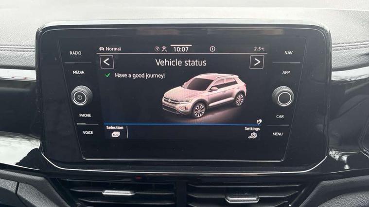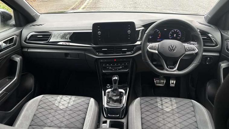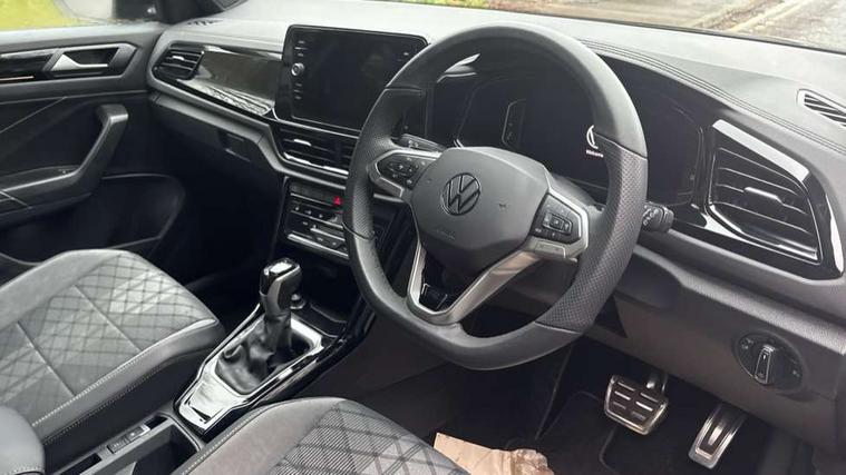10.25" Digital cockpit pro, Advanced driver attention and drowsiness monitor, Emergency call service, Lane keeping system Lane Assist, Mobile phone interface, Modified key software - reduce switch off time for key status change to Long no motion, Online services, Park assist including front and rear parking sensors, Power assisted speed sensitive steering, Service interval indicator, Tailgate/trunk lid release from outside, Think blue trainer driver tips and journey analysis, Warning sound and light for front seatbelts unfastened, Wireless app connect, Battery regeneration during braking, Rear shock absorption chassis with increased ride height, Start/stop function with battery regeneration, DAB Digital radio, Diversity antenna for FM reception, Front and rear 6 speakers, Music playback - MP3, WMA and AAC files, Premium USB cable in choice of either Apple or Android smartphone compatibility, SD card slot, Simultaneous pairing of 2 compatible mobile devices, Title and cover art display, We Connect and We Connect Plus functionality, Auto dimming interior rear view mirror, Automatic hazard lights activation under emergency braking, Automatic headlight control with LED separate daytime running lights with coming/leaving home function, Dynamic cornering light, Electrically adjustable and heated door mirrors, Extended roof spoiler, Exterior mirrors aspherical on driver side, convex on front passenger side, External USB type C socket and charging sockets, Front windscreen wiper with intermittent wipe and 4 position delay, Heated rear window, Illuminated front grille, IQ LED matrix headlights, LED 3rd brake light, LED rear number plate lights, LED rear tail lights with dynamic turn signal, Light mode for poor weather, rain, fog or snow, Power windows with comfort operation and circuit breaker, R-Line design body coloured bumpers, Rain sensor, Rear exhaust tailpipe, Rear fog light on one side and reversing lights on both sides, Rear side wing doors, Rear wash/wipe with intermittent wipe setting, Remote electrically foldable door mirrors, puddle lights and reverse activated passenger's door mirror, 12V power socket in centre console, 3 rear head restraints, 3 seat bench in 2nd row, 4 load lashing points in luggage compartment, Air care climatronic air conditoning system with active combination filter and 2-zone temperature control, Artvelours cloth upholstery, Black roof lining, Chrome plated radiator grille inserts, air vent surrounds and light switch surrounds, Door and side trim panel with leatherette insert, Drawer under drivers seat, Driver seat height adjust, Driver's seat lumbar support, Front + rear carpet mats, Front centre armrest, Front comfort sports seats, Front cupholders x 2, Front footwell illumination, Front reading light, Front scuff plates with R Line logo, Front seat back storage pockets, Glove compartment door with light, Instrument lighting, white adjustable panel illumination, Interior ambient lighting and surround lighting, Interior light delay, Isofix child seat preparation, Leather gearshift handle, Leather wrapped multifunction steering wheel with paddle shift, Load-through provision with cup holder when folded down ('Unsplit rear seat bench, split folding backrest, with centre armrest), Luggage compartment lighting, Non-folding front passenger seat backrest, Passenger seat height adjuster, Passenger seat lumbar support, Single front passenger seat, Stainless steel pedals, Storage compartment in left and right luggage area, Storage compartment in rear doors, Storage compartments in driver and front passenger doors, Sunvisors with illuminated vanity mirrors, Variable boot floor, height adjustable and removable, Winter pack without heated windscreen washer jets - T-Roc, 3 point height adj front seatbelts + pretensioners, 3 point seatbelts in outer rear with ECE label, ABS, Child locks on rear doors, City emergency braking and pedestrian monitoring, Driver and front passenger airbag with front passenger airbag deactivation, Driver and front passenger safety-optimised head restraints, Drivers seatbelt reminder, Electronic parking brake, Electronic Stability Control (ESC) inc EDL (Electronic Differential Lock) and ASR (Traction Control), Front and rear passengers curtain airbag system including front side airbags, Front disc brakes, Hill start assist, Predictive pedestrian protection, Rear disc brakes, Two tone horn, Tyre pressure loss indicator, Volkswagen roadside assistance, Tool kit, Trims for alloy wheels, Tyre mobility kit including compressor and sealing foam,