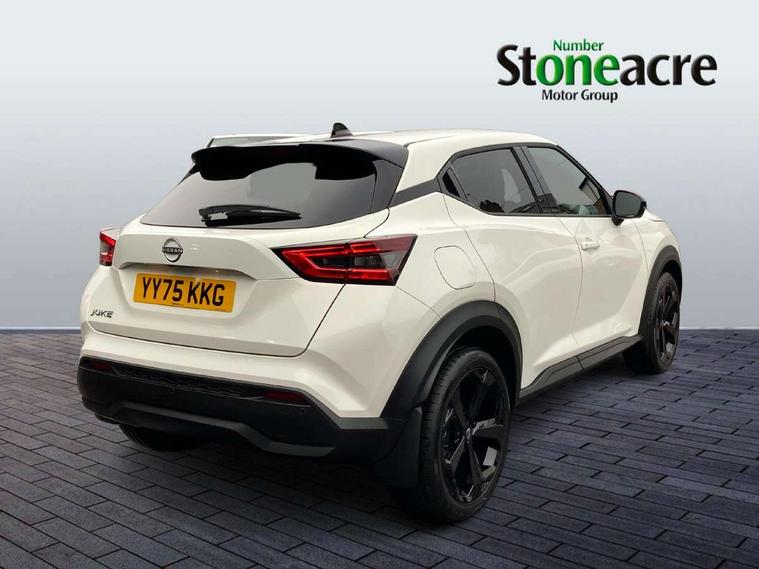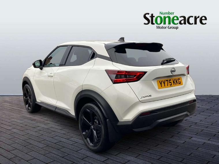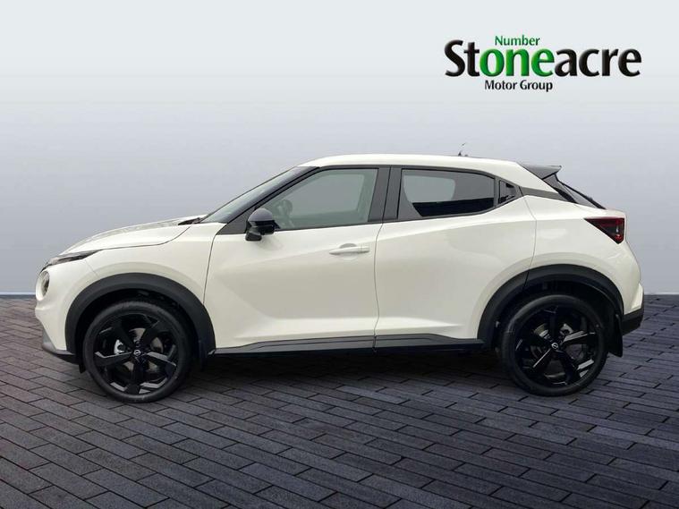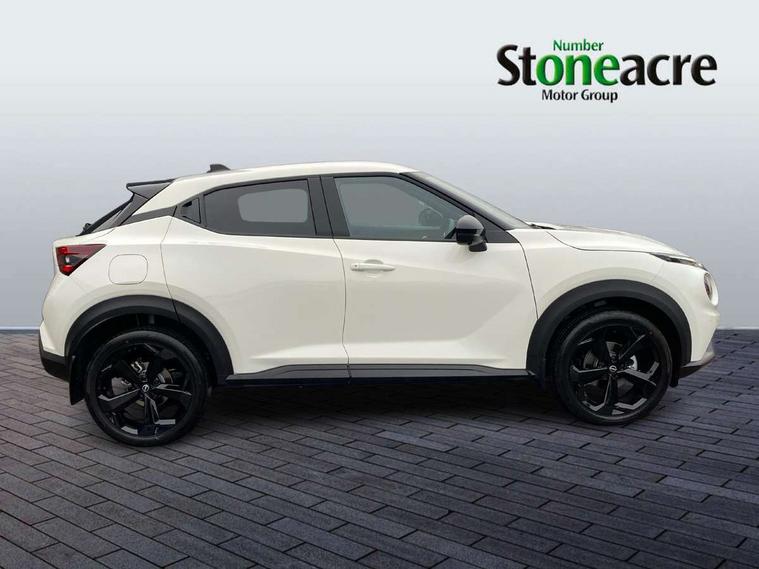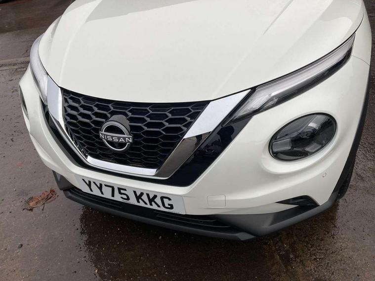 12.3" full colour TFT screen combimeter, Drive modes select (Eco, normal and sport), Emergency and breakdown call, Front parking sensor, Idle start/stop system, Intelligent driver alert system, Intelligent lane intervention, Lane departure warning system, Nissan connect 12.3" touch screen entertainment system, Nissan connect nav with TomTom traffic, Nissan connect services, Outside temperature sensor, Power Steering, Rear parking sensor, Stop/start button, Traffic sign recognition, Trip computer, Voice recognition, WiFi connectivity, Wireless Apple CarPlay and Google Android auto, Wireless Smartphone charger, 10 Bose speakers 8 speakers and 2 headrest speakers for driver/passenger seats, 2 X Rear console USB port, Bluetooth system, USB, Aux-in and 12V socket, Bose personal plus audio system, DAB Digital radio, Auto dimming frameless rear view mirror, Automatic hazard signal with emergency stop signal, Body colour door handles, Electrically adjustable door mirrors with integrated indicators, Follow me home headlights, Front and rear electric window with one touch driver window, High beam assist, LED 3rd brake light, LED daytime running lights, LED headlamps, LED rear fog lamp, LED rear lamps, One touch passenger window, Rear privacy glass, Rear side wing doors, Rear wiper, Roof spoiler, Shark fin roof antenna in solid Black, Solid black door mirrors, Three blink turn signal, 3 height adjustable rear headrests, 3 seat bench in 2nd row, 60/40 split folding rear seat, Card holder on driver sunvisor, Door ambient lighting, Driver seat back pocket, Driver side rear coat hanger, Driver/passenger sunvisors and vanity mirrors, Front and rear cabin lights, Front armrest, Front door pockets with bottle holders, Front head restraints, Front/rear passenger grab handles, Gear console ambient circle lighting, Height adjustable driver's seat, Internal chrome door handles, Luggage board, Luggage space lighting, Monoform sporty seats, Multifunction steering wheel, Passenger seat back pocket, PVC fabric upholstery, Rear door bottle holders, Single front passenger seat, Smooth synthetic leather steering wheel, Steering wheel mounted gearshift paddles, Synthetic leather kneepad, Synthetic leather shift knob, Telescopic steering wheel adjustment, Two cupholders in front centre console, Two rear isofix child seat anchorage points with top tether, Welcome light and console tray ambient lighting, Comfort pack - Juke, Heat pack with height adjustable passenger seats - Juke, ProPilot pack - Juke Auto, ABS with EBD and brake assist, Active ride control, Active Trace Control, Driver and passenger airbags, Driver and passenger side airbags, Electric handbrake with auto hold function, Electronic Stability Programme (ESP), Front and rear curtain airbags, Height adjustable seatbelts, Hill start assist, Intelligent emergency braking with pedestrian and cyclist recognition, Rear door child safety locks, Seatbelt reminder for driver/front passenger and rear seats, Three 3 point rear seatbelts, Traction control, Tyre pressure monitoring system, VDC Dynamic Vehicle Control, Alarm, Immobiliser, Intelligent key and start push button with walk away lock and approach unlock functions, Remote central locking, 19" Alloy wheels, Tyre puncture repair kit,