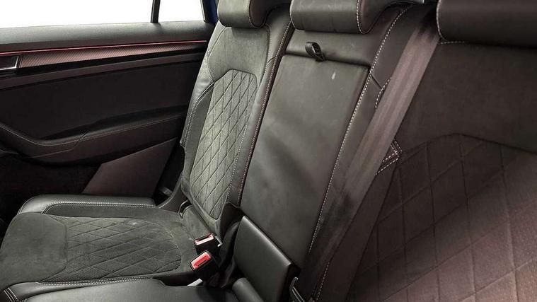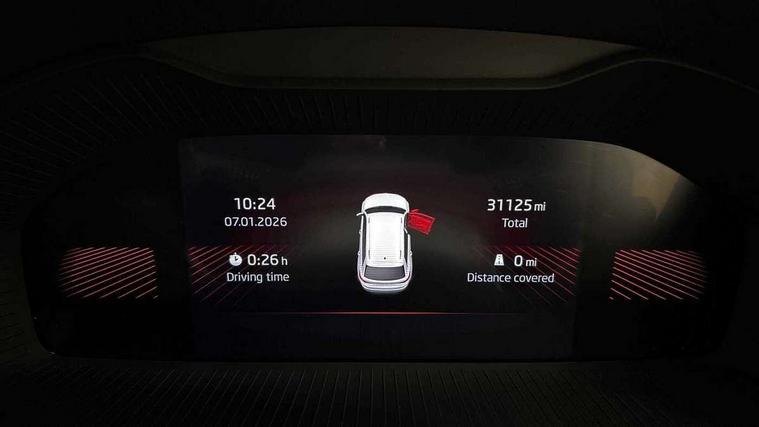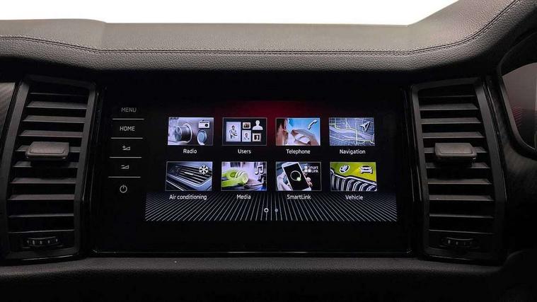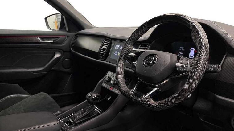 Bluetooth system, Columbus satellite navigation with 9.2" touchscreen, integrated Wi-Fi, web radio, Digital voice enhancement, e call+, ECO Stop/start function, Exterior temperature indicator, Progressive steering, Rear view camera, Smartlink wireless for apple carplay and wired for android auto, Speed limiter, Tailgate unlocking from outside, USB C Port x 2 in front centre console, Wireless charging, 8 Speakers, DAB Digital radio, Aero front windscreen wipers with intermittent function, Aero rear window wiper, Auto dimming rear view mirror, Black roof rails, Black sports styling including front grille and window surrounds, Black wheel arch surrounds, Body colour bumpers, Body colour door handles, Electric adjustable/heated/folding door mirrors, driver side auto dimming with boarding sports and memory function, Electric front and rear windows, Extended rear spoiler with finlets in gloss black, Front fog lights, Full LED matrix headlights with AFS (adaptive front light system), cornering function and AWL (all weather lighting system), Gloss black door mirrors, Headlight washers, Heated rear window, Invisible tailpipe, LED daytime running lights, LED rear fog light, LED third brake light in rear spoiler, Light assistant (coming/leaving home/tunnel light), Off-road style lower front bumper element, Privacy glass, Rain and light sensors, Rear diffuser, Rear LED lights (high functionality) with welcome effect and dynamic indicators, Rear side wing doors, Safety reflectors on front and rear doors, Sportline badge on front fender, Sports front and rear bumpers including lower rear chrome strip, Tailgate lettering in Black, Window control switches with black trim, 12V socket in boot, 2 rails with 2 hooks, 2 seat bench in 3rd row, 3 seat bench in 2nd row, 4 foldable roof handles with rear coat hooks, 60:40 foldable rear seat with sliding adjustment and backrest angle adjustment, Aluminium pedals, Black roof headlining, Bottle holders in door panel in the 1.5 litre front and 1 litre rear, Cargo storage compartments, Chrome headlight control button, Chrome interior door handles, Coat hooks on B pillar, Covered storage compartment on driver side, Decorative door sill covers, Front centre armrest with storage compartment, cup holder and 12V socket, Front courtesy lights, Gear shift lever with chrome frame and black gloss insert, Grey stitching in front and rear armrests and door armrests + door inserts, Height adjustable front headrests, Illuminated and cooled glovebox, Illuminated luggage compartment, Isofix child seat fittings in outer rear seats with top tether, Manually adjustable steering column, Microsuede door panels, Net programme in boot (1x horizontal Net, 2x vertical Nets), Overhead glasses storage compartment, Pollen filter, Rear centre armrest with cupholders, Single front passenger seat, Sliding trunk cover, Small Bags on the inner sides of the front backrests, Sports seats, Sunvisors with illuminated vanity mirrors, Three rear height adjustable headrests, Ticket holder on A Pillar, Umbrella in door panel, Variable boot floor, LED Interior light pack - Kodiaq, Auto door release and activation of warning lights in the event of an accident, Child locks on rear doors, Driver and front passenger airbag with knee airbag and front passenger airbag deactivation, Electronic parking brake with hill start assist, Emergency rear braking signal, ESC (incl. ABS+MSR+ASR+EDS+HBA+DSR+RBS+MKB), Front assist with autonomous emergency braking, Front side airbags with curtain airbags, Fuel cut off safety device, Height adjustable front 3 point seatbelts + pretensioners, Hill hold control, Rear disc brakes, Safety vest holder in door, Seat belt reminder for all seats, Three point rear seat belts, Two tone horn, Tyre pressure monitor, Alarm with interior monitoring and tilt sensor with safe function, Anti-theft wheel bolts, Immobiliser, Keyless entry and start system (KESSY), Remote central locking with 2 keys, Black air vent surround, Carbon finish dashboard and door inserts, Grey stitching in dashboard, 20" Vega Anthracite alloy wheels, Temporary spare wheel (space saver),