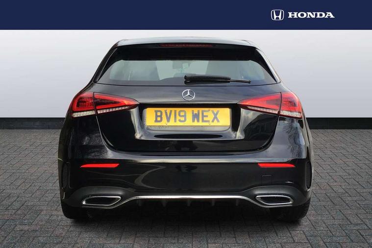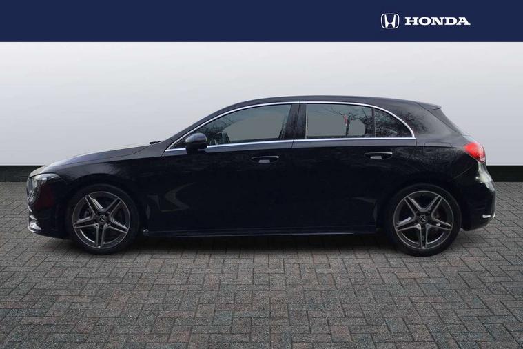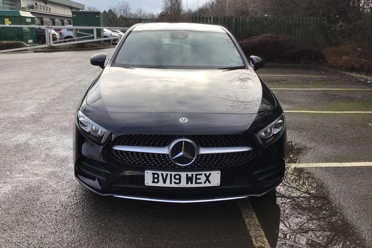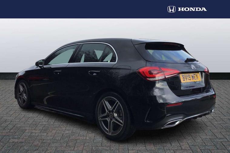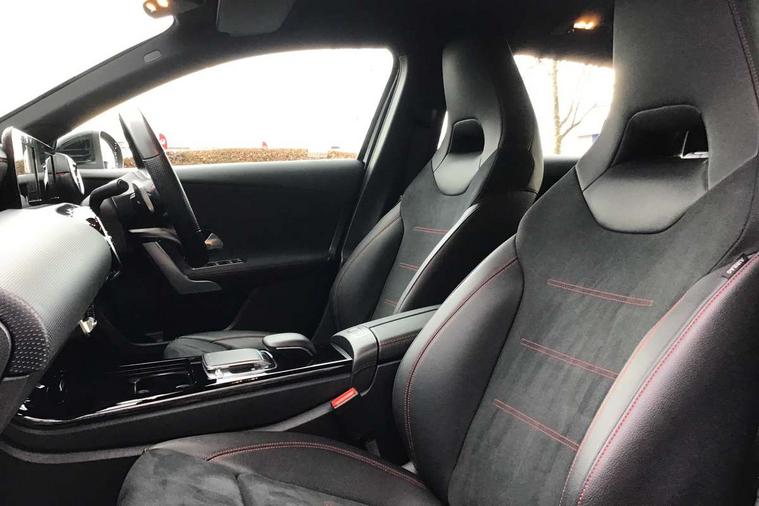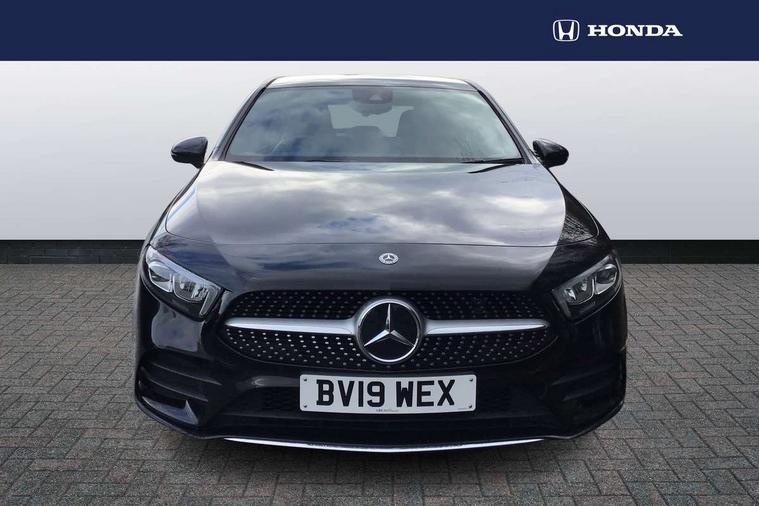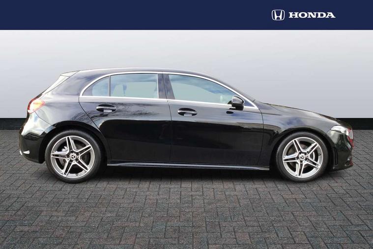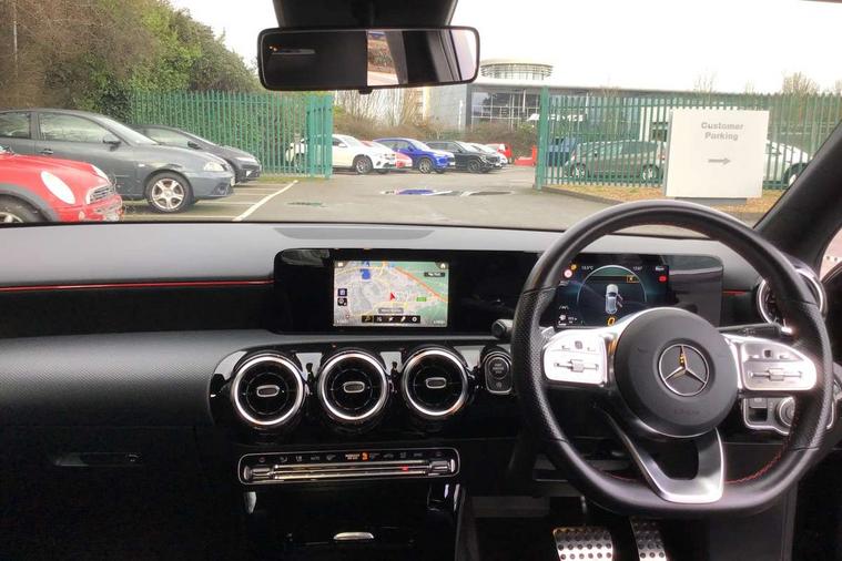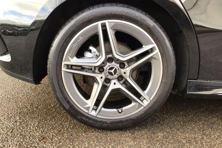 180 degree rear view camera with parking guidelines, 7" colour screen in instrument panel, 7" touchscreen media display, Active lane keep assist, Attention assist, Brake pad wear indicator warning light, Cruise control + speed limiter, Direct steering, Direction indicators with lane change function, DYNAMIC SELECT with a choice of driving modes (ECO, Comfort, Sport, Sport+ and Individual), Fluid level warning indicator for fuel, oil, coolant and washer fluid, Hard-disk navigation, Lamp failure indicator, Mercedes me connect including emergency call system, accident recovery, breakdown and maintenance management, Outside temperature gauge, Radio aerial integrated into roof spoiler, Service indicator (ASSYST), Speed sensitive power steering, Stop/start system, Trip computer, Voice activation, Lowered comfort suspension, DAB Digital radio, Dual bluetooth interface, 2 USB ports (type C), MBUX multimedia system with DAB digital radio and touchpad including satellite navigation, Adaptive brake lights, AMG front, rear apron and side skirts, Blue tinted glass, Body colour bumpers, Body colour door handles, Body colour side skirt, Body coloured door mirrors, Chrome beltline trim, Diamond radiator grille with chrome pins and silver louvre + chrome insert, Electric adjustable and heated door mirrors with integrated LED side indicators, Electric front windows, Electric rear windows, Exhaust system - Twin trapezoidal tailpipes in polished stainless steel, Headlamp assist automatic headlamp activation, Heated glass rear windscreen + timer control, LED high performance headlamps with integrated LED daytime running lights, LED tail lamp, LED third brake light, Rain sensor windscreen wipers, Rear fog lights, Rear wiper, 12V socket, 3 Spoke flat bottom leather multi function steering wheel with perforated leather in grip area, 40:20:40 split folding rear seats, Air vents surround and cruciform nozzle in silver chrome, AMG floor mats with red stitching, Artico man-made leather/Microfibre Dinamica upholstery with red contrast stitching, Auto Mercedes-Benz child seat recognition sensor, Black roof lining, Brushed stainless steel sports pedals with rubber studs, Controller on centre console with chrome surround, Cup holder and stowage compartment lighting, Front centre armrest with storage compartment, Front door sills with Mercedes Benz lettering, Front doors with ambient and signal light, Front footwell lights, Front reading lamps, Front seat backs luggage nets, Front seat cushion length adjustment, Front signal exit lamp, Front vanity lights, Gearshift paddles on steering wheel, Handle recess/closing light, Height/reach adjustable steering column, Illuminated glovebox, ISOFIX Child seat top tethers and anchor fixings, Load securing rings in luggage compartment, Luggage compartment cover, Manual height adjustable front seats, Oddments tray lighting, Rear head restraints, Rear Reading Lamps, Seat occupancy sensor for front passenger seat, Sports seats with integrated headrests, Storage compartment under load area floor, Sunvisors with illuminated vanity mirrors, Touchpad, Touchpad illumination, Twin front cupholders, Two zone thermotronic luxury automatic climate control, Seat comfort pack - A Class, 3 rear 3 point seatbelts, ABS with Brake Assist, Active bonnet, Active brake assist includes forward collision warning system with autonomous braking, Adaptive brake assist with hold function and hill start assist, Black seatbelts, Brake calipers with Mercedes-Benz lettering + perforated brake discs, Childproof locks manually operated for rear doors and electrically operated for rear power windows, Crash responsive emergency lighting, Driver and passenger head and side airbags, Drivers knee airbag, Dual stage driver/passenger airbags, Electronic parking brake, ESP curve dynamic assist, ESP with ASR, Front and rear seatbelt reminder, Tyre pressure monitoring system, Warning triangle and first aid kit, Window airbags, Alarm system/interior protection/immobiliser, Keyless Go, Remote central locking and crash sensor with emergency opening function, 18" AMG 5 twin spoke light alloy wheels in titanium grey with highsheen finish, Tirefit sealant kit,