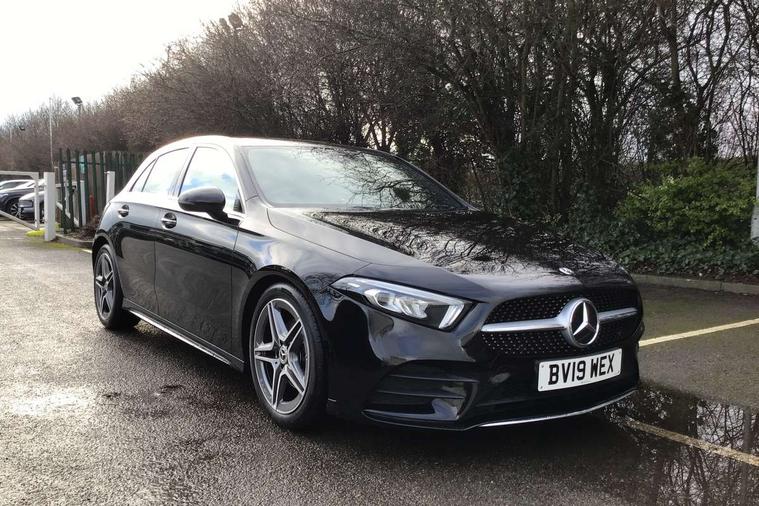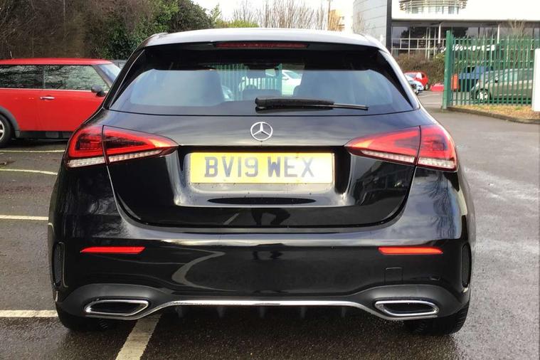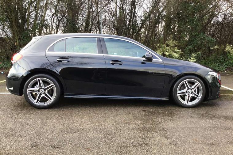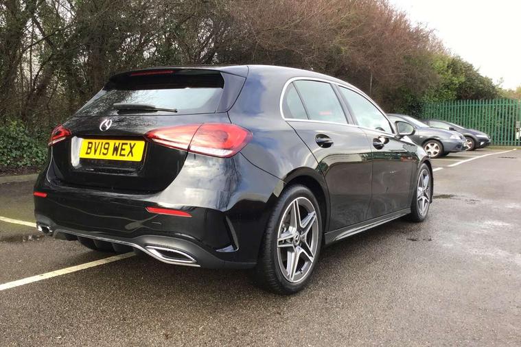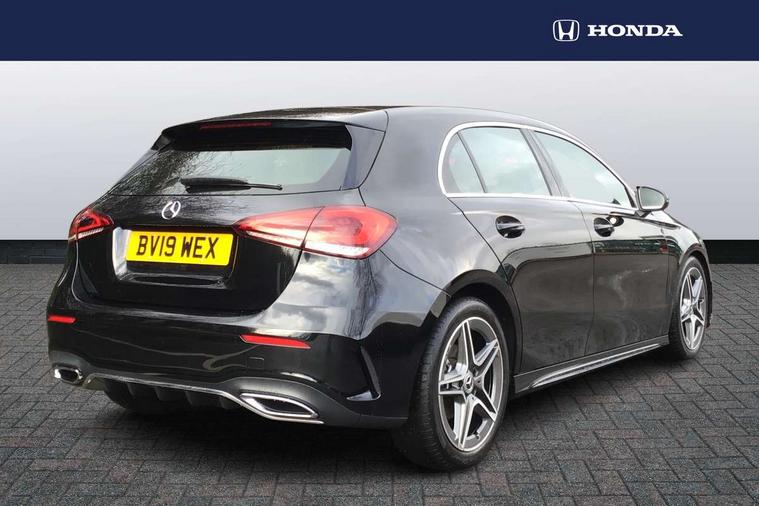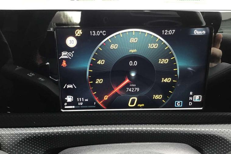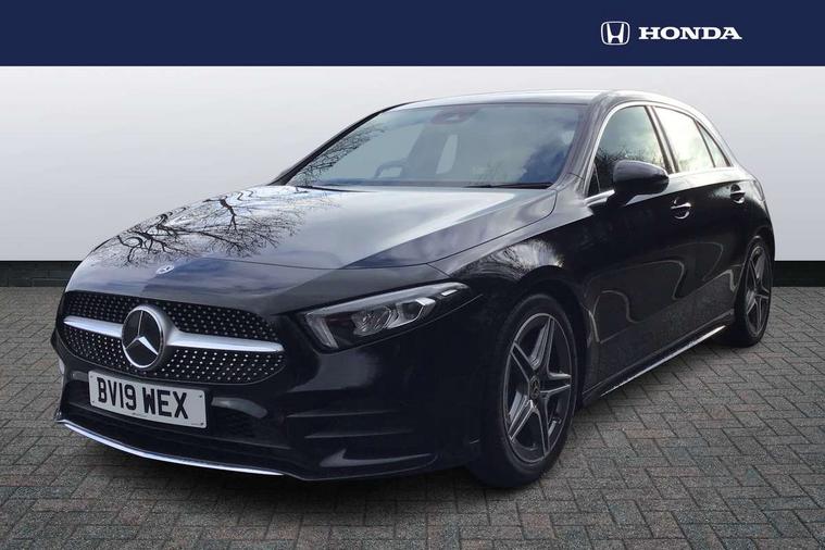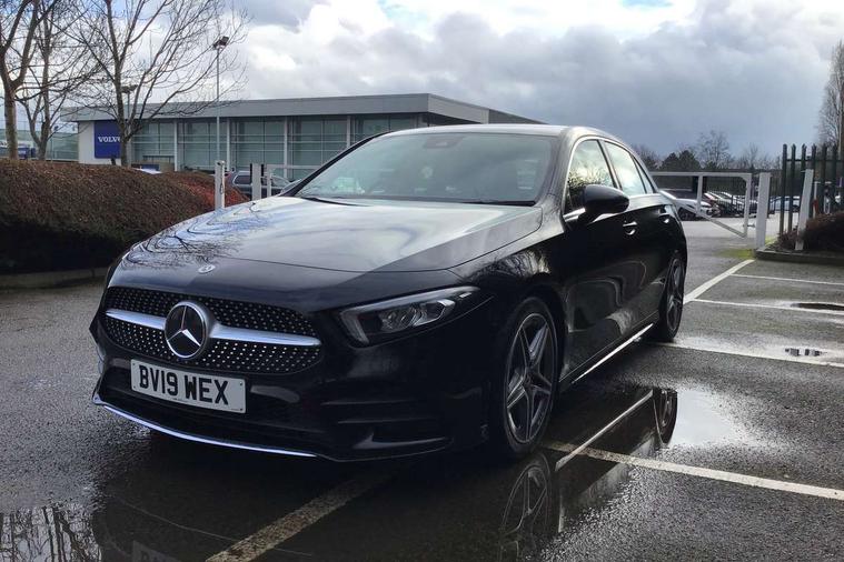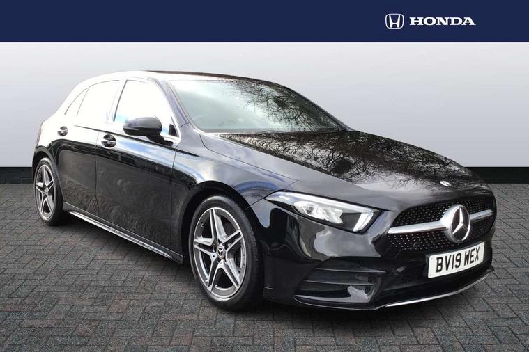 180 degree rear view camera with parking guidelines, 7" colour screen in instrument panel, 7" touchscreen media display, Active lane keep assist, Attention assist, Brake pad wear indicator warning light, Cruise control + speed limiter, Direct steering, Direction indicators with lane change function, DYNAMIC SELECT with a choice of driving modes (ECO, Comfort, Sport, Sport+ and Individual), Fluid level warning indicator for fuel, oil, coolant and washer fluid, Hard-disk navigation, Lamp failure indicator, Mercedes me connect including emergency call system, accident recovery, breakdown and maintenance management, Outside temperature gauge, Radio aerial integrated into roof spoiler, Service indicator (ASSYST), Speed sensitive power steering, Stop/start system, Trip computer, Voice activation, Lowered comfort suspension, DAB Digital radio, Dual bluetooth interface, 2 USB ports (type C), MBUX multimedia system with DAB digital radio and touchpad including satellite navigation, Adaptive brake lights, AMG front, rear apron and side skirts, Blue tinted glass, Body colour bumpers, Body colour door handles, Body colour side skirt, Body coloured door mirrors, Chrome beltline trim, Diamond radiator grille with chrome pins and silver louvre + chrome insert, Electric adjustable and heated door mirrors with integrated LED side indicators, Electric front windows, Electric rear windows, Exhaust system - Twin trapezoidal tailpipes in polished stainless steel, Headlamp assist automatic headlamp activation, Heated glass rear windscreen + timer control, LED high performance headlamps with integrated LED daytime running lights, LED tail lamp, LED third brake light, Rain sensor windscreen wipers, Rear fog lights, Rear wiper, 12V socket, 3 Spoke flat bottom leather multi function steering wheel with perforated leather in grip area, 40:20:40 split folding rear seats, Air vents surround and cruciform nozzle in silver chrome, AMG floor mats with red stitching, Artico man-made leather/Microfibre Dinamica upholstery with red contrast stitching, Auto Mercedes-Benz child seat recognition sensor, Black roof lining, Brushed stainless steel sports pedals with rubber studs, Controller on centre console with chrome surround, Cup holder and stowage compartment lighting, Front centre armrest with storage compartment, Front door sills with Mercedes Benz lettering, Front doors with ambient and signal light, Front footwell lights, Front reading lamps, Front seat backs luggage nets, Front seat cushion length adjustment, Front signal exit lamp, Front vanity lights, Gearshift paddles on steering wheel, Handle recess/closing light, Height/reach adjustable steering column, Illuminated glovebox, ISOFIX Child seat top tethers and anchor fixings, Load securing rings in luggage compartment, Luggage compartment cover, Manual height adjustable front seats, Oddments tray lighting, Rear head restraints, Rear Reading Lamps, Seat occupancy sensor for front passenger seat, Sports seats with integrated headrests, Storage compartment under load area floor, Sunvisors with illuminated vanity mirrors, Touchpad, Touchpad illumination, Twin front cupholders, Two zone thermotronic luxury automatic climate control, Seat comfort pack - A Class, 3 rear 3 point seatbelts, ABS with Brake Assist, Active bonnet, Active brake assist includes forward collision warning system with autonomous braking, Adaptive brake assist with hold function and hill start assist, Black seatbelts, Brake calipers with Mercedes-Benz lettering + perforated brake discs, Childproof locks manually operated for rear doors and electrically operated for rear power windows, Crash responsive emergency lighting, Driver and passenger head and side airbags, Drivers knee airbag, Dual stage driver/passenger airbags, Electronic parking brake, ESP curve dynamic assist, ESP with ASR, Front and rear seatbelt reminder, Tyre pressure monitoring system, Warning triangle and first aid kit, Window airbags, Alarm system/interior protection/immobiliser, Keyless Go, Remote central locking and crash sensor with emergency opening function, 18" AMG 5 twin spoke light alloy wheels in titanium grey with highsheen finish, Tirefit sealant kit,