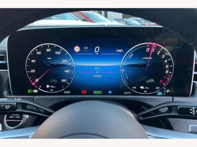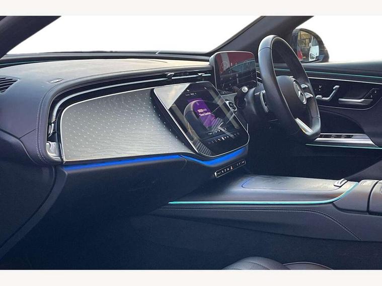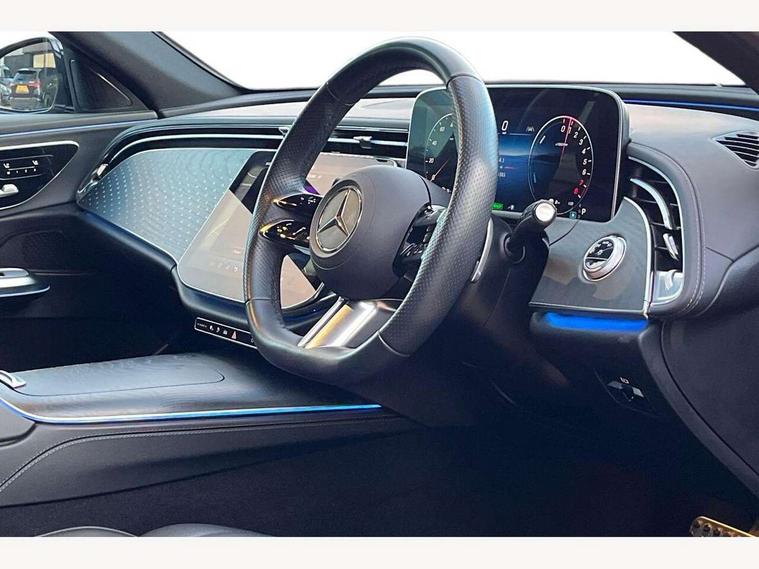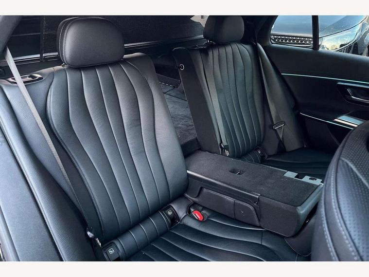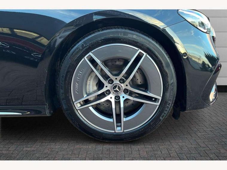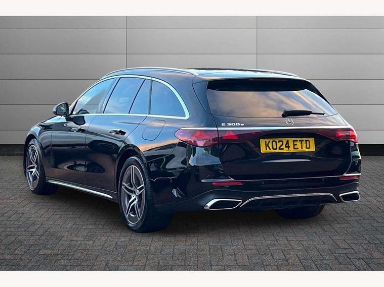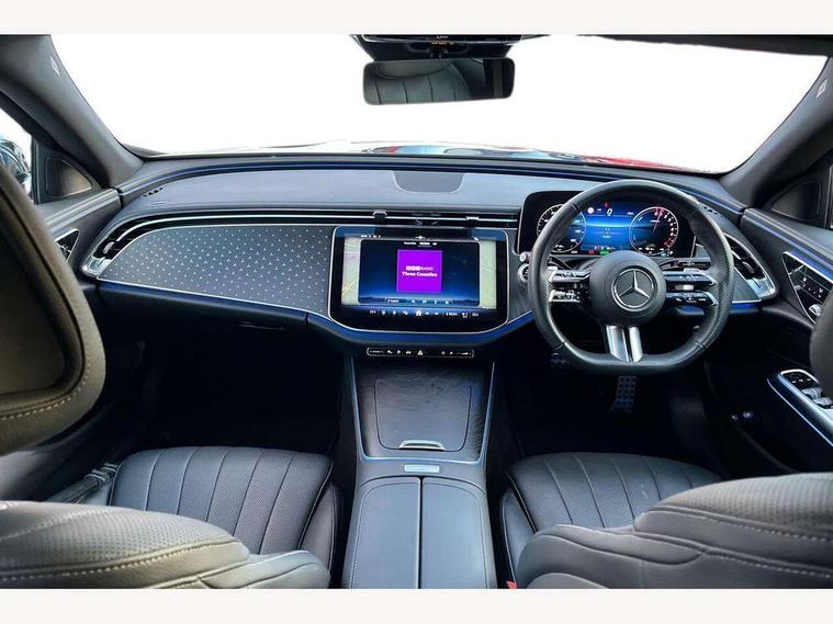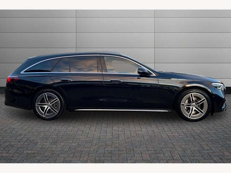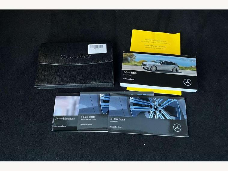 12.3" Driver display screen, 14.4" central media display, 5G Communications module, Acoustic presence indicator, Attention assist, Augmented reality navigation, Blind spot assist, Brake wear warning display, Direct steer speed sensitive steering, Easy-pack tailgate - Powered opening/closing automatically, ECO start/stop function, Emergency call assistance, Evasive manoeuvre support, Fluorescent jacket for driver, Hard disc navigation, Head up Display, MBUX navigation premium, MBUX voice control, Mercedes connect me, Outside temperature display, Preinstallation for live traffic, Remote and charging services plus, Service indicator (ASSYST), Status display for rear seat belts in instrument cluster, Trip computer in multifunction display showing current fuel consumption, Wireless charging, Wireless smartphone integration with Apple CarPlay and Android auto, 5m Domestic charging cable, 5m Public charging cable, 9G TRONIC automatic transmission, AC charging, Agility control suspension, Rear air suspension with level control, Sporty engine sound system, 2 USB ports in centre console, 2 USB ports in the rear, DAB Digital radio, Preinstallation for MBUX Entertainment Plus, 3rd brake light, Adaptive brake lights, Aerial integrated in rear window, AMG bodystyling, Auto dimming driver's door mirror, Auto dimming rear view mirror, Black radiator grille, Chrome roof rails, Digital air vent control, Electric folding door mirrors, Electric windows with one touch opening/closing and obstruction sensors, Electrically adjustable and heated door mirrors, Heat insulating privacy glass, LED daytime running lights, LED digital light with adaptive highbeam assist plus, Pre-installation for roof rail systems, Rear side wing doors, Rear wiper, Surround lighting with logo projection, 3 seat bench in 2nd row, 4 way lumbar support, Ambient lighting, AMG brushed stainless steel sports pedals with rubber studs, AMG floor mats, AMG line interior, Automatic child seat recognition sensor, Central stowage compartment with USB socket for use with Android Auto and Apple CarPlay, Comfort seats, Courtesy lights in rear grab handles with reading light functionality, Folding rear seat backrest, Front centre armrest with stowage compartment, Glove compartment - lockable, air conditioned and illuminated, Head restraints for driver and front passenger (four-way adjustability) and in rear (two-way), Heated front seats, Illuminated door sills, Multifunction sports steering wheel in nappa leather, Roof liner in black fabric, Seat occupancy sensor for front passenger seat, Single front passenger seat, Steering wheel touch control buttons for audio and onboard settings, Sunvisors with illuminated vanity mirrors, Thermotronic 4 zone climate control, Leather package - E Class, Memory package - E Class, Parking package with 360 degree camera - E Class, USB plus package - E Class, 3x3 point rear seatbelts, Active bonnet pedestrian safety measure which detects an impact and raises bonnet, Adaptive brake system with HOLD function and brake drying in the wet, Airbags - sidebag for driver and front passenger with combined thorax/pelvis bag, Anti-lock braking system (ABS), Automatic front passenger airbag deactivation, Central airbag, Childproof locks manually operated for rear doors and electrically operated for rear power windows, Driver and adaptive front passenger airbags, Electronic parking brake, Electronic Stability Programme, Hill start assist, ISOFIX child seat attachment points two outer rear seats, Knee airbags, Pedestrian protection, Pre-Safe anticipatory safety system, Tyre pressure monitoring system, Warning triangle and first aid kit, Window airbags, Alarm system with interior monitoring, Central locking with interior switch, automatic locking and crash sensor with emergency opening function, Dashcam, Digital vehicle key, Guard 360 degree vehicle protection plus, Increased anti theft protection, Keyless Go, Urban guard vehicle protection plus, Centre console trim in open pore black ash wood, Dash trim in open pore black ash backlit wood with laser cut Mercedes Benz star pattern, 19" AMG 5 twin spoke alloy wheels, Summer tyres, Tirefit,