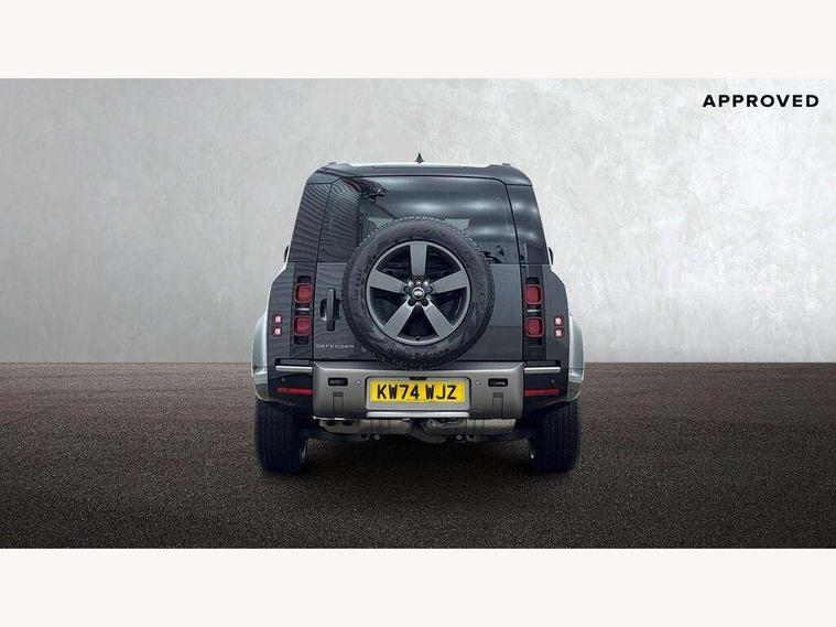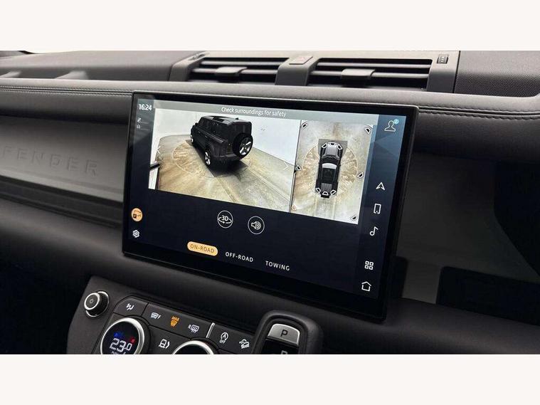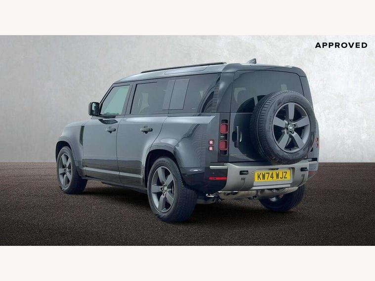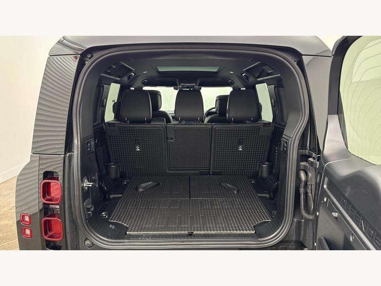 1 x USB-C (power only) & 1 x USB-C (power & data) in Row 1, 2 x USB-C in Row 2, 11.4" touchscreen, 2 x USB-C in Row 3, 360 degree parking aid, 3D Surround Camera with 360 View, 180 Rear View, Front Traffic Detection, Forward Vehicle Guidance, Tow Hitch Assist and clear sight Ground View, Adaptive cruise control, Android Auto, Apple CarPlay, Blind spot assist, Bluetooth system, Brake pad wear indicator, Clear exit monitor, Connected navigation pro, Driver condition monitor, Electric power assisted steering (EPAS), Interactive driver display, Lane keep assist, Push button start, Rear collision monitor, Rear traffic monitor, Traffic sign recognition with adaptive speed limiter, Trip computer, Wireless device charging, 8 speed automatic transmission, All wheel drive system, Twin speed transfer box, DAB Radio (Digital Audio Broadcasting), Meridian 700w surround sound audio system with 15 speakers, Pivi pro connected, Automatic headlight levelling, Automatic headlights, Black exposed rear recovery eyes, Body coloured bonnet, Centre high mounted stop light, Electric heated/power fold door mirrors with approach lights and auto dimming driver side, Electric windows with one touch open/close and anti-trap, Follow me home lighting, Front fog lights, Heated rear window with timer, Heated windscreen, Illuminated metal treadplates with brand name script, LED tail lights, Matrix LED headlights with signature DRL, Privacy glass, Puddle lights, Rain sensing windscreen wipers, Rear fog lights, Rear side wing doors, Rear wiper, Side hinged tailgate, Sliding panoramic roof, Standard tail door, Trailer stability assist, X-Dynamic badge, 12V power socket in loadspace, 2 seat bench in 3rd row, 3 seat bench in 2nd row, Alpine lights, Configurable cabin lighting, Durable rubber cabin flooring, Durable rubber loadspace flooring, Electric reach + rake adjustable steering column, Electrically adjustable steering column, Extended leather upgrade, Footwell lights, Front head restraints, Front passenger isofix child seat attachment, Heated steering wheel, Loadspace cover, Loadspace Hook, Multifunction steering wheel, No flat load floor storage, Overhead stowage for sunglasses, Rear headrests, Rear ISOFIX, Rear reading lights, Single front passenger seat, Soft close tail door, Storage glovebox, Sunvisors with illuminated vanity mirrors, Twin front cupholders, Air suspension pack - Defender SE/HSE/X-Dynamic SE/X-Dynamic HSE, Non-smoker package, Online pack with data plan - Defender, 7 three point seatbelts, ABS, Brake hold function, Cornering brake control (CBC), Customer configurable autolock, Driver and passenger airbags, DSC - Dynamic Stability Control, EBD - Electronic brakeforce distribution, Electric parking brake (EPB), Emergency brake assist, Emergency braking, ESP + traction control, Front airbags with passenger seat occupant detector, HDC - Hill descent control, Hill launch assist, Low traction launch, Power operated child locks, Remote for (e-Call, Optimised assistance call, InControl app, Climate, beep and flash and door), RSC - Roll stability control, Seat belt reminder, TPMS (Tyre pressure monitoring system), Alarm, Immobiliser, Intrusion sensor, Keyless entry, Locking wheel nuts, Secure tracker pro,