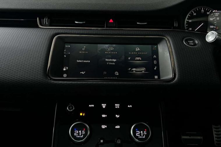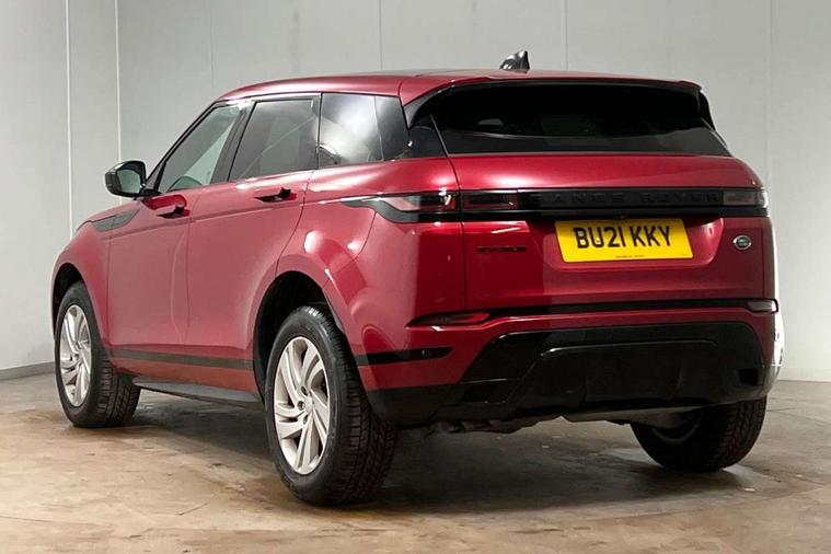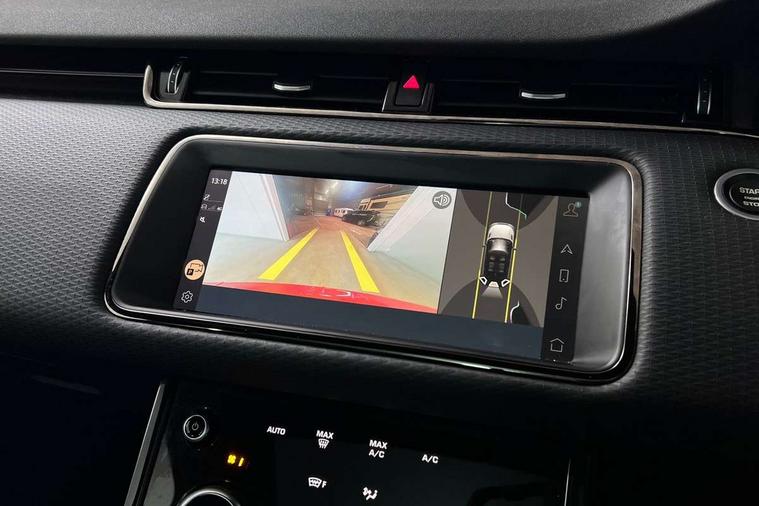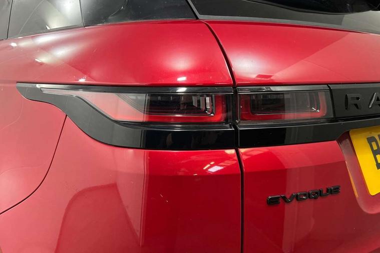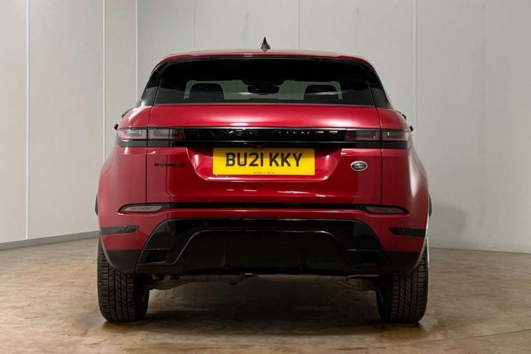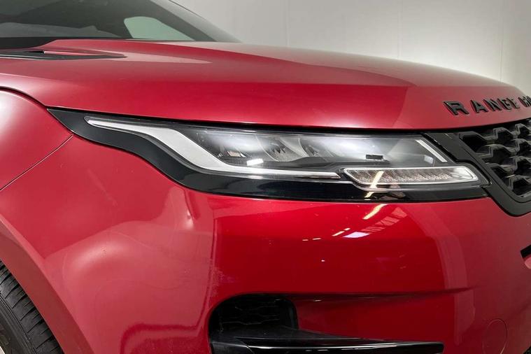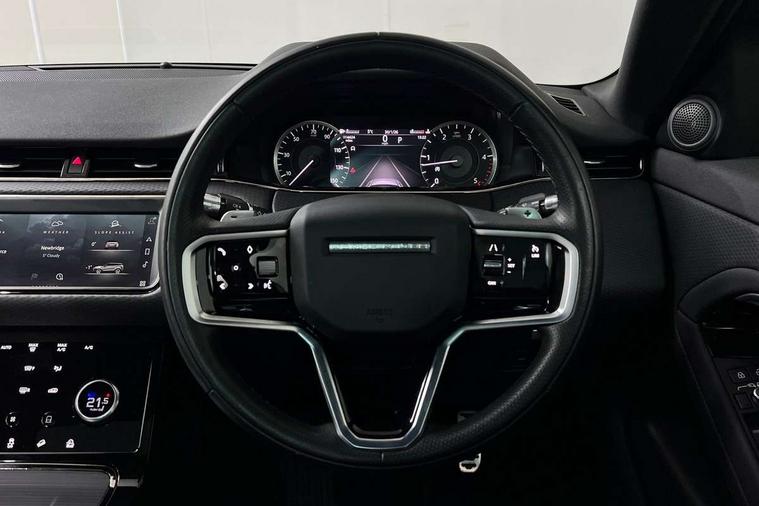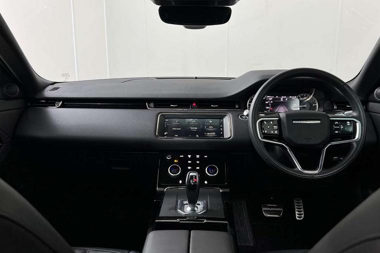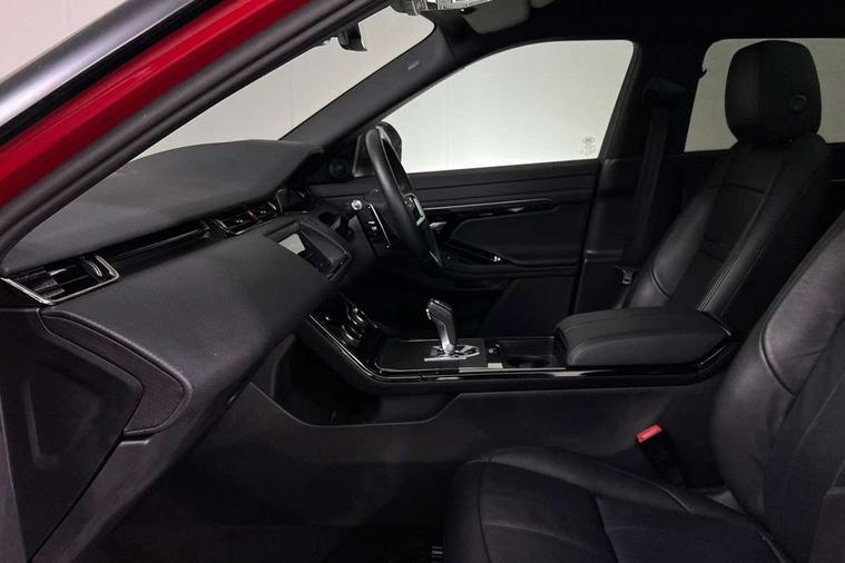 Android Auto, Apple car play, Bluetooth connectivity, Brake pad wear indicator warning light, Driver condition monitor, Electronic power assisted steering (EPAS), Front and rear parking aid, InControl remote, Land Rover InControl apps, Lane keep assist, Pivi pro connected includes upgraded infotainment, connected navigation pro, Nuance speech licence, Push button starter, Traffic sign recognition with adaptive speed limiter, Voice control system, All terrain progress control, Efficient Driveline, Passive suspension, Terrain Response 2 Auto, Digital Audio Broadcast radio-DAB, Steering wheel mounted controls, Electric windows with one touch open/close and anti trap, Evoque and R-Dynamic badge, Flush deployable exterior door handles, Heated rear window with timer, Heated washer jets, Heated windscreen, Power fold, auto-dimming, heated door mirrors with approach lights and auto dimming driver side, Rain sensing windscreen wipers, Rear fog lights, Tailgate spoiler, 40:20:40 split folding rear seats with centre headrest and armrest, Ambient interior lighting, Bright metal pedals, Isofix system on outer rear seats, Overhead lighting console, Overhead stowage for sunglasses, Passive front head restraints, Rear air vents, Rear centre headrest, Satin chrome gearshift paddles, Sunvisors with illuminated vanity mirrors, Twin sliding front centre armrest, 3 rear 3 point seatbelts, Anti-lock braking system (ABS), Customer configurable autolock, DSC - Dynamic Stability Control, Electronic brake force distribution, Electronic parking brake, Electronic traction control, Emergency braking, Front and rear seatbelt reminder, Hill descent control, Hill launch assist, Low traction launch, Power operated child locks, Roll stability control, Six airbags - Driver and passenger airbags/driver knee airbag/front side airbag and curtain airbags, Torque vectoring brake, Tyre pressure monitoring system, Alarm, Immobiliser, Intrusion sensor, Locking wheel nuts,