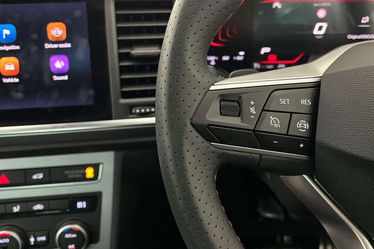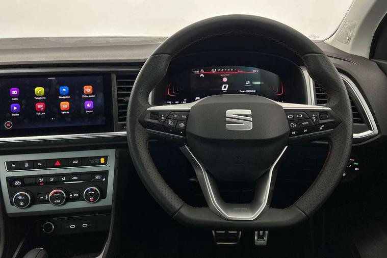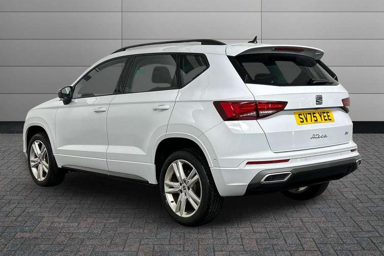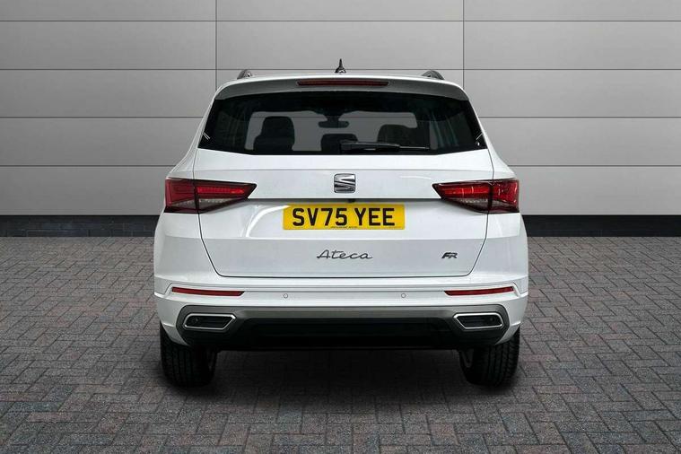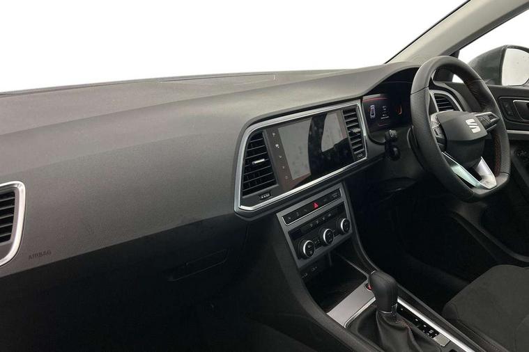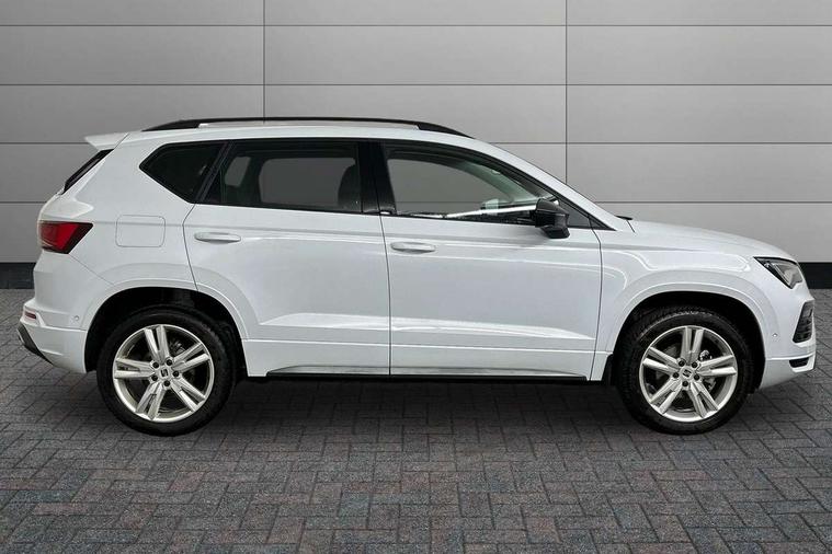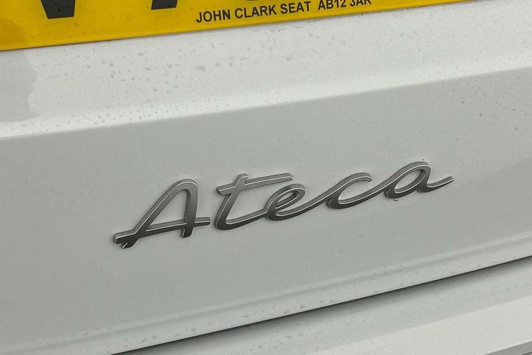 8" Digital cockpit, Bluetooth audio streaming with handsfree system, Cruise control system with speed limiter, E-call, Electric tailgate with virtual pedal, Outside temperature gauge, Progressive power assisted steering, Rear view camera, SEAT drive profile with driving experience button - Normal, Sport, Eco and Individual mode, gearshift, steering and throttle response, Self parking functionality (includes front and rear parking sensors), Start/stop system, Trip computer, wired and wireless full link smartphone integration, Wireless phone charger, Steering wheel mounted audio/phone controls, Black roof rails, Black side window trim, Body colour bumpers, Body coloured wheel arch surrounds, Chrome front grille frame, Dark tinted rear windows, Daytime running lights, Door mirrors with welcome light silhouette, Dynamic headlight range control with self adjusting whilst driving, Electric adjustable/heated/folding door mirrors, Front and rear electric windows, Illuminated aluminium front door sill, LED 3rd brake light, LED headlamps with lens and LED front fog lamps with cornering function, LED rear tail lights with dynamic indicators, Rear exhaust tailpipe, Rear fog lights, Rear side wing doors, Rear spoiler, Rear wash/wipe, Variable front intermittent wipers, 12V socket in front, 3 seat bench in 2nd row, 60/40 split folding rear seat, Aluminium pedals, Dinamica upholstery with front comfort seats, Drawer under right front seat, Dual zone climate control, Front and rear head restraints, Front centre armrest, Front seat back storage pockets, Height adjustable driver and passenger seat with lumbar adjustment, ISOFIX points in outer rear seats with top tether anchorage points, Leather sports steering wheel and gear knob, Rear armrest and easy back seat release mechanism from boot, Single front passenger seat, Steering wheel mounted gearshift paddles, Convenience pack - Ateca, Interior lighting pack - Ateca, Navigation system pack with DAB - Ateca, Safety and driving pack with attention and drowsiness assist - Ateca, 3x3 point rear seatbelts, ABS, Traction control system (TCS), Electronic stability control (ESC) and Electronic differential lock system (XDS), Airbags - Driver and front passenger airbag with deactivation, front side, two curtain and driver's knee airbags, Electric parking brake with auto hold function, Front and rear seatbelt reminder, Front assist with autonomous emergency braking, Hill hold control, Manual rear child locks, Single tone horn, Tyre pressure monitoring system, Alarm, Keyless entry, Locking wheel bolts, Remote central locking, Chrome interior detailing, 18" Brillaint silver alloy wheels, Tool kit,