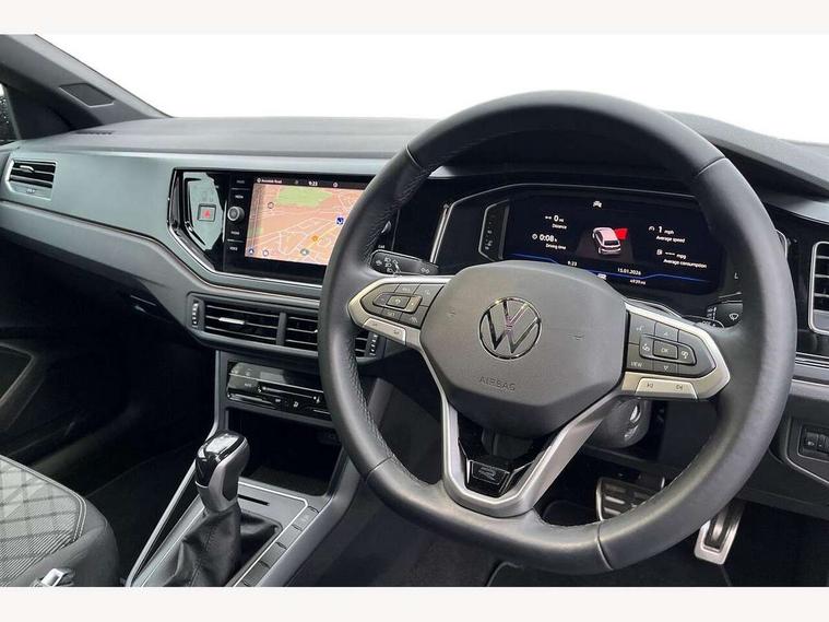 Adaptive cruise control with follow-to-stop and speed limiter, Bluetooth mobile phone interface, Digital Cockpit Pro with 10.25" Display, Driver alert system, Dynamic road sign display, Emergency call service, Power assisted speed sensitive steering, Preparation for We connect and We connect plus, Speedo and rev counter, electronic odometer, trip, service interval display and fuel gauge, Standard rear axle, Travel Assist - Lane keeping system and traffic jam assist, Travel assist including emergency assist, Trip computer, Warning signal and warning light for front and rear seatbelts not fastened, Washer fluid level indicator, Wireless app connect, Front wheel drive, Rear shock absorpion, Start-stop system with battery regeneration (recuperation - energy recovery during braking), DAB Digital radio, Diversity antenna for FM reception, Front and rear 6 speakers, Body colour bumpers, Body colour door handles, Body colour door mirrors, Electric front windows, Front scuff plates with R-Line logo, Heat insulating darkened glass in side and rear windows, Heat insulating glass windscreen, Power folding adjustable/heated exterior mirrors and front passenger exterior mirror lowering function, Rear electric windows, Rear fog light, Rear side wing doors, Rear tinted glass from B-pillar backwards approx 65% tinted, Rear windscreen washer and wiper with interval delay, Third brake light, 12V power socket in centre console, 2 USB-C ports in the front, 2 USB-C charging sockets on the center console in the rear, 3 rear head restraints, 60/40 split folding rear seat and rear seat bench not split, Air care climatronic air conditoning system with active combination filter and 2-zone temperature control, Black roof lining, Chrome plated radiator grille inserts, air vent surrounds and light switch surrounds, Door and side trim panel, Driver and front passenger seat height adjustment, Driver/passenger sunvisors with illuminated vanity mirrors, Front + rear carpet mats in recycled material, Front centre armrest, Front footwell illumination, Front seat backrest storage pockets, Front sports comfort seats, Handbrake lever handle in leather, Headliner in recycled material, Isofix child seat preparation easy-fit (for two outer rear seats, and front passenger seat) compatible with I-size, Karoso artvelours cloth upholstery, Leather trimmed gear knob, LED interior light with switch off delay and dimmer, 2 reading lights front and rear, Luggage compartment cover, Luggage compartment floor, Luggage compartment lighting, Lumbar adjustment for front seats, Single front passenger seat, Stainless steel pedals, Standard pedal cluster, Three spoke leather wrapped multifunction steering wheel with shifting paddles, Light and sight pack - Polo R-Line/Black Edition, 3 point height adj front seatbelts + pretensioners, 3x3 point rear seatbelts, ABS, Driver and front passenger airbag with front passenger airbag deactivation, Drivers and front passengers safety optimised head restraints, ESC (Electronic stability control) + EDL (Electronic Differntial lock) and ASR (Traction control), Extended and predictive pedestrian/ cyclist protection, Front curtain and side airbags with center airbag, Hill hold control, Manual child lock in rear doors, Single tone horn, Tyre pressure loss indicator, Alarm with interior protection, Anti-theft alarm system with interior monitoring, backup horn, and towing protection, Anti-theft wheel bolts, Electronic engine immobiliser, Chrome applications on rotary light, mirror adjustment, window regulator switches, outlet with frame in black, Dark grey anodised matt decorative inserts in dash and front door panels, Low rolling resistance tyres,