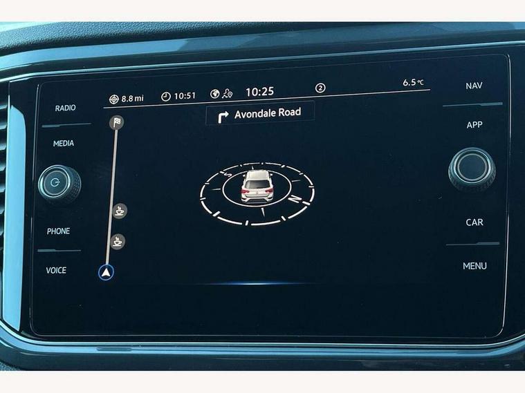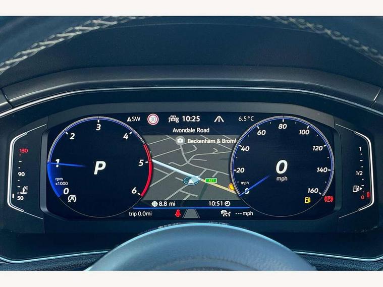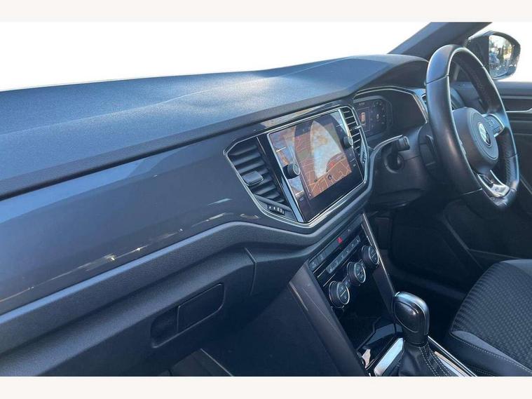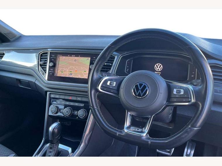 'Lights On' Reminder warning buzzer, Adaptive cruise control, Bluetooth telephone and audio connection for compatible devices, Car information display, Digital Cockpit Pro - Active info display, Driver alert system with audible and visual fatigue detection system, Driver tips and journey analysis, Emergency call service, Lane assist with warning text instrument cluster, Modified key software - reduce switch off time for key status change to Long no motion, Multifunction camera, Multifunction computer with visual gear change recommendation for fuel consumption, Navigation system discover media including streaming and internet, Service interval indicator, Think blue trainer driver tips and journey analysis, Traffic sign recognition, Voice activation, Warning sound and light for front seatbelts unfastened, Wireless app connect for apple carPlay, Battery regeneration during braking, Misfuel prevention device for diesel engine, Rear shock absorption for sports version, Start/stop function with battery regeneration, DAB Digital radio, Disk brakes in front, Diversity antenna for FM reception, Music playback - MP3, WMA and AAC files, Premium USB cable in choice of either Apple or Android smartphone compatibility, SD card slot, Simultaneous pairing of 2 compatible mobile devices, SMS functionality - read, compose and send SMS messages using touch-screen display, Storage compartment with longitudinal and height adjustable in armrest and two rear air vents, Three route options - Fast, Short, Eco, Title and cover art display, USB-C Interface and USB charging socket, Auto dimming interior rear view mirror, Automatic coming/leaving home lighting function and daytime running lights, Automatic hazard lights activation under emergency braking, Black grained lower door protectors, Body colored door lower parts, Body colour door handles, Body colour rear roof spoiler, Chrome effect left and right trapezoid exhaust tailpipe fascia surround, Chrome plated moldings, Chrome trim on upper and lower radiator grille, Dusk sensor, Dynamic headlight range control with self adjusting whilst driving, Electrically foldable, adjustable and heated door mirrors with puddle lights and reverse activated kerb-view adjustment on passenger's door mirror, External USB type C socket and charging sockets, Front and rear electric windows, Front fog lights with static cornering function, Front windscreen wiper with intermittent wipe and 4 position delay, Fully galvanised body, Heated rear window, Heated windscreen washer jets, High level 3rd brake light, LED darkened rear light clusters, LED headlamps with automatic range adjustment and unique signature LED separate daytime running lights, LED rear number plate lights, LED tail lamp rear comination lamps, Privacy glass, R-Line design body coloured bumpers, Rain sensor, Rear tinted glass from B-pillar backwards approx 65% tinted, Rear wash/wipe with intermittent wipe setting, Silver anodised roof rails, Volkswagen roundel, 12V socket in centre console storage area, 3 rear head restraints, 4 load lashing points in luggage compartment, Aluminium pedals, Black roof lining and sun visors, Branded points of interest, Carbon flag cloth upholstery, Chrome plated radiator grille inserts, air vent surrounds and light switch surrounds, Climate control - 2 zone electronic air conditioning with automatic air recirculation and allergy filter, Door and side trim panel, Door and side trim panel in foam film, insert in leatherette, Drawer under drivers seat, Front + rear carpet mats, Front centre armrest, Front cupholders x 2, Front seat back storage pockets, Front sports seats with R-Line logo on seat backrest, Glovebox, Heated front seats, Height adjustable front seats, Height/reach adjust steering wheel, Instrument lighting, white adjustable panel illumination, Interior light delay, Interior light in footwell, Isofix easy fit child seat preparation for 2 outer rear seats, Leather gearshift knob, Leather multi function sport steering wheel with gear change selection via paddle shift on steering wheel, LED interior light with switch off delay/dimmer and 2 front/rear LED reading lights, Load through provision with single cup holder when folded down, Luggage compartment cover, removable, Luggage compartment lighting, R Line badge, Scuff plates in door apertures, Split folding rear seat backrests with centre armrest, Stainless steel pedals, Storage compartment in left and right luggage area, Storage compartment in rear doors, Storage compartments in driver and front passenger doors, Sunvisors with illuminated vanity mirrors, Unique R Line door sill protectors, White ambient lighting, R line styling pack - T-Roc, Winter pack - T-Roc, 3 rear three point seatbelts, ABS, Curtain airbags, Driver and front passenger safety-optimised head restraints, Drivers and front passengers airbags with passengers deactivation switch, Drivers seatbelt reminder, Electronic parking brake with auto hold, Electronic stability control (ESC) includes ASR, EDL, EDTC and trailer stabilisation function, Front assist with city emergency braking and pedestrian monitoring, Front seat side impact airbags, Hill start assist, Predictive pedestrian protection, Rigid safety cell with front and rear crumple zones, Single tone horn, Three point height adjust front seatbelts + pretensioners, Tyre pressure loss indicator, Ventilated front and rear disc brakes, Volkswagen roadside assistance, Alarm with remote central locking and interior protection, Electronic engine immobiliser, Remote central locking with SAFELOCK, radio remote control with 2 remote control folding keys, Shadow grey decorative inserts in dash, centre console and door panel, 19" Suzuka alloy wheels with low rolling resistance tyres and anti wheel bolts,