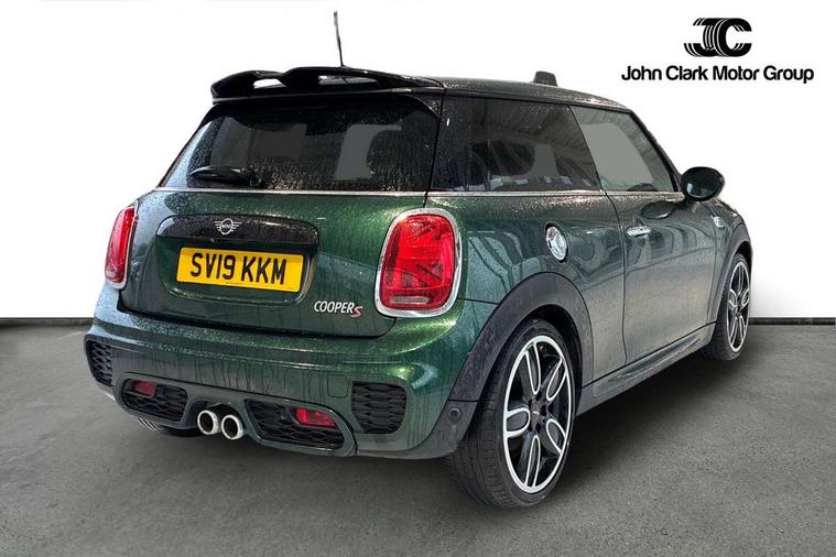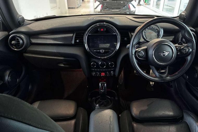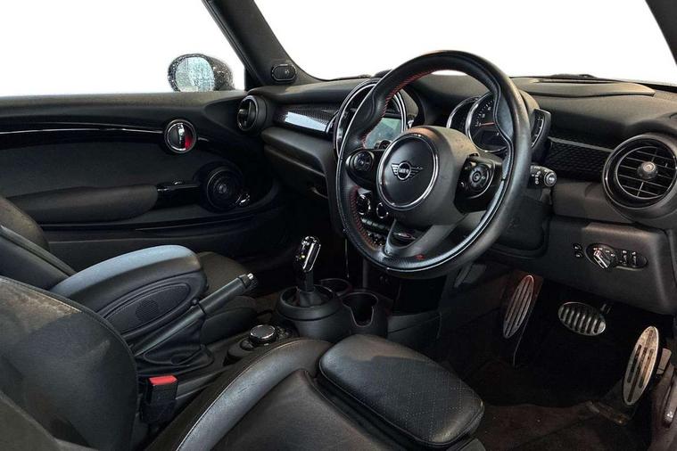 Compatible mobile phone bluetooth with audio streaming, Instrument cluster, Mini E-call, MINI TeleServices, On board computer, Service interval indicator, Performance Control, Steptronic sport transmission with double clutch and steering wheel paddles, 6.5" touchscreen with LED ring, FM tuner and DAB digital radio, Automatic headlight activation switch, Bonnet scoop, Chrome border honeycomb structure radiator grille with S badge, Chrome plated fuel cap, Dynamic brake lights, Electric front+rear windows, Heated rear window, Heated windscreen washer jets, John Cooper Works - aerodynamic kit (front and rear apron, spoiler), front and rear sport bumpers and part-painted side sills with door sill finishers, John Cooper Works rear spoiler, LED headlight with closed ring and daytime driving lights, Metal door sill strips with Cooper S imprint, Model logo Cooper S on right of tailgate, Rain sensor window wipers, Rear fog lights, Rear LED lights with union jack design, Rear window wiper, Side scuttle panel with integrated indicator, Sun/heat protection glass, Two central exhaust tailpipes with chrome finisher, White indicator lenses, 12V Accessory socket in centre console, 4 lashing eyes in luggage compartment, 60/40 split folding rear seat, Anthracite headlining, Chrome interior highlights, Cupholders, Front and rear isofix with front passenger airbag deactivation, Glove compartment, Height and length steering column adjustment, Interior lighting with 12 basic colours selectable via toggle switch in roof, John Cooper Works leather steering wheel with contrasting stitching in Chilli Red with John Cooper Works logo, John Cooper Works Logo in seat, Leather gearshift lever and handbrake gaiters, LED reading lights, vanity mirror lights, front foot well light and spotlight on front seats, Manual air conditioning, Mechanical seat adjustment, driver seat height adjust, forward/back and front seats backrest, Mini logo projection on floor from drivers exterior mirror, Multifunction steering wheel, Storage compartments in doors, Storage pocket on back of front seats, Sunvisors with vanity mirrors, 3 point seatbelts on all four seats, 6 Airbags - front, side, head and seat belt tensioners, Anti-lock braking system (ABS), DSC - Dynamic Stability Control, Front and rear disc brakes, Hill start assist, Two tone horn, Tyre pressure monitoring system, Alarm system with tilt sensor, monitoring doors, bonnet interior and tailgate, Electronic vehicle immobiliser, Start/stop toggle with keyless go, Tool kit,
