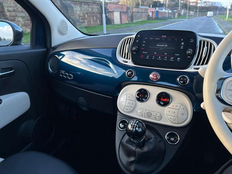 7" HD Touchscreen Radio with 3D Navigation, Bluetooth, USB, and DAB, 7" TFT instrument cluster, Apple car play/Android Auto, Cruise control, E-call, External temperature gauge, Power assist steering, Rear parking sensor, Speed limiter, Stop/start system, Trip computer, 4 speakers, Rear speakers, 3rd brake light, Auto headlights, Body colour bumpers, Body colour electric adjustable heated door mirrors, Chrome plated exterior door handles, Dolcevita badge on fender, Dusk and rain sensors, Electric front windows, Fixed glass sunroof with sunblind, Front fog lights, Halogen headlamps, Heat insulated glass, Heated rear windows with wash wipe, LED daytime running lights, Rear side wing doors, Rear wiper, 1 passenger grab handle, 2 seat bench in second row, 50/50 split folding rear seats with height adjustable rear headrests, Auto climate control, Auxilliary 12V power socket, Chrome kit, Front headrests, Height adjustable drivers seat, Height adjustable steering wheel, Isofix child seat preparation, Single front passenger seat, Techno leather steering wheel with audio controls, 7 airbags - Driver, passenger, side, window and drivers knee airbags, ABS/EBD, ESC + ASR/MSR + HBA + Hill holder, Manual passenger airbag deactivation function, Traction control, Tyre pressure monitoring system, Automatic door locking, Immobiliser, Locking fuel filler cap, Remote central locking, 16" alloy wheels,
