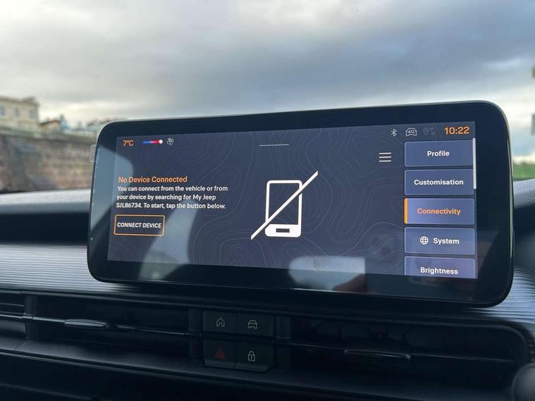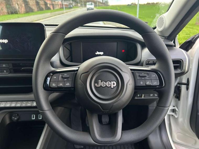 All-Terrain Mode Selector, Apple Carplay/Android Auto with wireless mirroring, BSRF connectivity box, Connectivity services, Driver attention alert system with camera, Drowsy driver detection system, eCall emergency call system, Keyless Start/Engine On Button, Lane keep assist, Odometer, PAS, Quick Guide English, Rear parking sensors, Telematic box and connected services, Traffic sign recognition, Warranty Booklet - UK, Battery default, High efficiency alternator, Audio system with 6 speakers, 3rd brake light, All power windows express Up/Down, Automatic headlights, Black mirror caps, Body colour exterior door handles, Day time running light, Grey skid plates, Halogen rear lights, Heated and electrically folding outside mirrors, LED reflector headlamps, Manual control rear view mirror, Rain sensor, Rear side wing doors, Rear wiper, Wiring preperation for towing group by Mopar, 3 rear headrests, 3 seat bench in 2nd row, 4 way manually adjustable passenger seat, 6 way manually adjustable drivers seat, Central console dividers x2, Cloth upholstery, Driver and front passenger sunvisor with vanity mirror, Foldable second row seats 40/60 - Fix and Fold, Front central armrest with storage, Front head restraints, Front passenger grab handle, Front passenger isofix child seat attachment, Front seat backrest pocket, Full black upper interior and headlining, I am Jeep label, Manual air conditioning, Partial body cover for shipment, Single front passenger seat, Anti-lock braking system (ABS), Child locks on rear doors, Electric parking brake, ESC - Electronic Stability Control + traction control, Hill descent control, Kit fix and go predisposition/housing only, Rear seat ISOFIX, Three 3 point rear seatbelts, Vulnerable road user recognition - Pedestrian/Cyclist incl. AEB, Volumetric anti theft alarm, 16" alloy wheels painted in medium glossy grey with summer chainable, Fix and go tyre repair kit,