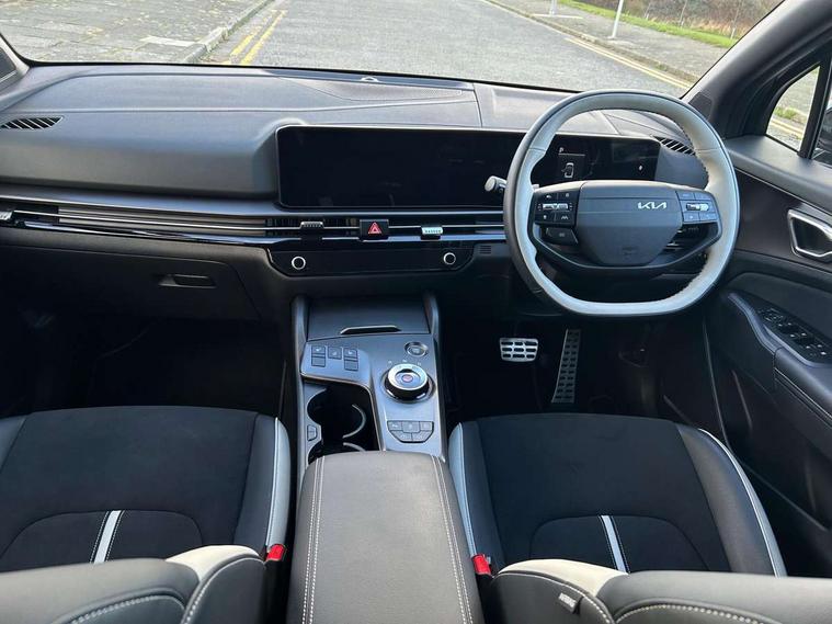 12.3" Touchscreen navigation system, 4.2" driver display screen, Bluetooth connection, Drive mode selector, Driver attention warning, E-call, Emergency stop signalling system, Forward collision avoidance assist (FCA) - city/pedestrian/cyclist/junction covering, Front and rear parking sensors, Highway Driving Assist (HDA), Intelligent speed limit assist, Kia Connect (UVO), Lane Following Assist (LFA), Lane keep assist, Low washer fluid warning, Motor driven power steering, Over the air (OTA) functionality, Reversing camera, Smart cruise control with stop and go functionality, Speed limiter, Tailgate, Trip computer, Windscreen washer level indicator, Wireless apple car play/android Auto, 6 speaker audio system, DAB Radio with MP3, Front passenger 1x USB-C port, Rear passenger 2x USB-C port, Steering wheel mounted audio controls, USB-C port for connection of a media device, Auto dimming rear view mirror, Automatic defog system, Automatic headlight control system, Black and body coloured bumpers, Body colour exterior door handles, Body colour radiator upper garnish and door garnish, Electric front and rear windows with front one touch function, Electrically adjustable/heated/folding door mirrors with LED indicators, Front and rear body colour skid plates, Gloss black door mirrors, Gloss black radiator grille, Gloss black wheel arches, Glossy black roof rails, GT-Line exterior styling, Heated rear window, High beam assist, LED daytime running lights, LED front fog lamps, LED Headlights, LED High mounted stop light, LED rear lights, Privacy glass in rear windows and tailgate, Rain sensing wipers, Rear fog lamp, Rear roof spoiler, Rear side wing doors, Rear wiper, Satin finished beltline, Silver window surround, Trailer stability assist, 12V power socket in front and luggage compartment, 2nd row personal lamps, 3 seat bench in 2nd row, 3 x passenger assist grips, 40/20/40 split folding rear seat, All-round height adjustable headrests, Alloy pedals, Automatic air conditioning, Black headlining, Centre console storage box, Cupholders in rear armrest, Door courtesy lamps, Driver and front passenger sunvisors with illuminated vanity mirrors, Driver's seat manual height adjust, Drivers seat power lumbar support, Front and rear door storage, Front cabin, rear & luggage compartment lights, Front passenger's seat manual height adjustment, Front seat and rear pockets, Gear shift indicator, Glovebox, GT-Line Interior Styling, Heated front seats, Heated steering wheel, ISOFIX Child seat top tethers and anchor fixings outer rear seats, Leather steering wheel, Leather/suede upholstery, LED lighting in overhead console, Luggage area load cover, Luggage area parcel shelf, Luggage board, Luggage compartment under floor storage, Luggage net hooks, Manual adjust steering wheel, Metal paint interior door handles, Paddle shift controls, Rear air conditioning, Rear cabin light, Rear coat hooks, Single front passenger seat, Ventilation ducts to rear compartment, Active front headrests, All round 3-point seatbelts, Anti-lock braking system (ABS), Dual front side airbags, Dual horn, Dynamic brake control, Electronic parking brake with auto hold function, Electronic stability control with downhill brake control, Front passenger airbag cut-off switch, Front seatbelt pretensioners + load limiters, Height adjustable front seatbelts, Hill start assist control (HAC), Impact sensing auto door unlocking, Multi collision brake assist, Rear airbags, Rear door child safety locks, Rear seat alert system, Seatbelt reminder warning, Traction control, Twin curtain airbags, Twin front airbags, Tyre pressure monitoring system, Vehicle stability management, Customisable automatic door locking, Customisable automatic door unlocking, Door deadlocks, Engine Start/Stop Button with Smart Entry System, Locking wheel nuts, Smart key with motion sensor, Speed sensitive auto door locking, Thatcham category 2 security alarm and immobiliser, Visible vehicle identification number, 18" GT-Line alloy wheels, Tyre mobility kit,