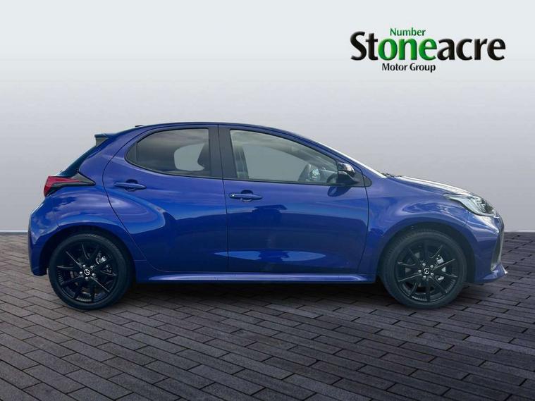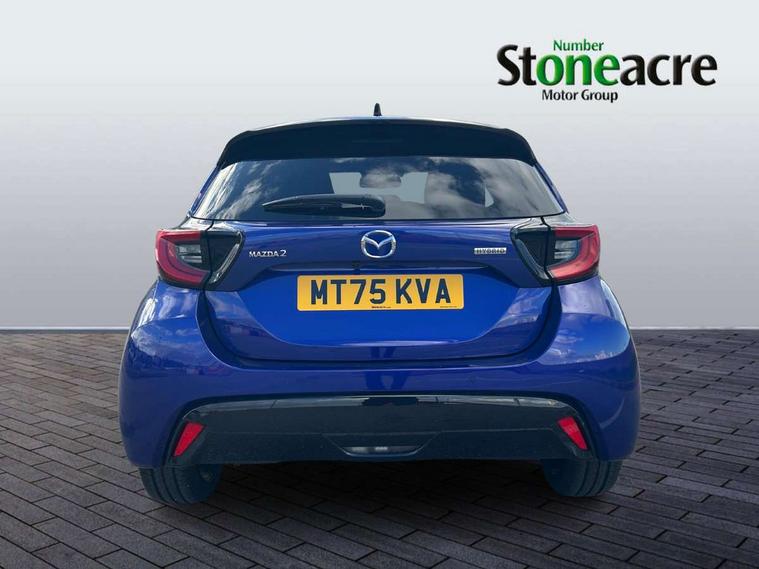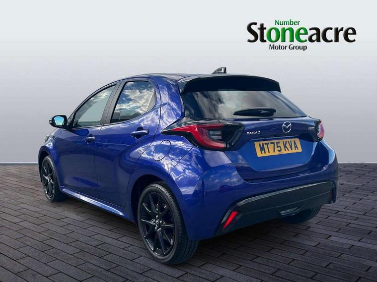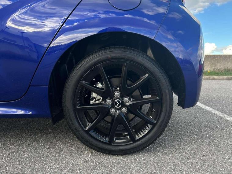7" Digital instrument cluster with speedometer and hybrid system indicator, Adjustable speed limiter, Drive mode selector (Eco, Normal and Power), Driver attention alert system, Dynamic radar cruise control, E-call with GPS, EV drive mode, Front and rear parking sensors, Integrated bluetooth, Lane tracing assist includes Lane centering, Lane departure alert, Steering assist and Vehicle sway warning, Multi-information display, PAS, Push button start and stop, Qi wireless charging, Rear cross traffic alert with auto braking, Reversing camera, Road sign assist - RSA, Service indicator, Tailgate, Trip computer, Wireless Apple CarPlay and wired Android Auto, i-stop, 6 speaker audio system and 9" colour screen centre display, DAB Digital radio, Steering wheel mounted audio/bluetooth controls, USB type C port, Auto dimming rear view mirror, Auto folding door mirrors, Automatic high beam - AHB, Body coloured front bumper, Body coloured rear bumper with gloss black lower mouldings, Coming home function, Dusk sensing headlights, Front and rear electric windows, Gloss black electric adjustable/heated door mirrors, Gloss black front grille, Gloss black rear roof spoiler, Hybrid badge, LED front fog lights, LED headlights with manual headlight levelling and LED daytime running lights, LED rear combination light with LED turn signals, LED third brake light, Mazda unique tailgate garnish, Piano black lower window garnish, Privacy glass in rear side and rear windows, Rain sensing front wipers with adjustable sensitivity and speed, Rear side wing doors, Rear wash wiper, Shark fin antenna, Welcome lighting, 12V power outlet, 3 seat bench in 2nd row, 60/40 split fold down rear seats, Ambient lighting, Black roof lining in pillar and ceiling, Cloth/Synthetic leather upholstery, Driver, front passenger and two rear door storage, Driver, Front passenger and two rear grab handles with coathooks, Drivers seat manual slide recline and height adjustment, Drivers/front passengers with covered vanity mirrors and light, Dual zone climate control, Front centre armrest with console storage, Front head restraints, Front passenger seat manual slide, recline and height adjust, Front sport seats, Glovebox, Interior courtesy light with LED illumination, ISOFIX child seat anchorage points attached on outer rear seats, Leather handbrake, Leather wrapped gearshift, Leather wrapped steering wheel with telescopic and tilt adjustment, Luggage compartment light, Seatback pocket at rear of the front passenger seat, Single front passenger seat, Three height adjustable rear head restraints, 2x3 point front seatbelts with pre-tensioners, 3 point seatbelts on all rear seats, Airbags - driver and front passenger, Anti-lock braking system (ABS), Blind spot monitoring with rear cross parking support brake function, Collision mitigation braking system, Driver and passenger central airbags, Dynamic stability control + Traction control, Electronic parking brake with auto-hold and auto-disengage function, Emergency brake light signal (EBS), ESP, Front and rear curtain airbags, Front passenger airbag cut-off switch, Front side airbags, Hill start assist control (HAC), Manual child lock in rear doors, Pre-crash safety system - PCS, Rear parking support brake, Regenerative braking system, Seatbelt reminder audible warning, Tyre pressure monitoring system, Deadlocking system, Remote central locking, Smart keyless entry, Thatcham approved immobiliser and alarm, 17" Alloy wheels, Emergency tyre repair kit,